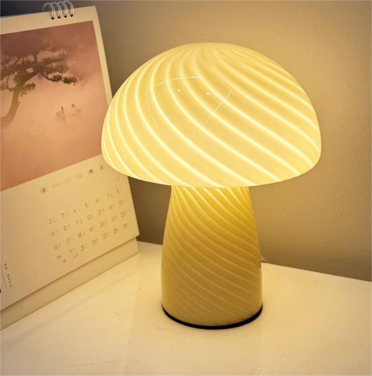 ストライプ ガラス マッシュルーム テーブルランプ