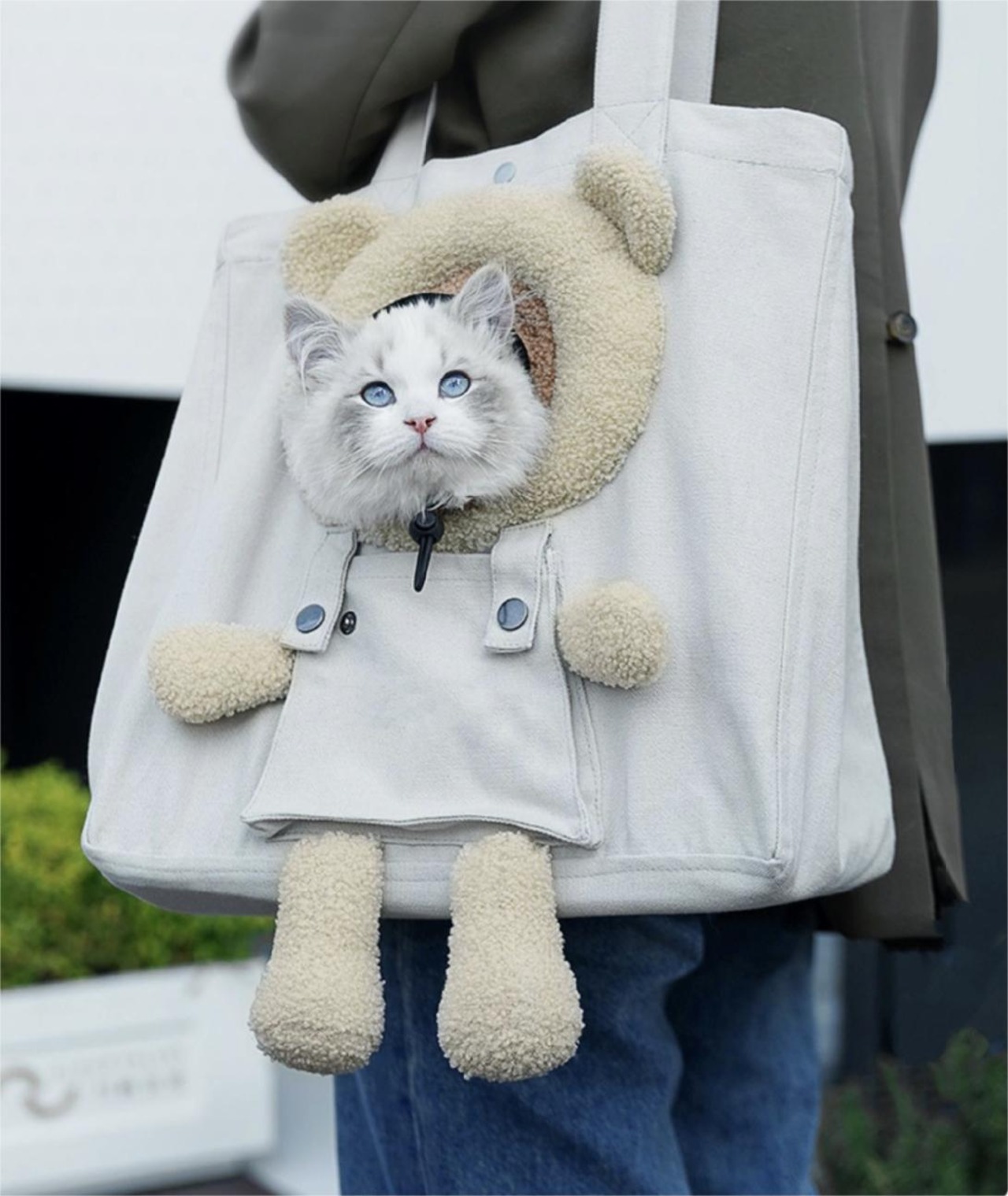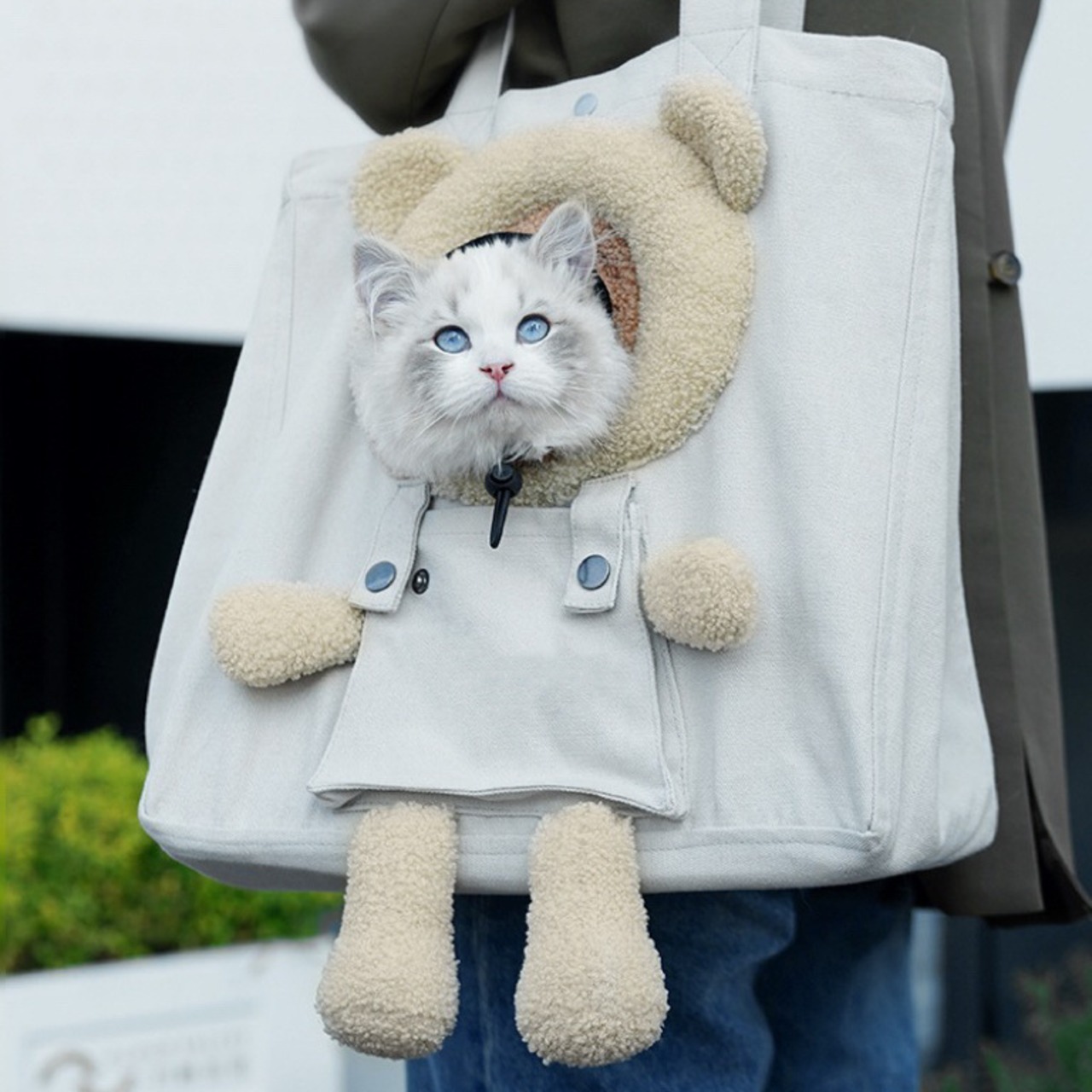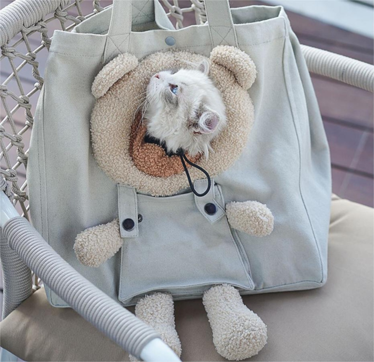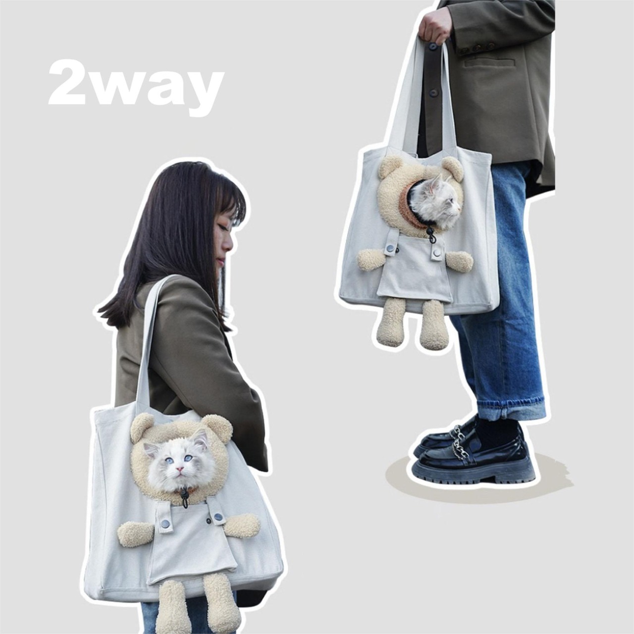 ペット キャリーバッグ 猫 犬 キャリーバッグ 熊 クマ型 顔が出る お出かけ 散歩 バッグ 飛び出し防止 ショルダーバッグ 通気性 ペットキャンバスバッグ 鞄 ペットトートバッグ 小型犬 抱っこ紐 6kg以内 通気性