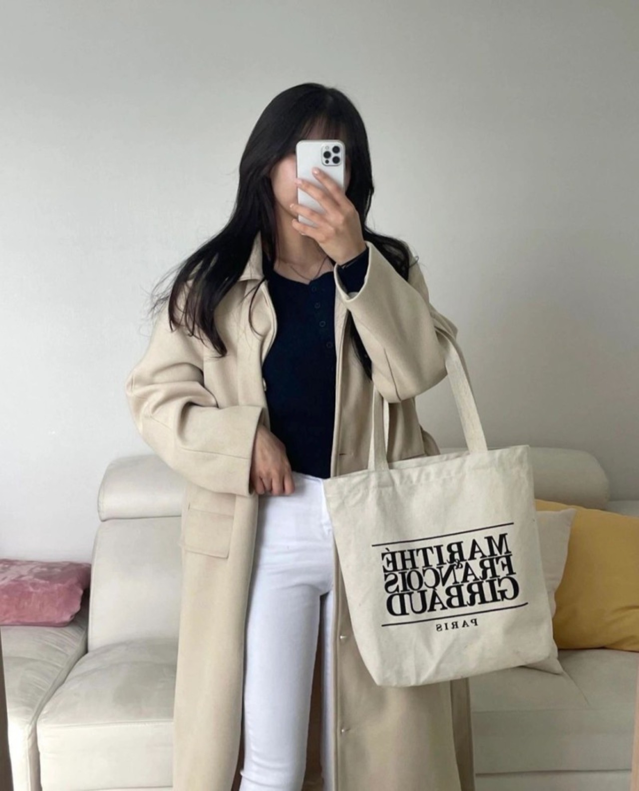 韓国 大人気 Marithe レディース エコバッグ キャンバス CLASSIC LOGO ECO BAG トートバッグ ホワイト