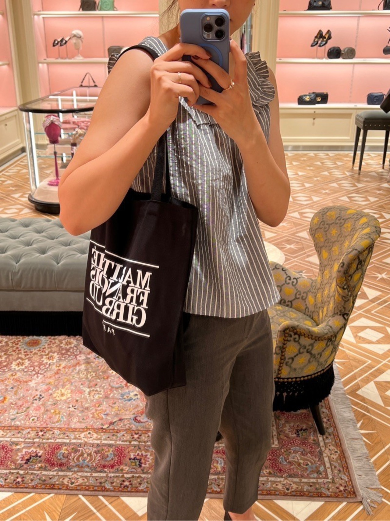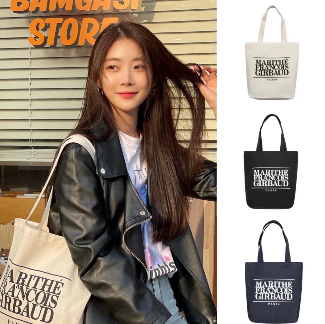 韓国 大人気 Marithe レディース トートバッグ エコバッグ キャンバス CLASSIC LOGO ECO BAG ブラック