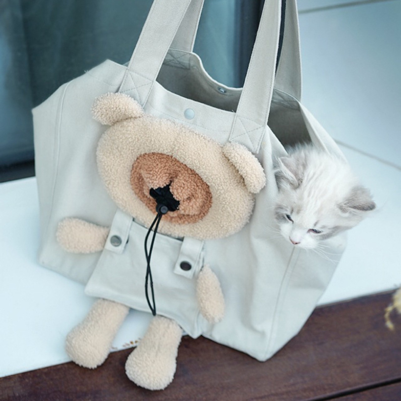 ペット キャリーバッグ 猫 犬 キャリーバッグ 熊 クマ型 顔が出る お出かけ 散歩 バッグ 飛び出し防止 ショルダーバッグ 通気性 ペットキャンバスバッグ 鞄 ペットトートバッグ 小型犬 抱っこ紐 6kg以内 通気性