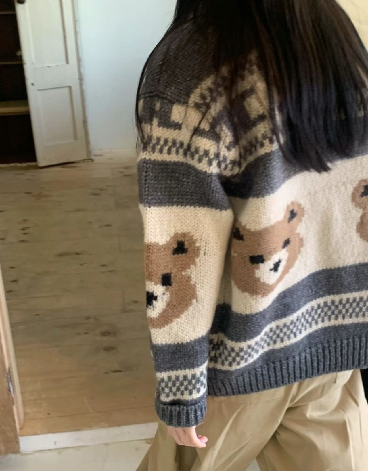 新品 韓国ファッション A some ニット カーディガン レディース セーター トップス 長袖ニットセーター グレー