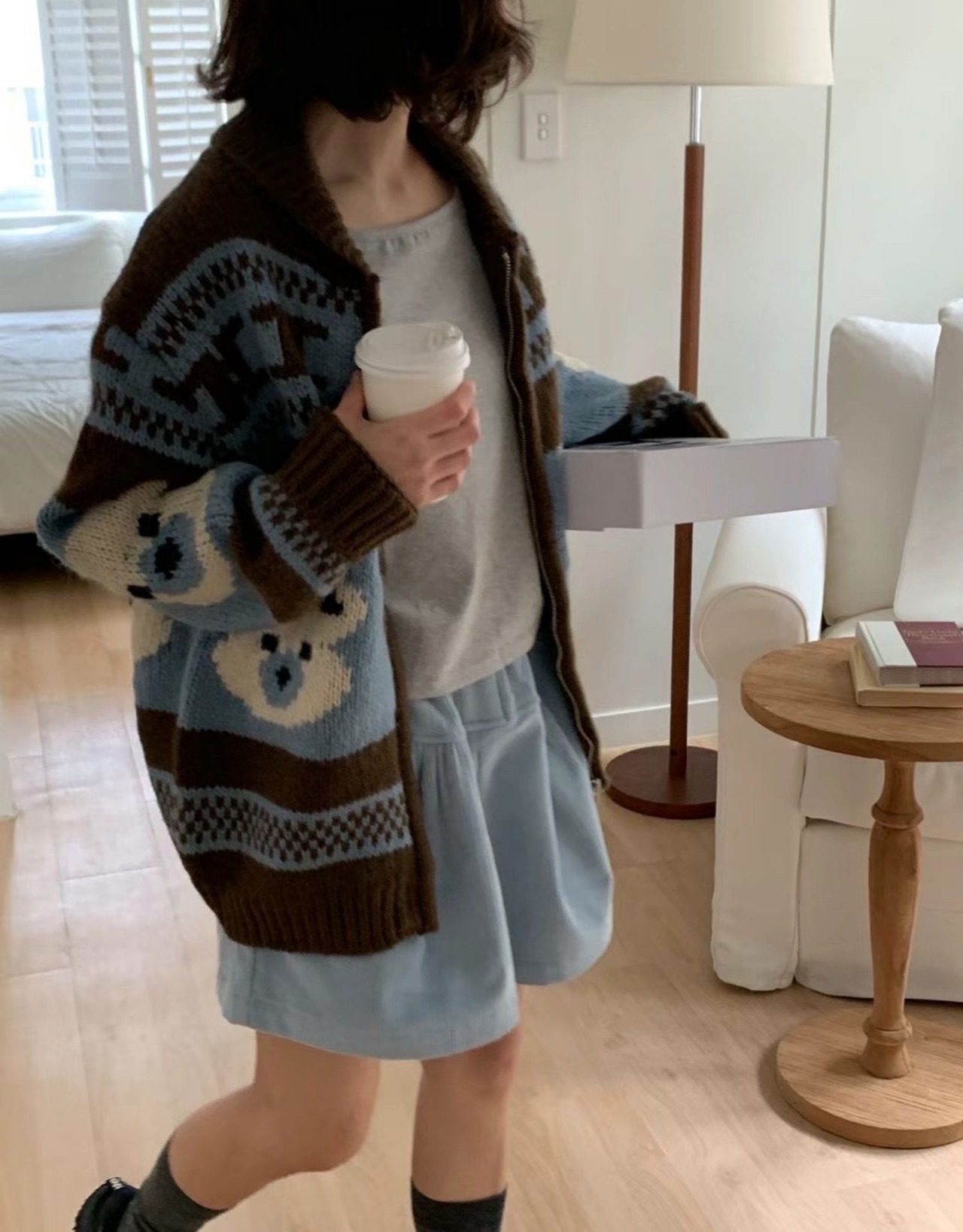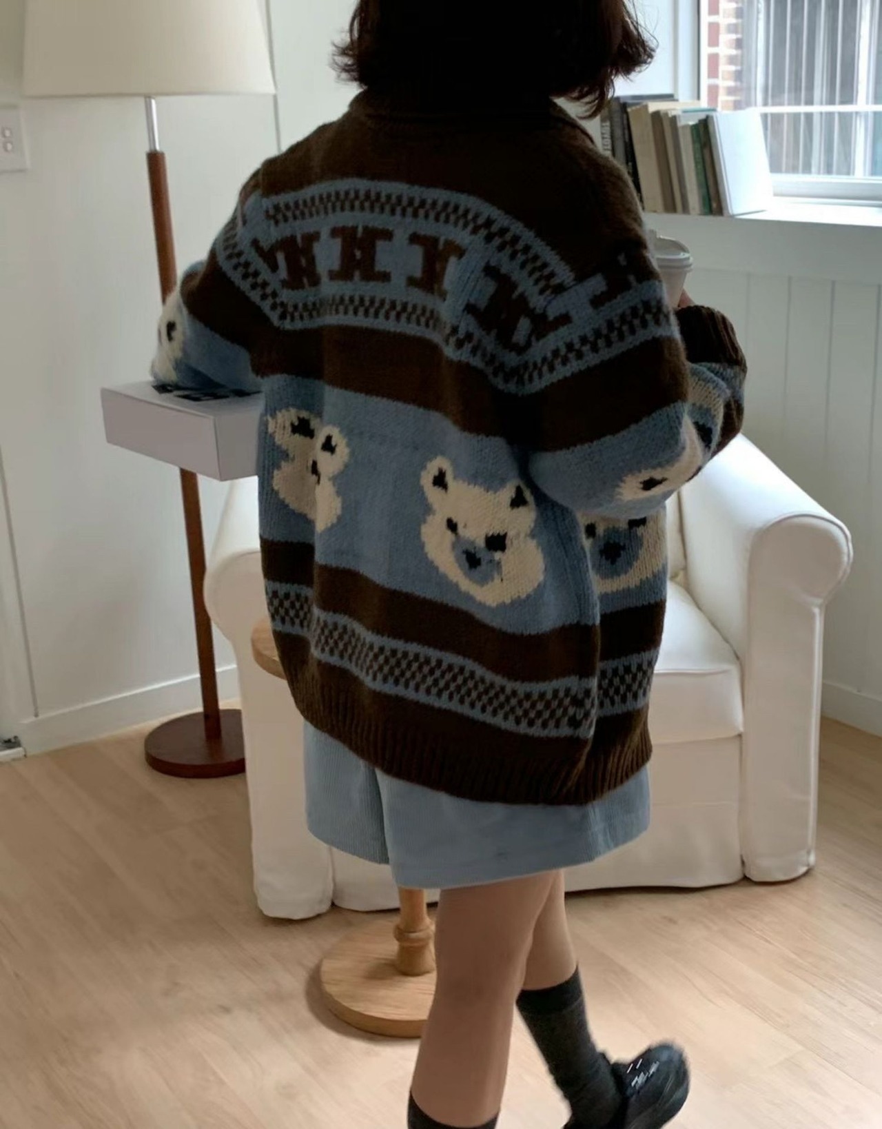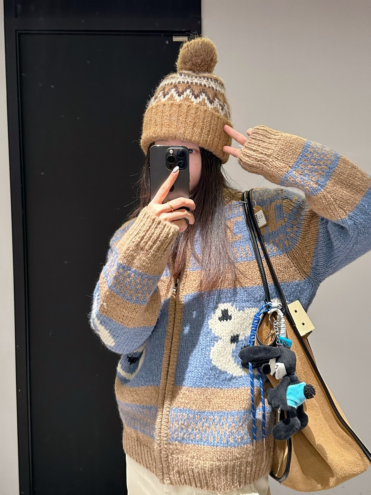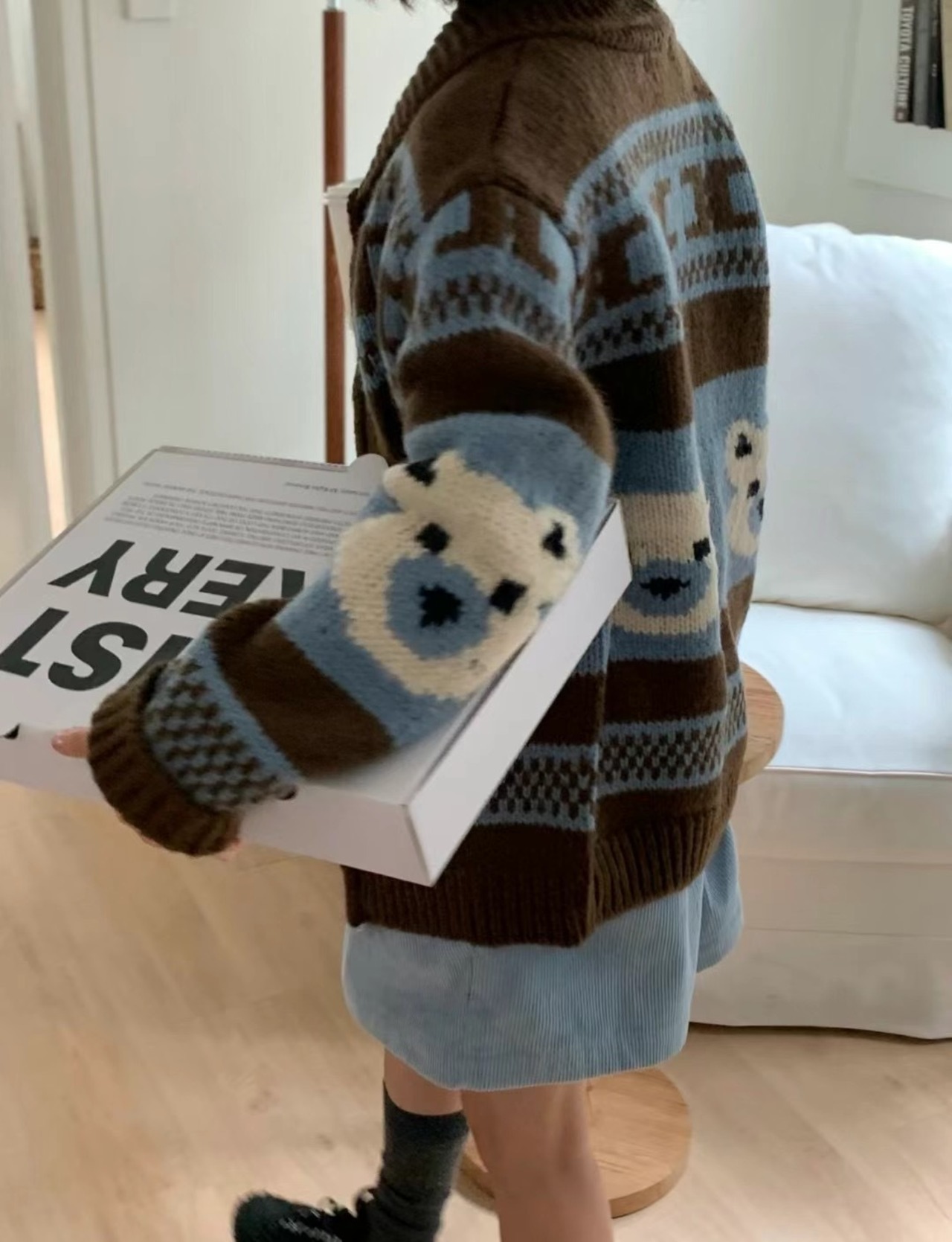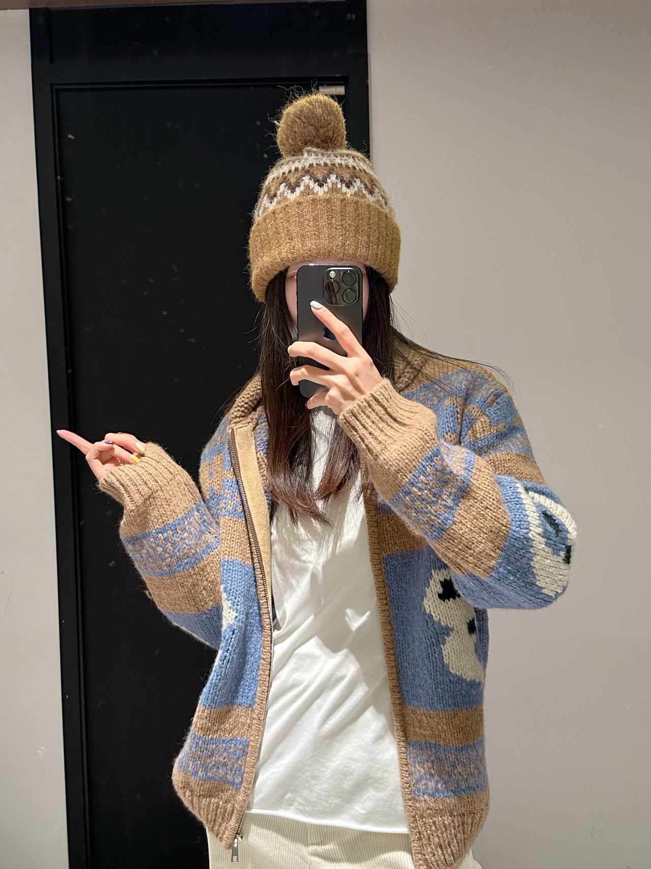 韓国 A some ニット カーディガン レディース ファッション セーター トップス 長袖ニットセーター ブラウン