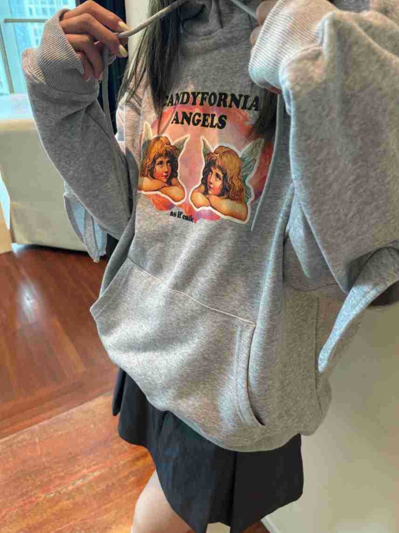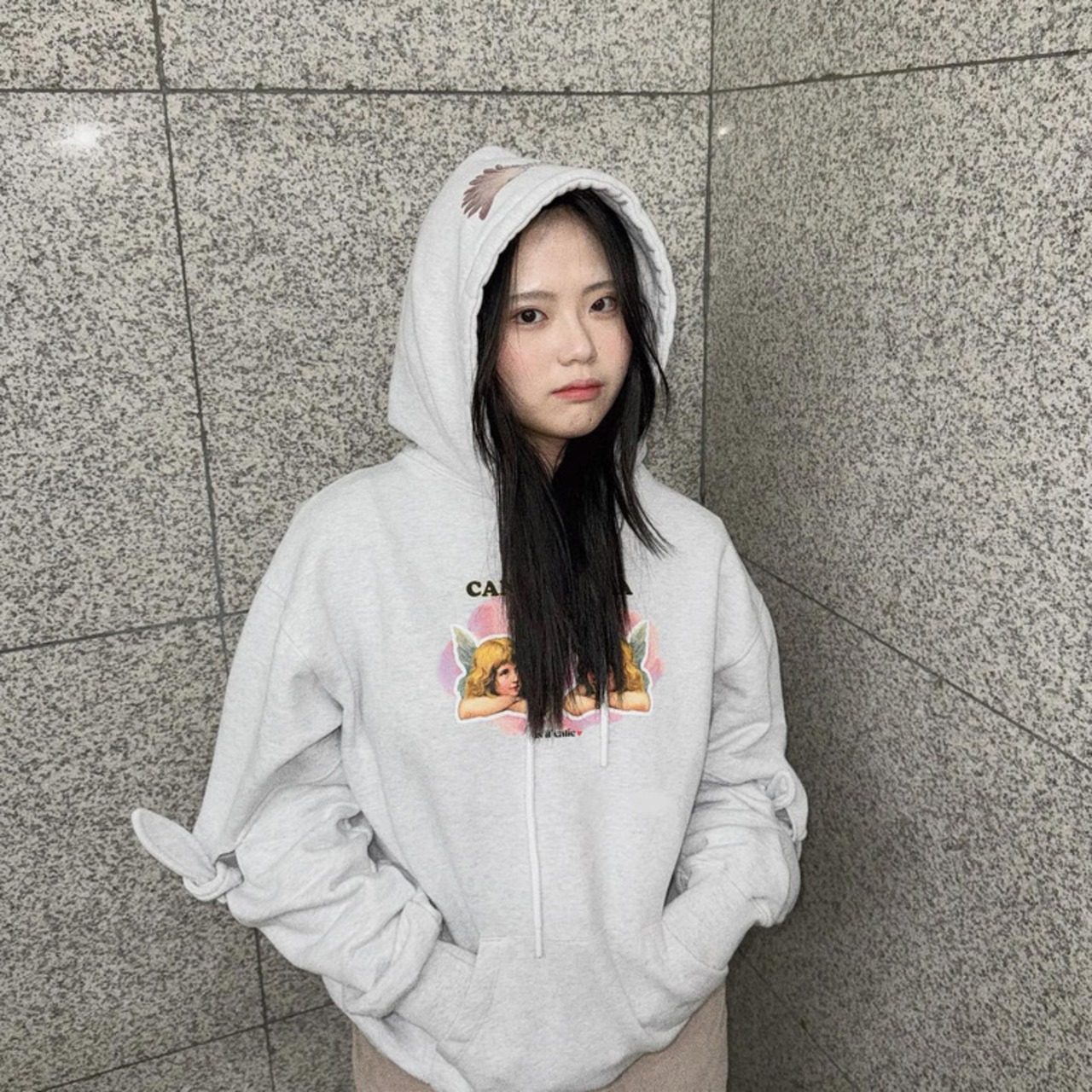 大人気 as if calie 韓国 アズイフカリー プルオーバー トップス パーカー レディースファッション 長袖 ANGEL WINGS HOODIE WHITEMELANGE