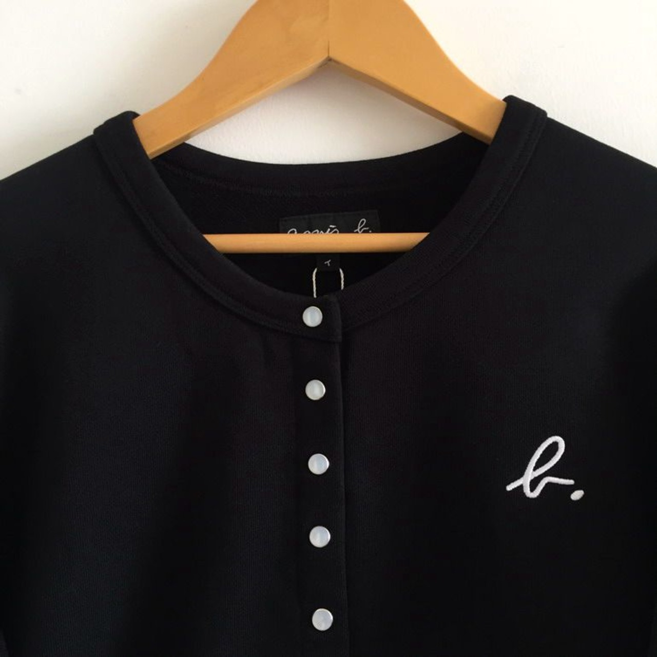 agnes b. アニエスベー カーディガン ロゴ プレッション 裏起毛 レディース 秋冬 ブラック