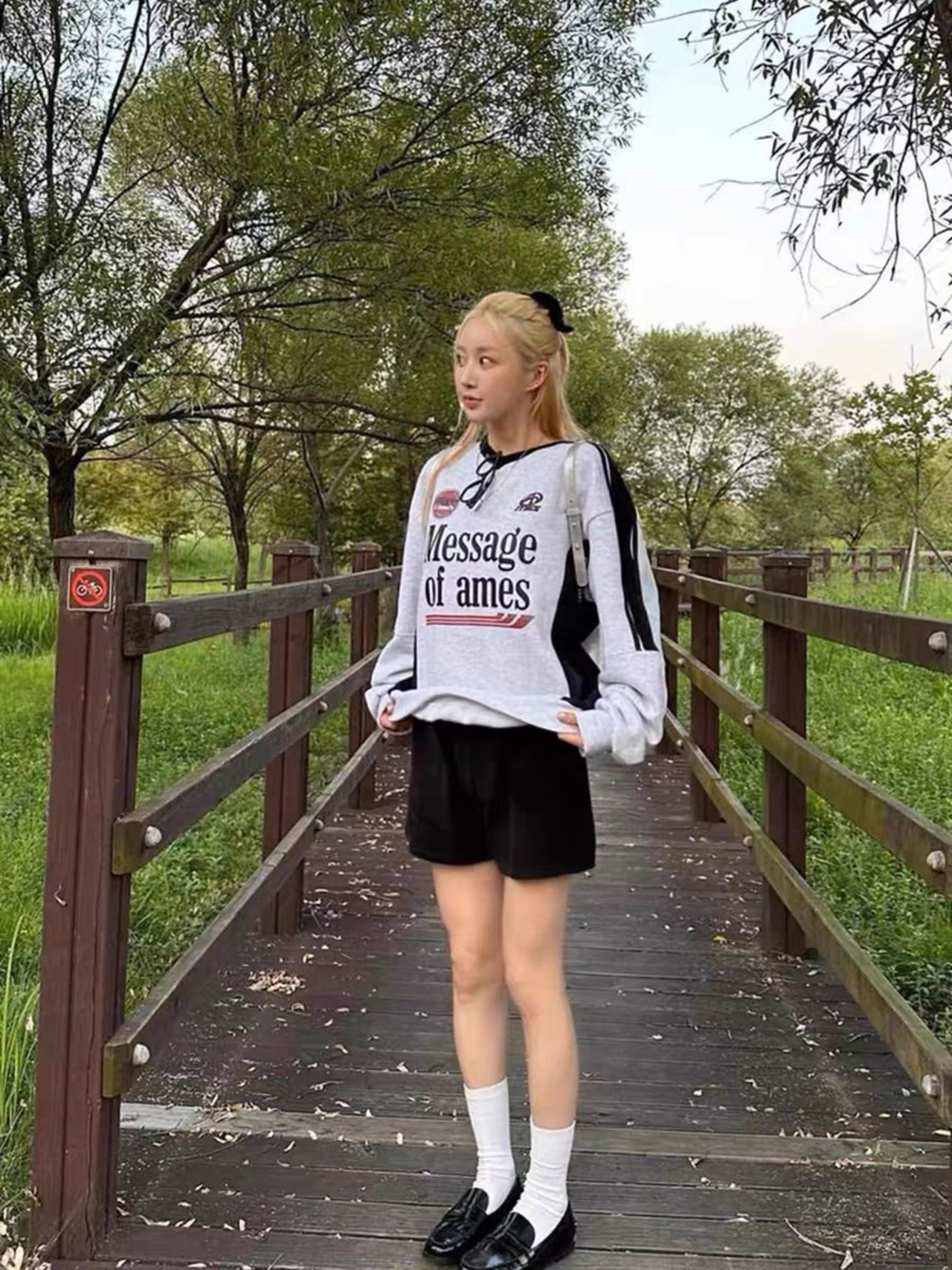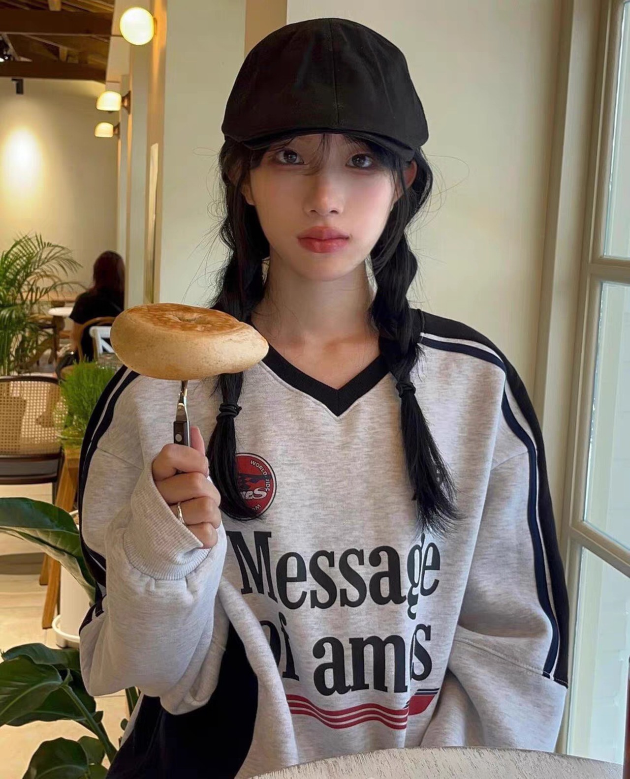 韓国 ファッション アメスワールドワイド SEVENTEENジョンハン着用 長袖 AMES-WORLDWIDE Vネックユニフォームスウェット 男女兼用 グレー
