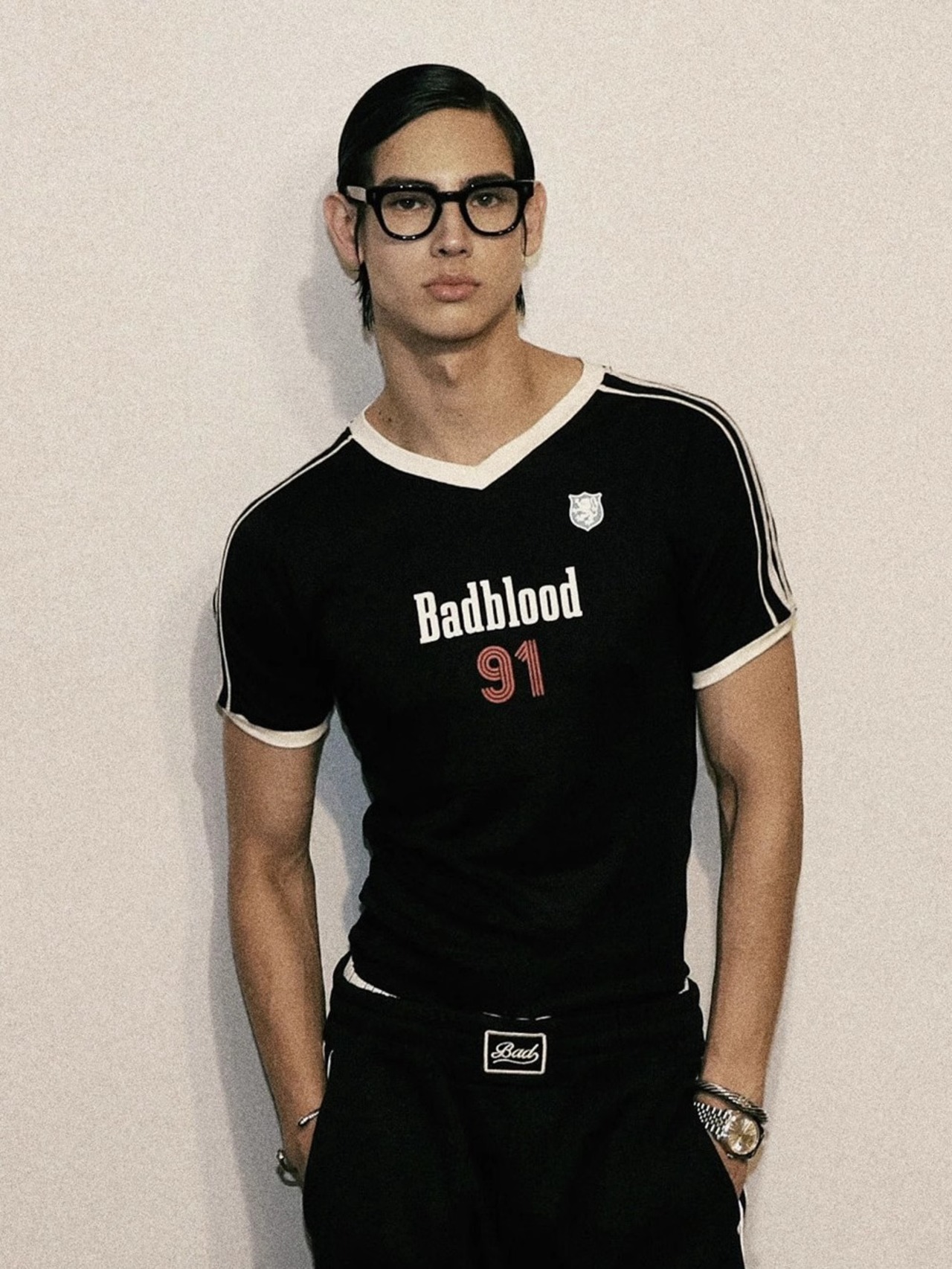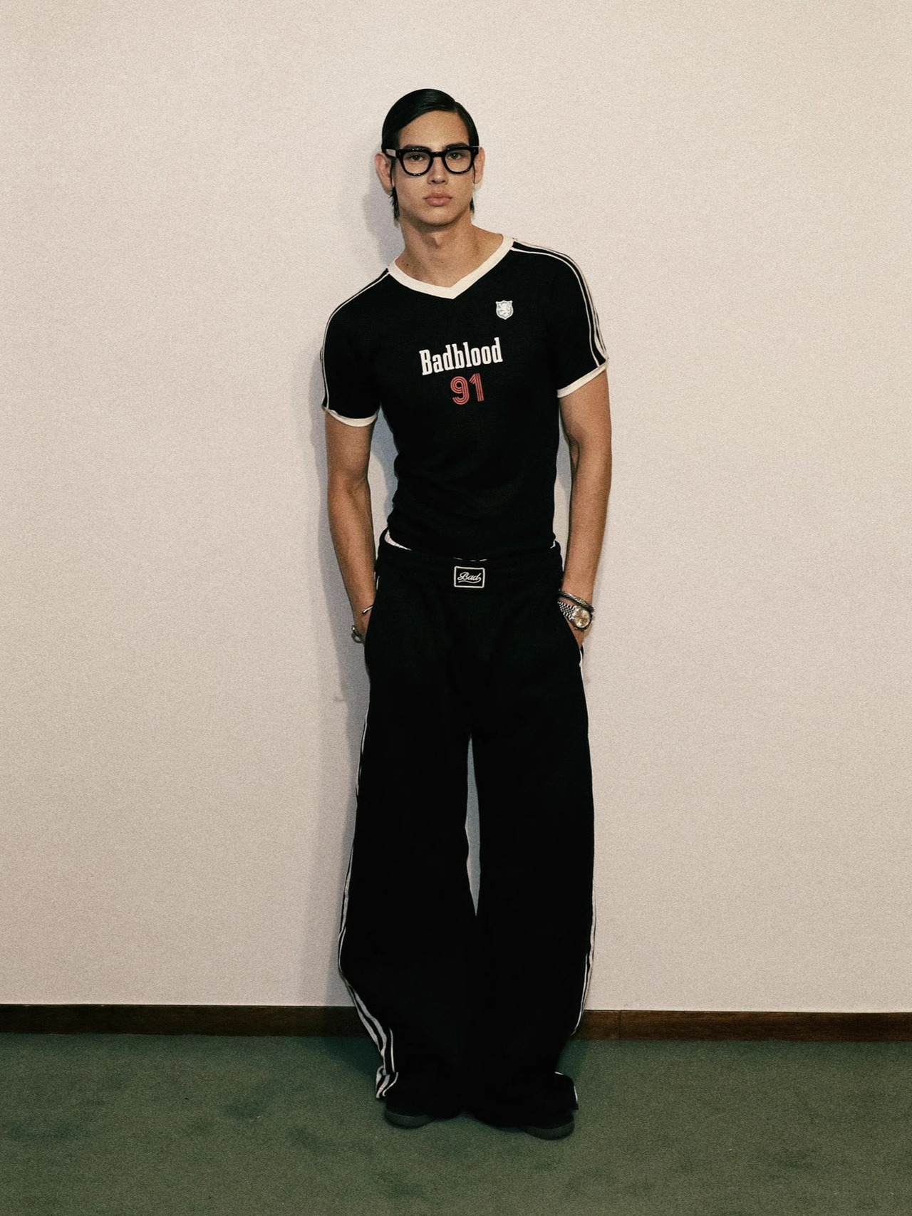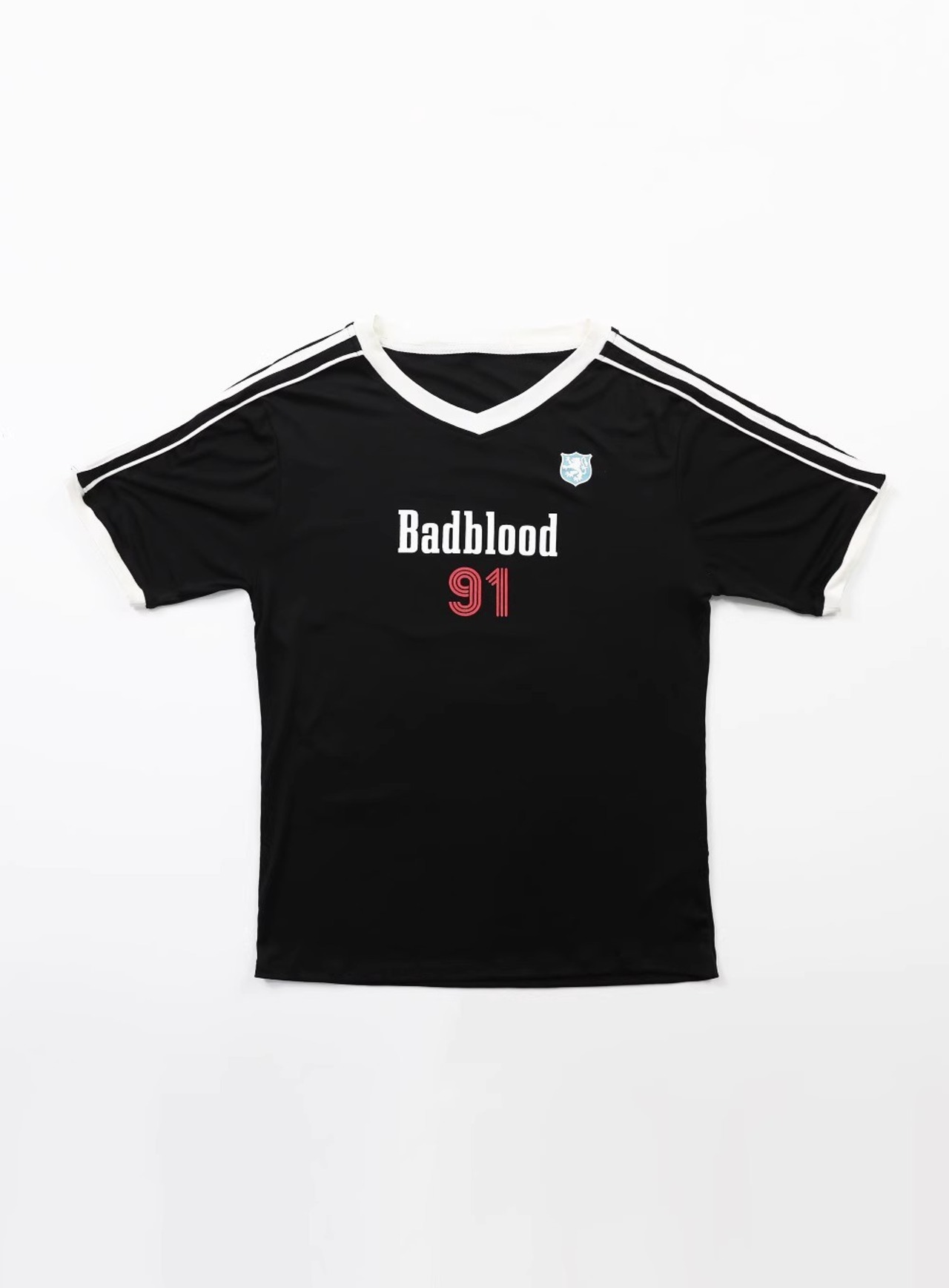 人気 韓国 バッドブラッド BADBLOOD クラブ Vネック ジャージ Tシャツ 半袖Tシャツ ブラック