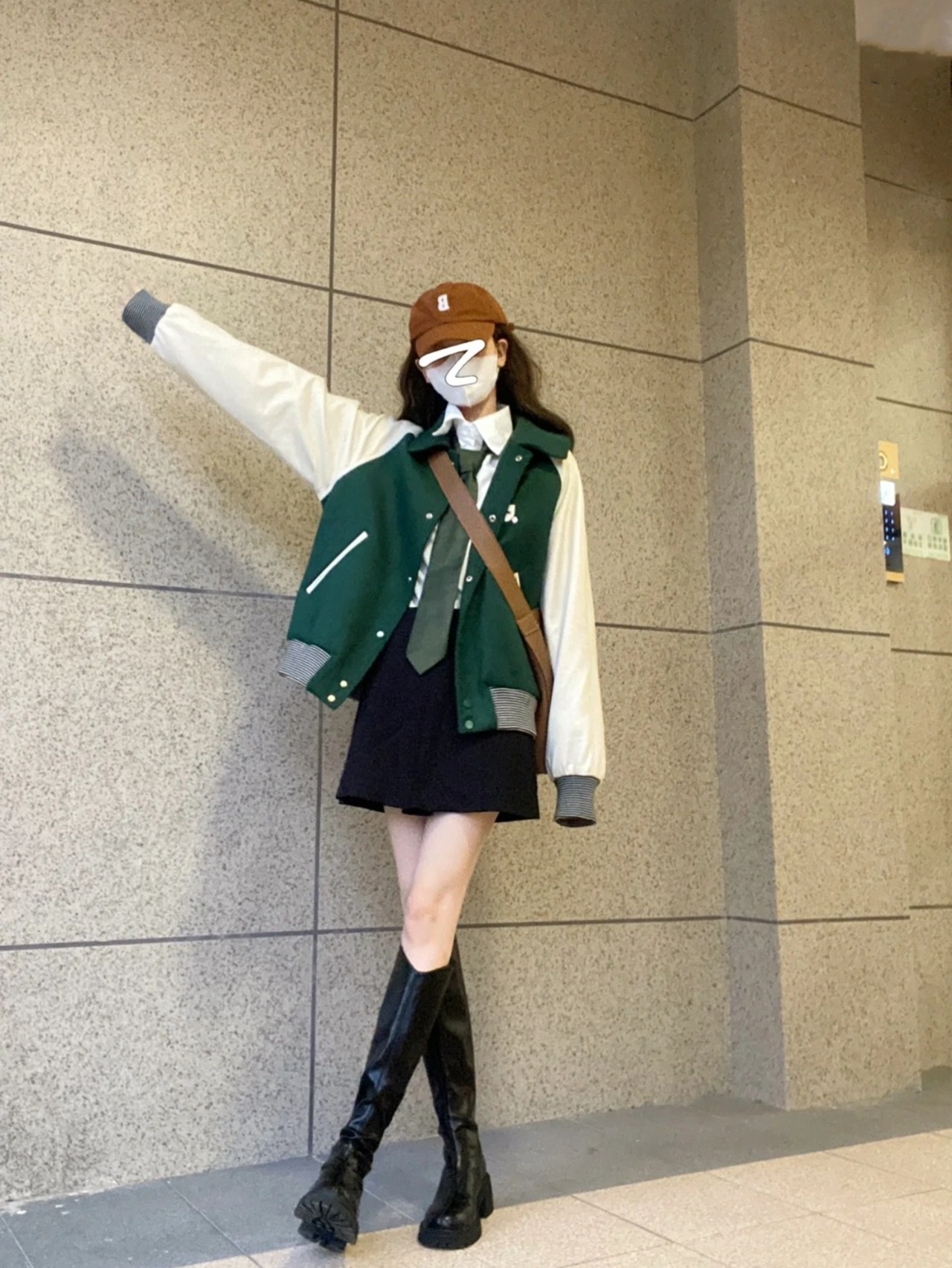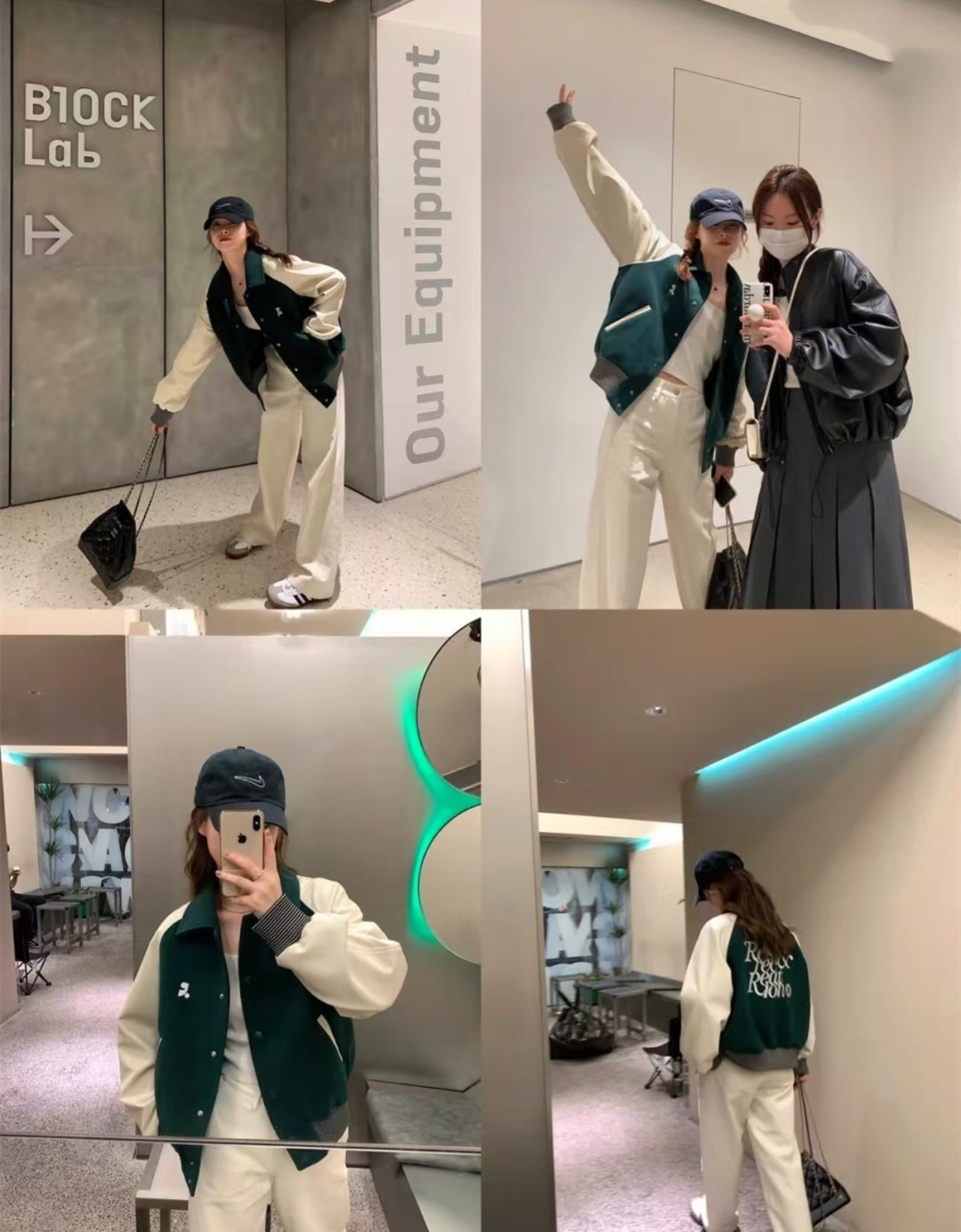 人気 韓国 Rest & Recreation レストアンドレクリエーション アウター ジャケット 防風 男女兼用 RR LOGO WOOL BOMBER JACKE.T グリーン