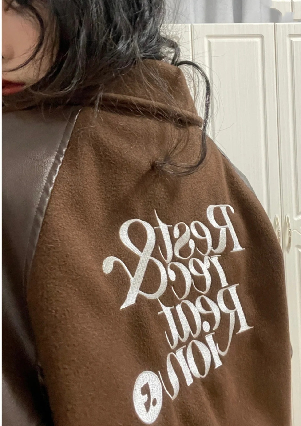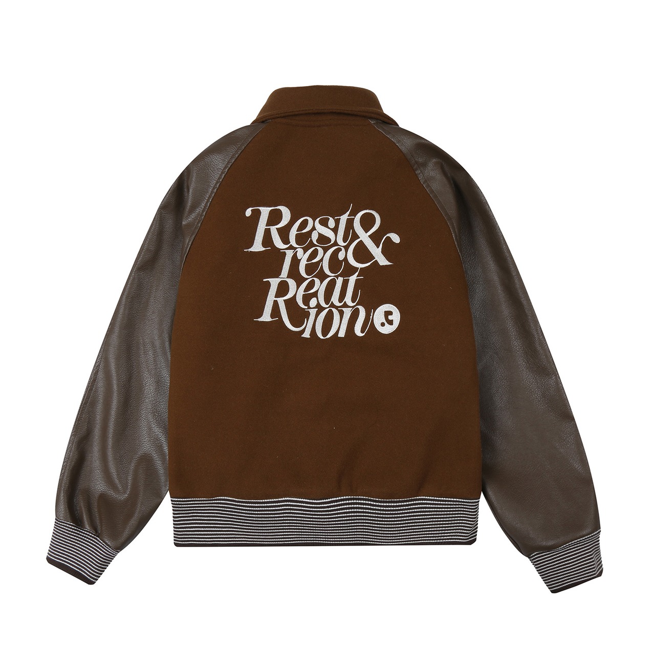 韓国 Rest & Recreation レストアンドレクリエーション ジャケット アウター 防風 男女兼用 人気 RR LOGO WOOL BOMBER JACKE.T ブラウン