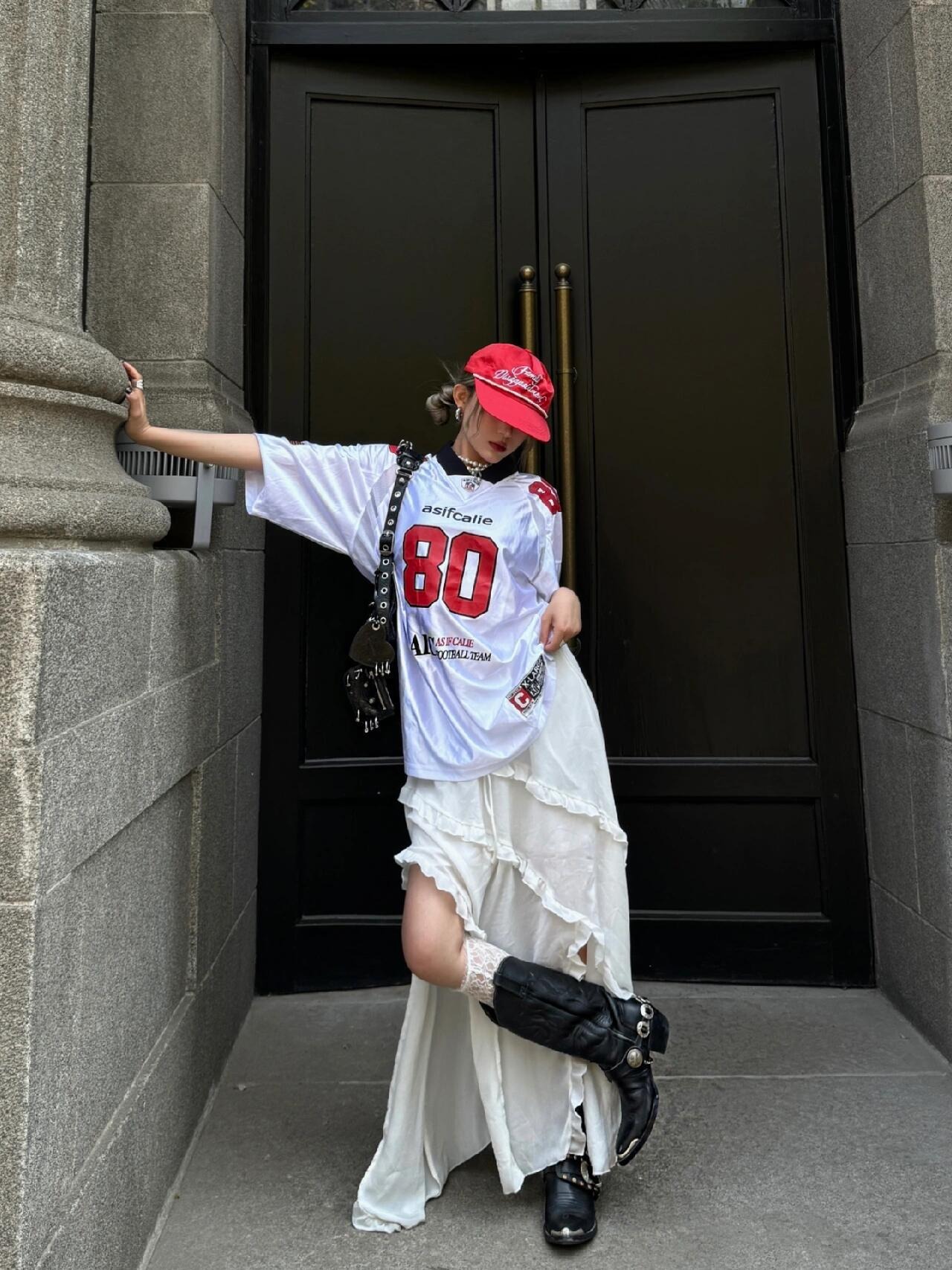 大人気 韓国 as if calie NewJeans NMIXX 着用 アイドル レディース メンズ 大きいサイズ Tシャツ CALIE FOOTBALL JERSEY