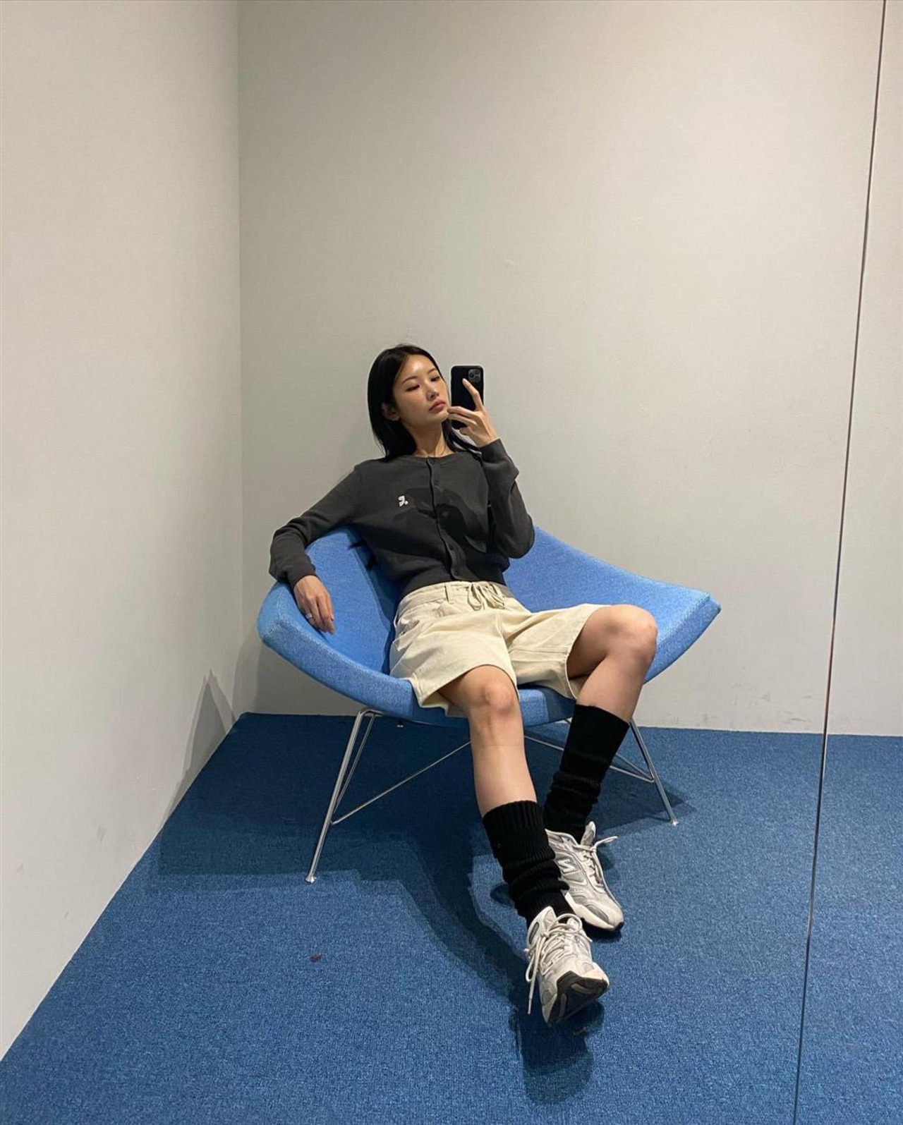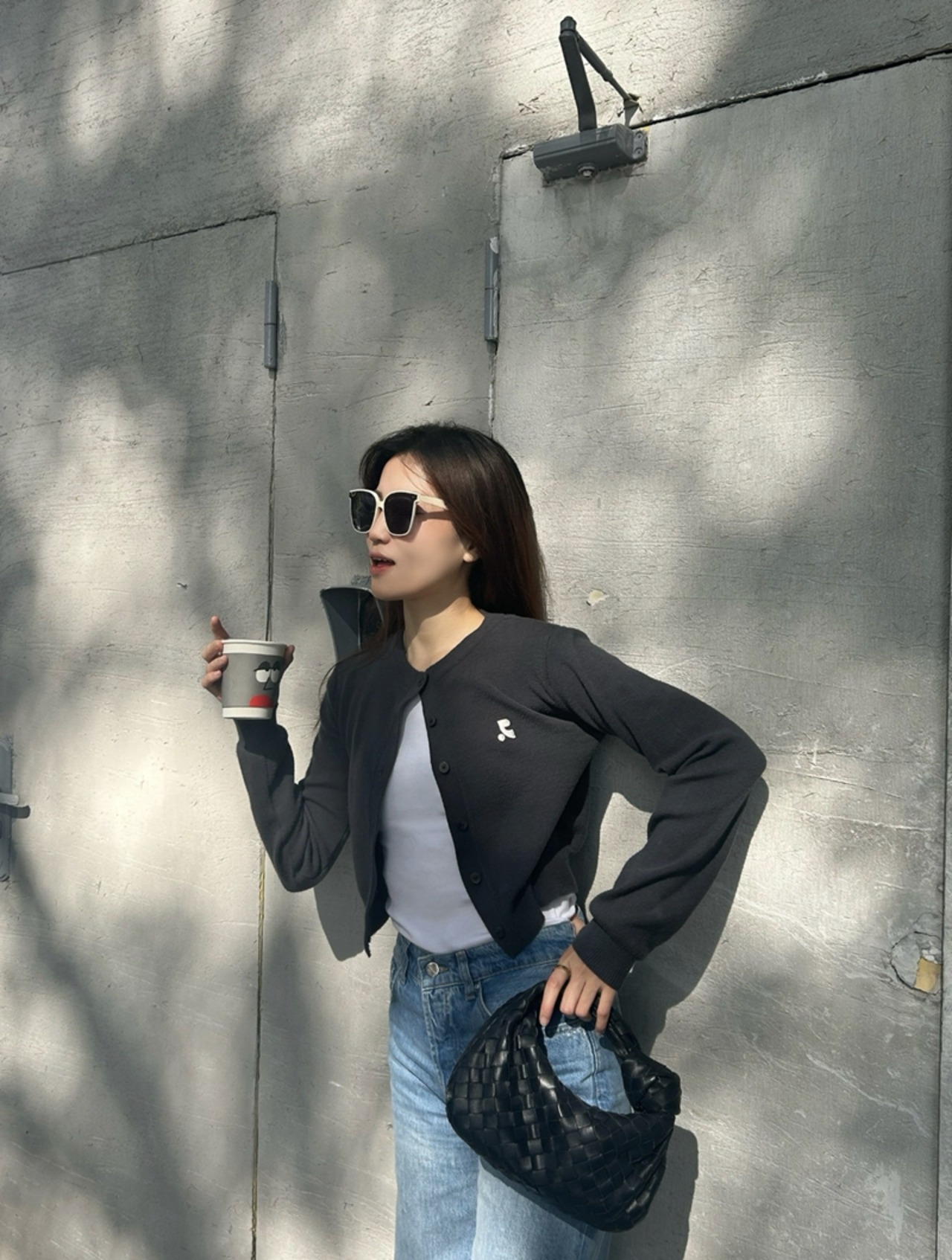 韓国 レストアンドレクリエーション Rest&Recreation レディースファッション 長袖 トップス ショート ニット カーディガン RR CROP KNIT CARDIGAN グレー