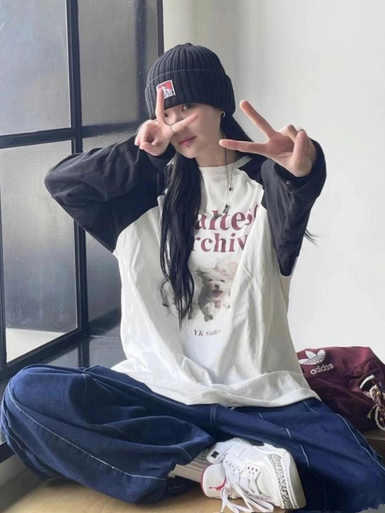 WaiKei ワイケイ 韓国ファッション トップス Tシャツ 長袖 長袖Tシャツ 犬 マルチーズ Maltese archive raglan long sleeve tshirts アイボリー