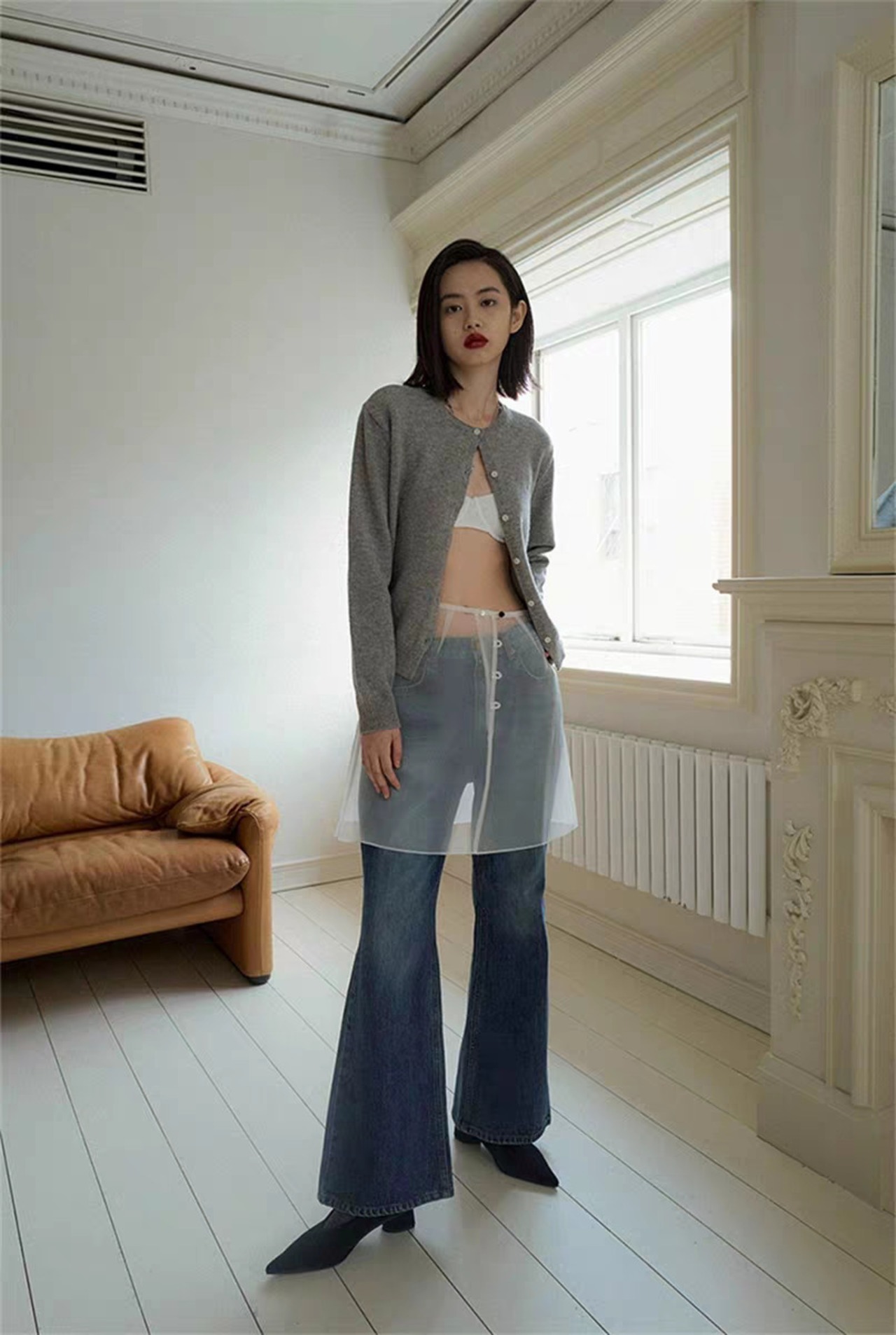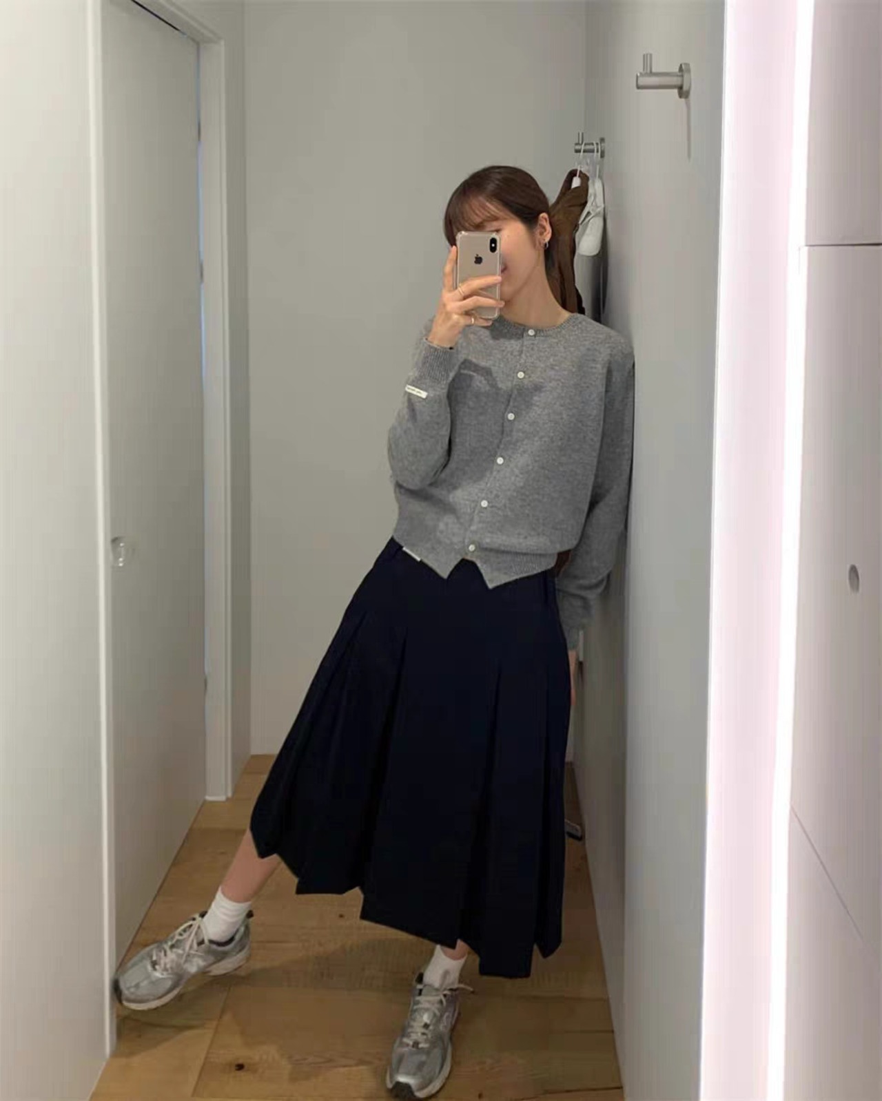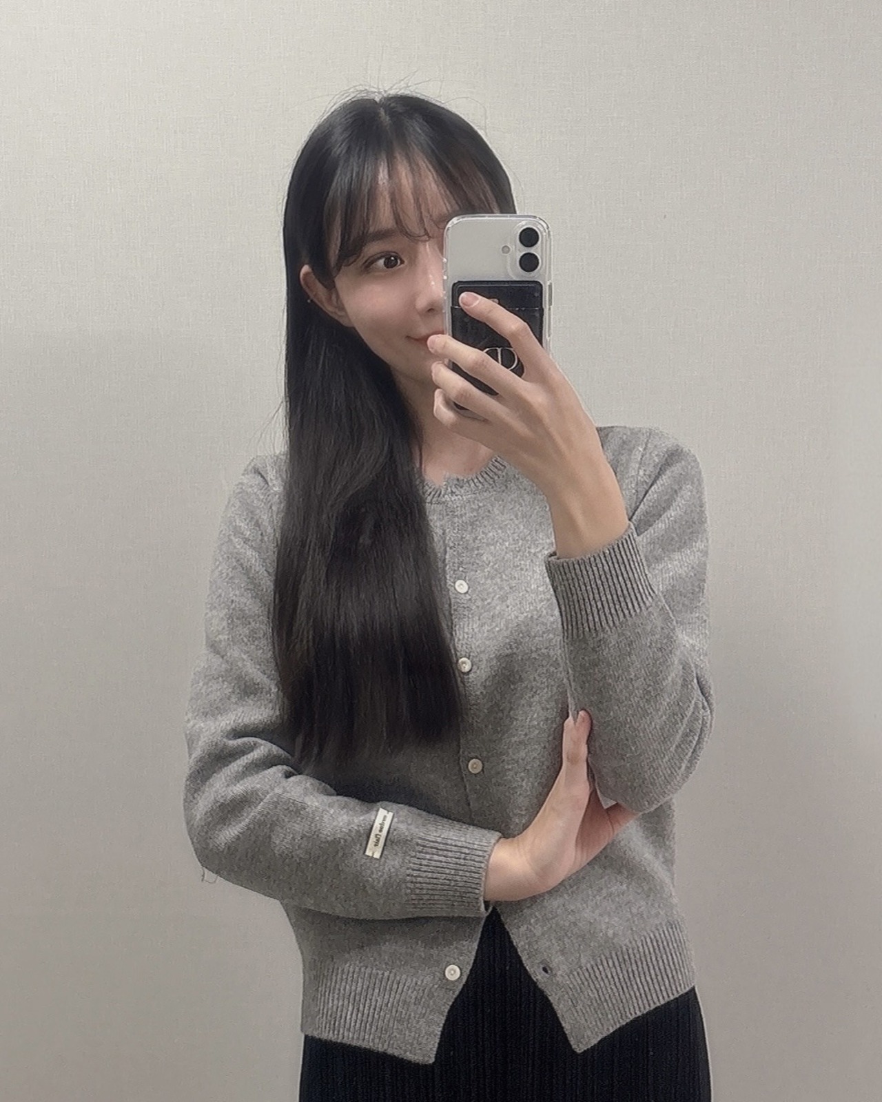 人気 overdue flair オーバーデューフレア 韓国 ファッション トップス クルーネック カーディガン OVERDUE WOOL CARDIGAN グレー