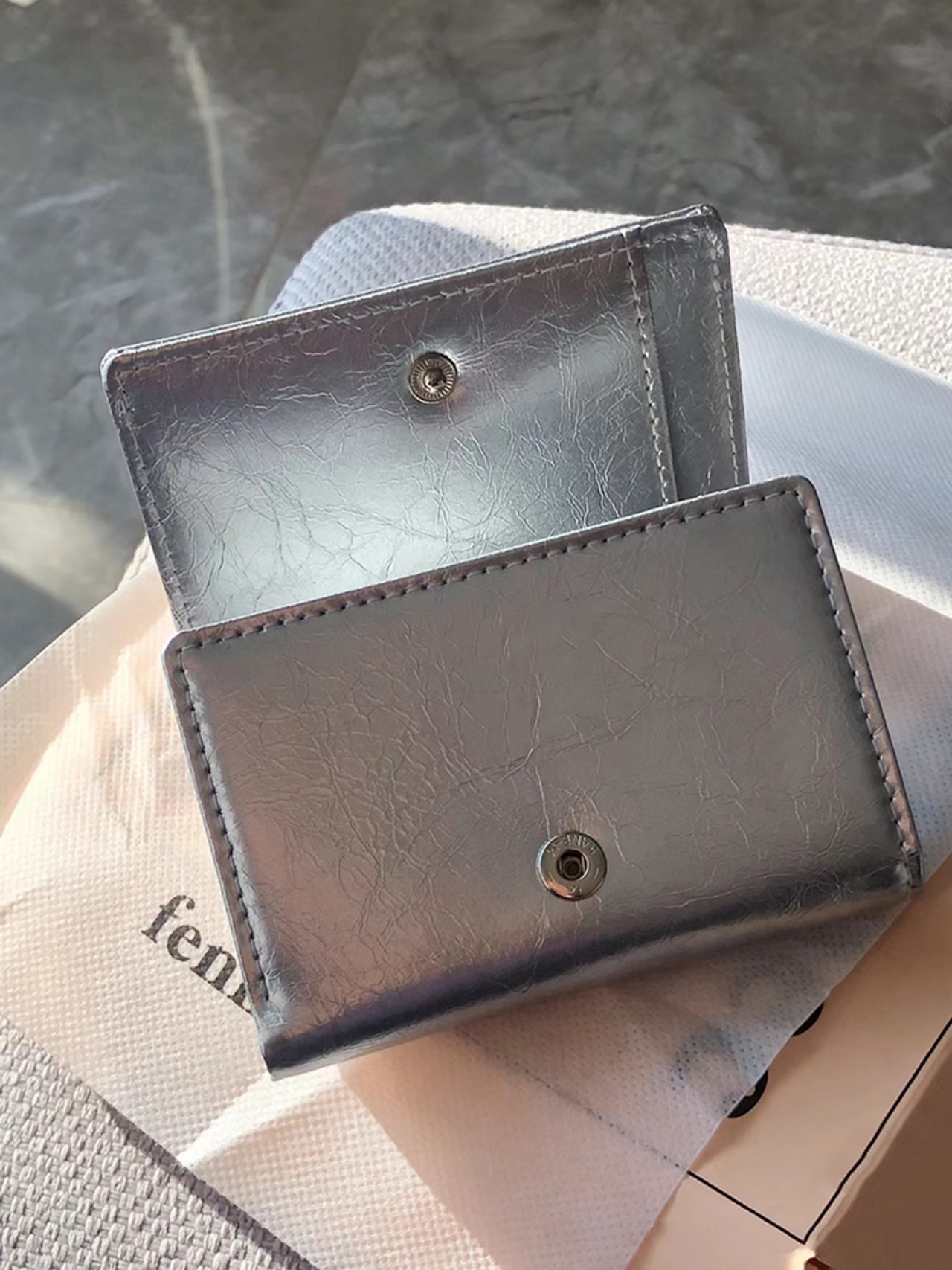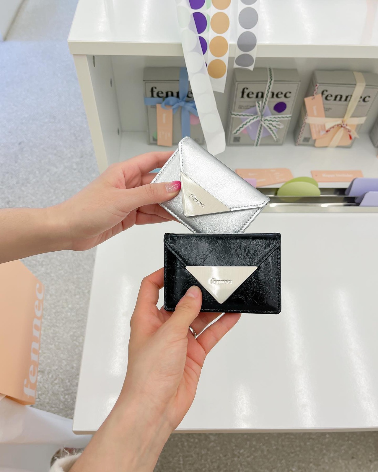 韓国 Fennec フェネック 三つ折り財布 財布 小物 カードケース 名刺入れ 人気 ファッション CRINKLE TRIANGLE TRIPLE WALLET シルバー