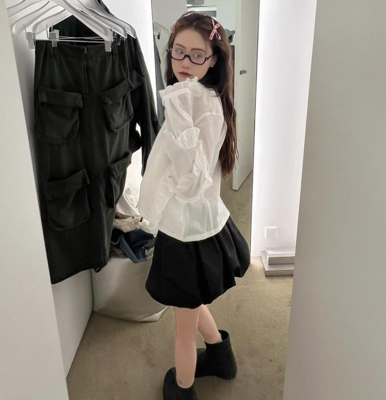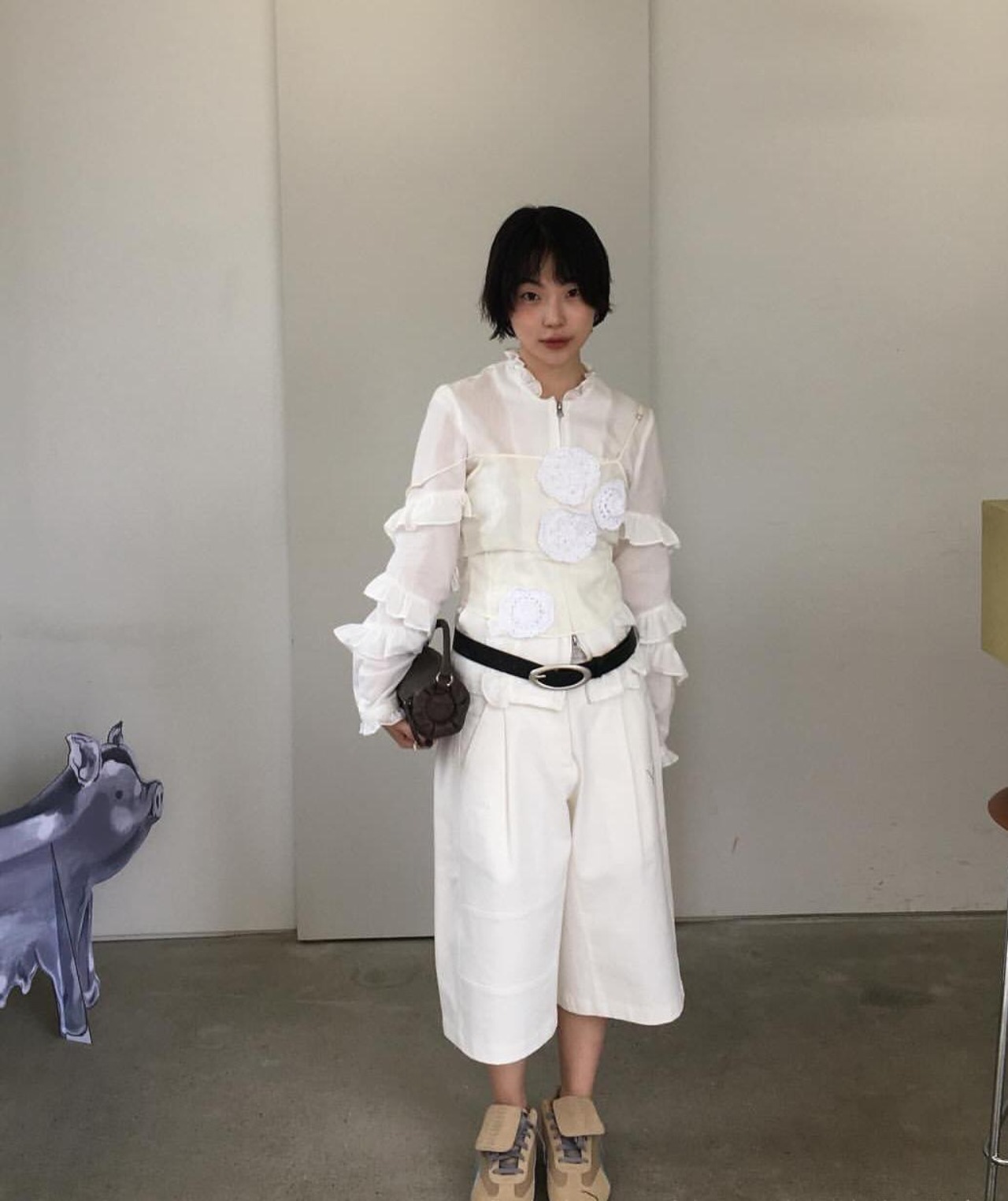 韓国 OPEN YY オープンワイワイ レディースファッション トップス ブラウス シャツ COTTON FRILL ZIP SHIRT