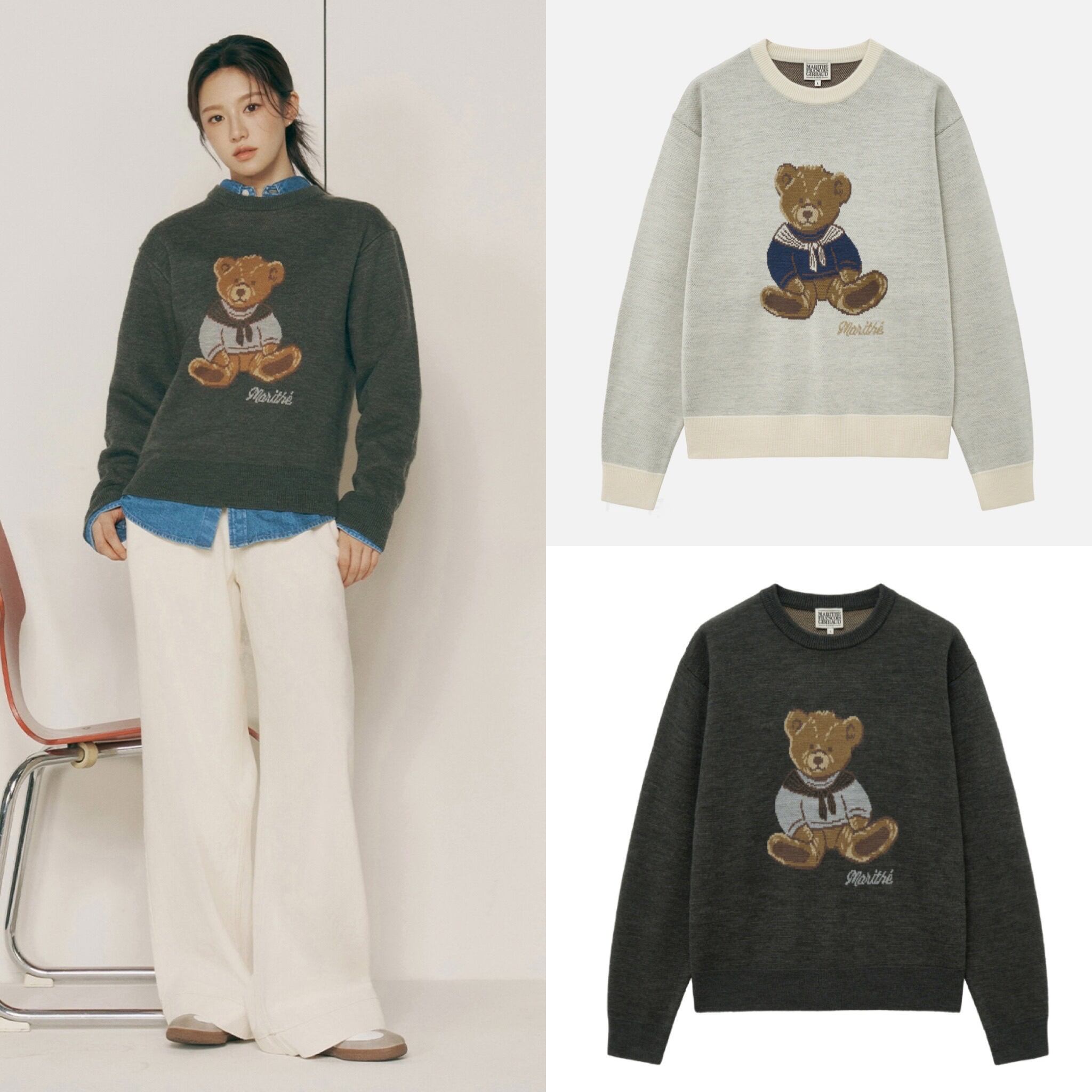 韓国 Marithe + Francois Girbaud マリテフランソワジルボー レディースファッション トップス ニット セーター DOODLE BEAR SWEATER CHARCOAL