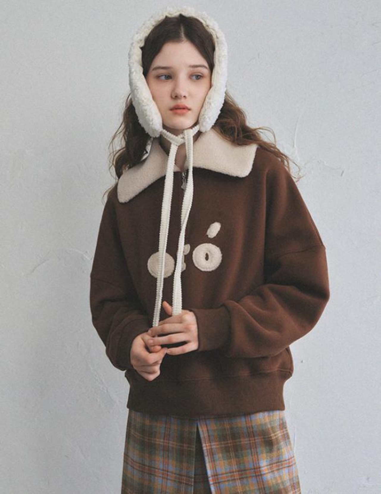 新作 韓国 ORO ファッション トップス スウェット トレーナー 長袖 APEER SHEARING FLEECE ANORAK ブラウン