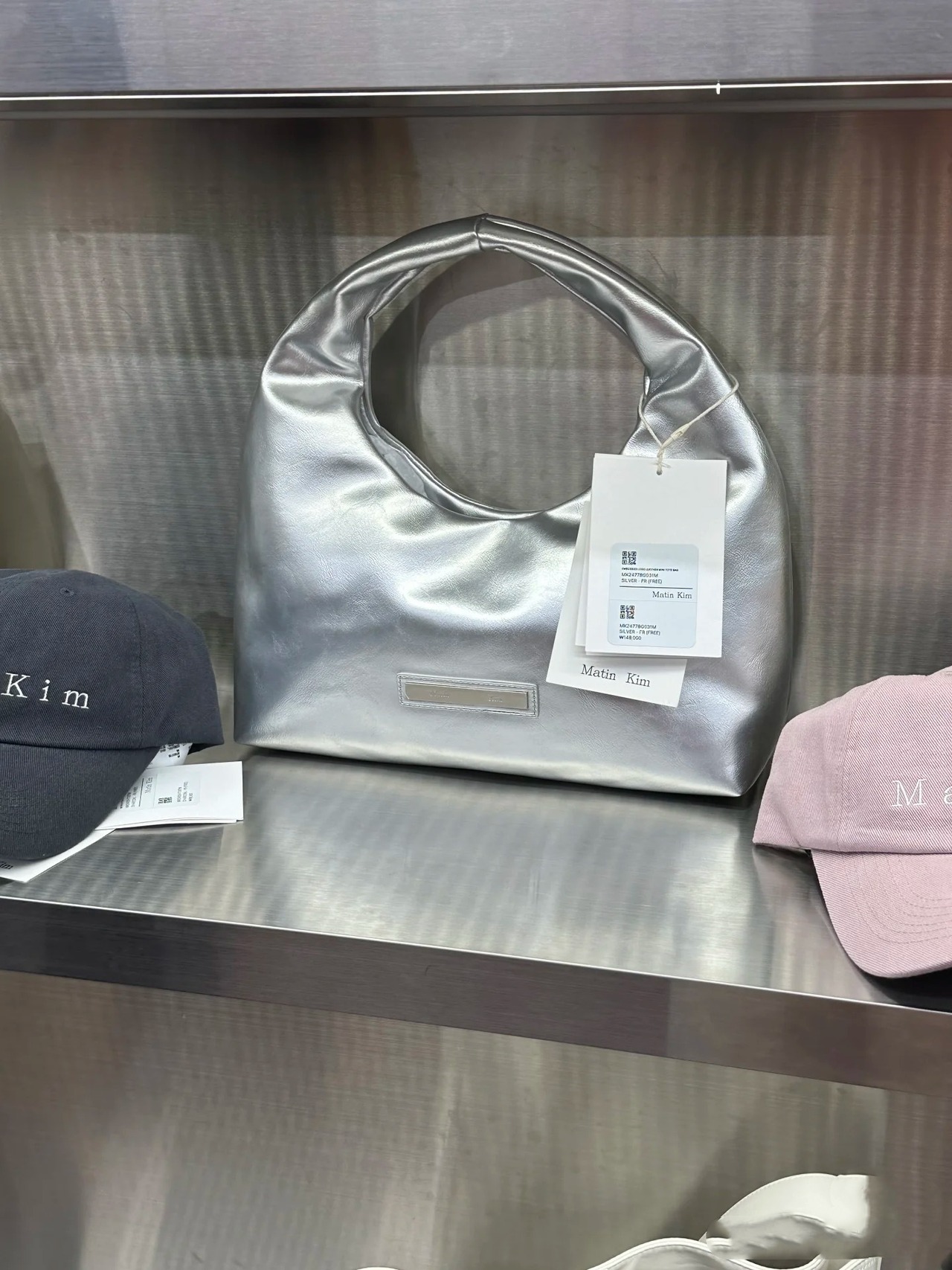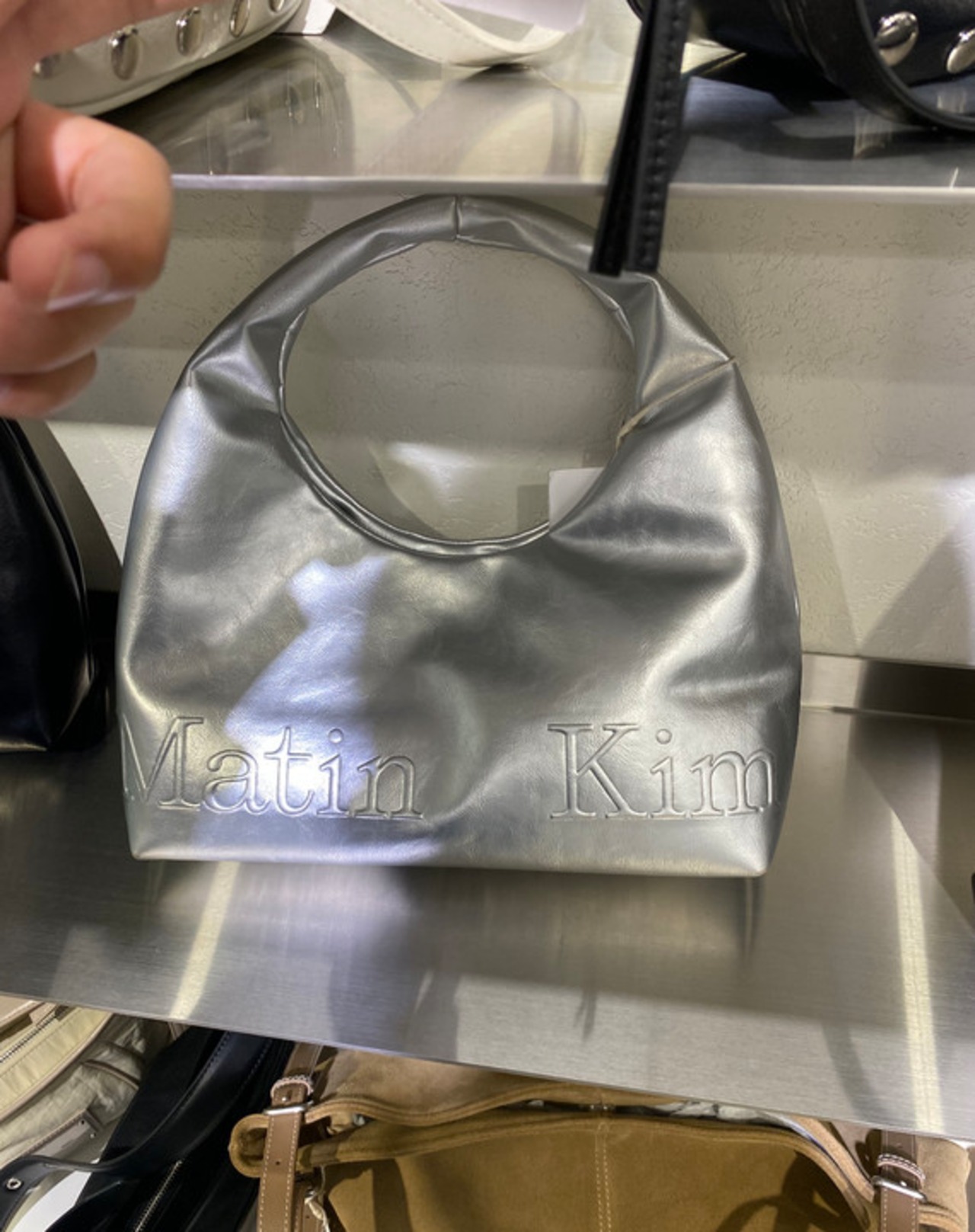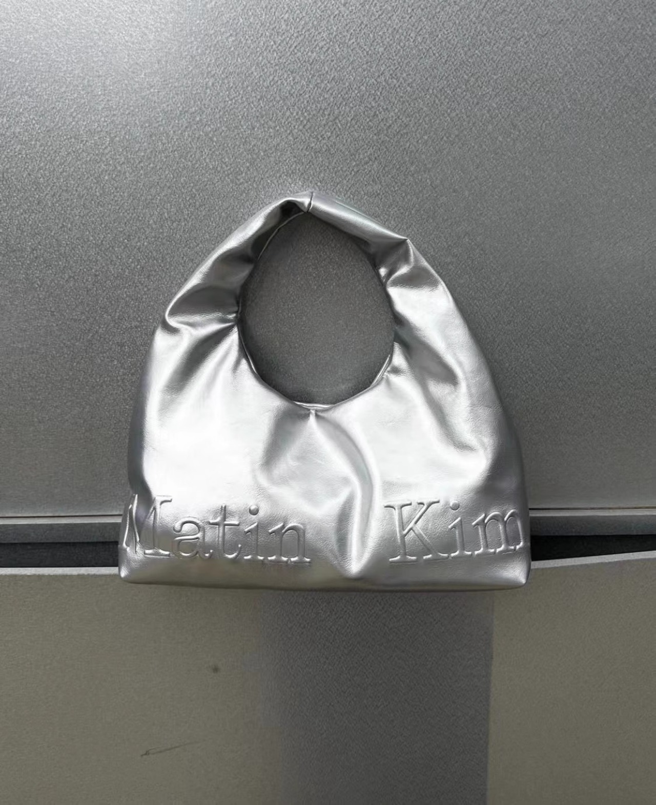 Matin Kim マーティンキム トートバッグ レディース 韓国ファッション EMBOSSED LOGO LEATHER MINI TOTE BAG SILVER