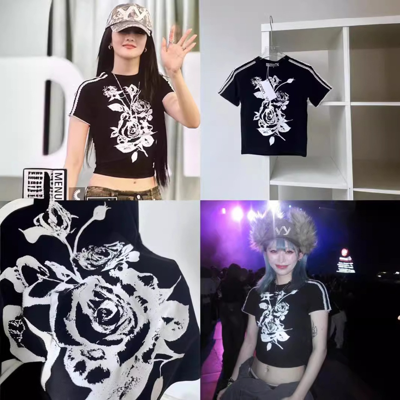 オープンワイワイ 韓国ファッション レディース 夏 カジュアル 半袖の人気Tシャツ 大人 可愛い 黑