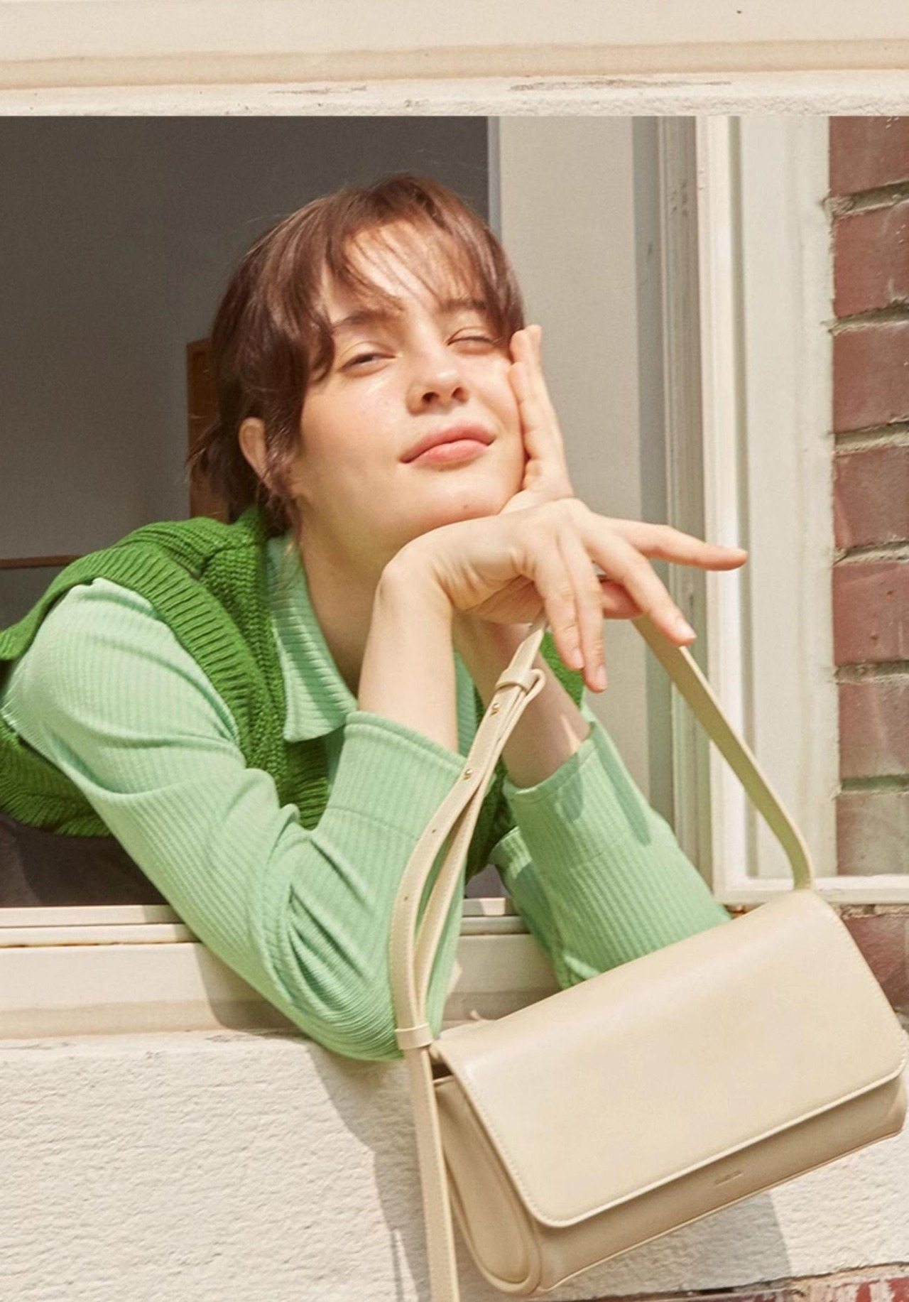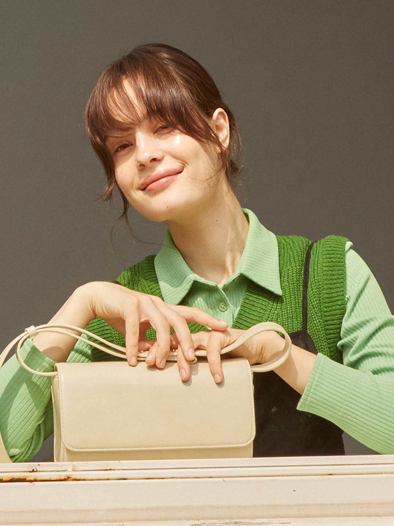バターを思わせる長方形が特徴的なショルダーバッグ。