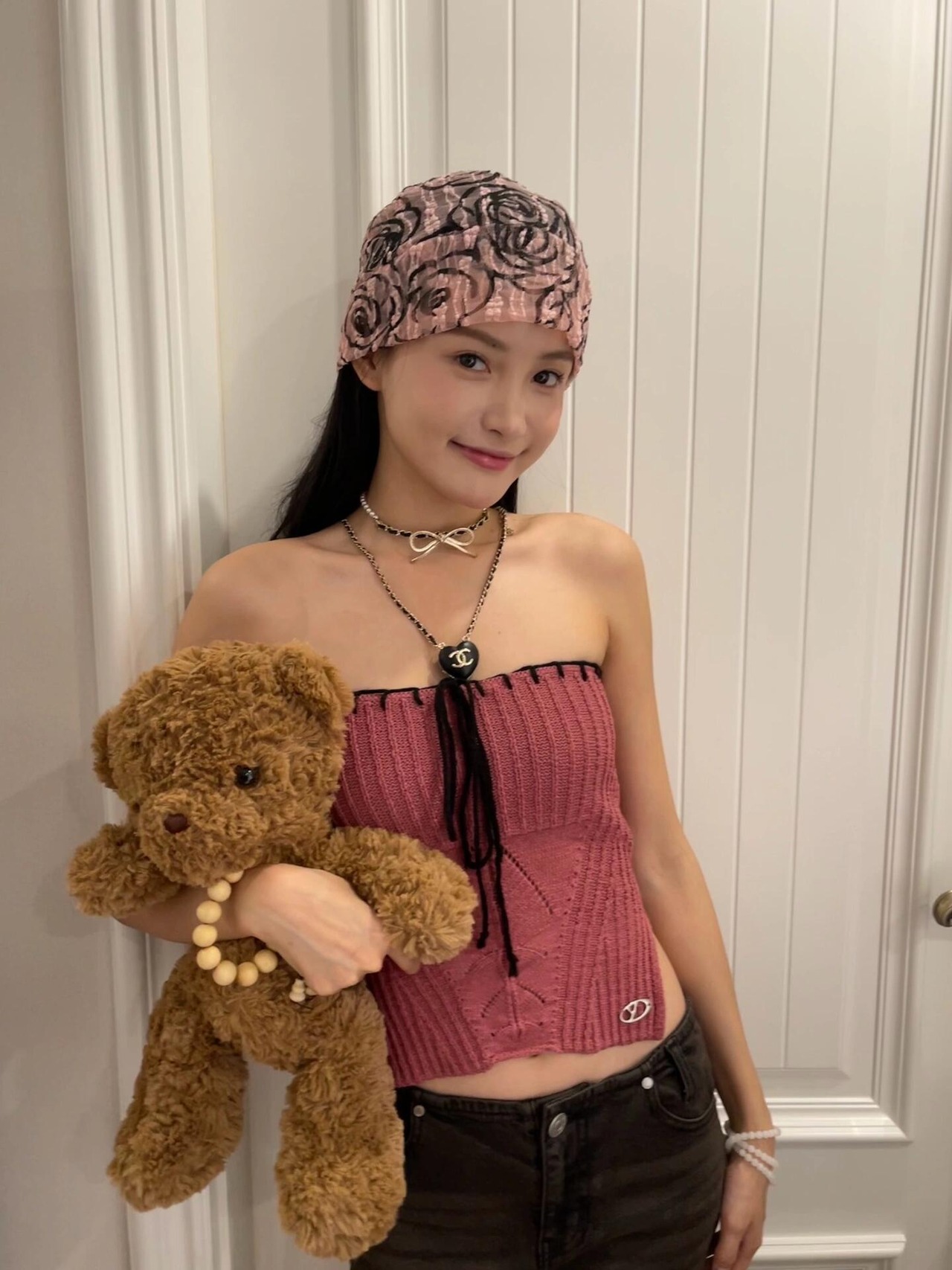 韓国ファッション MIAE 帽子 ビーニー レディース ファッション ローズメッシュビーニー Rose mesh beanie PINK