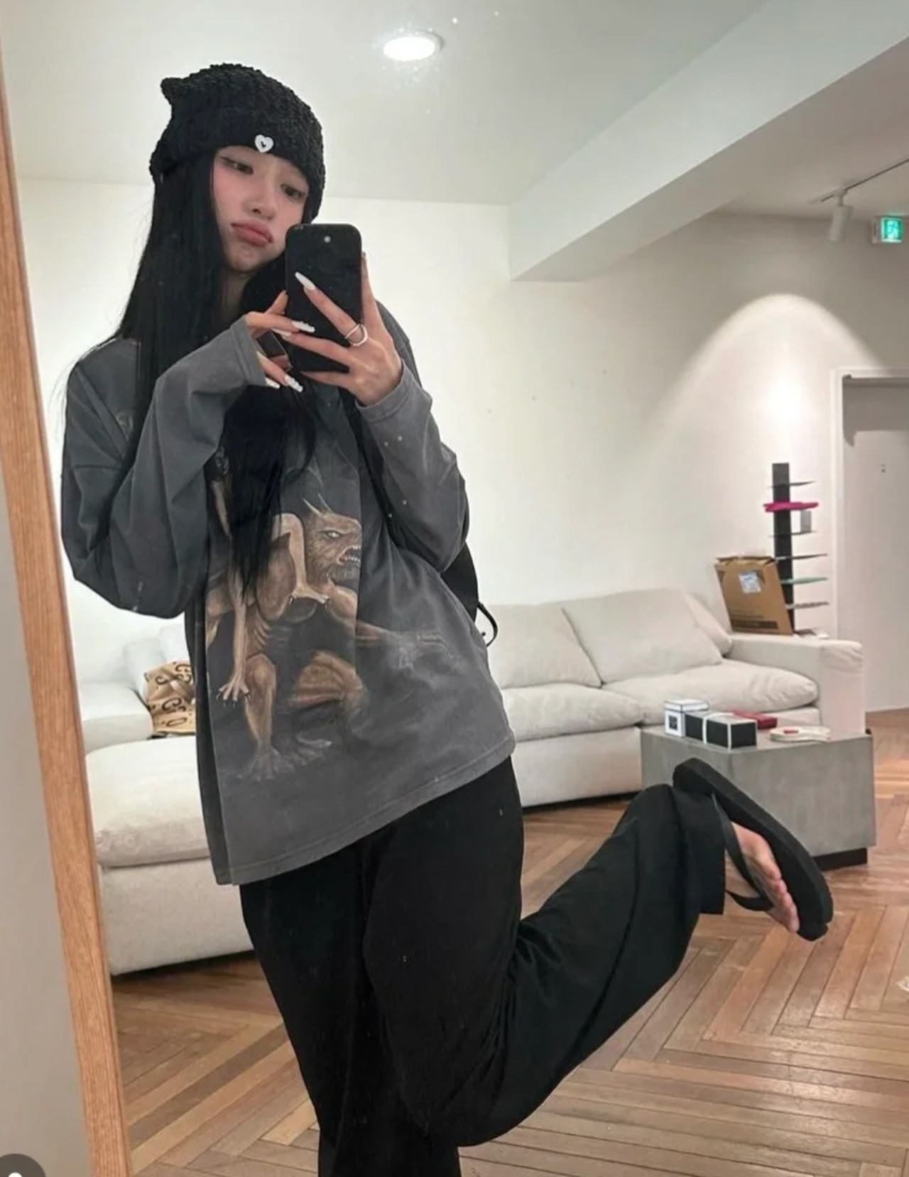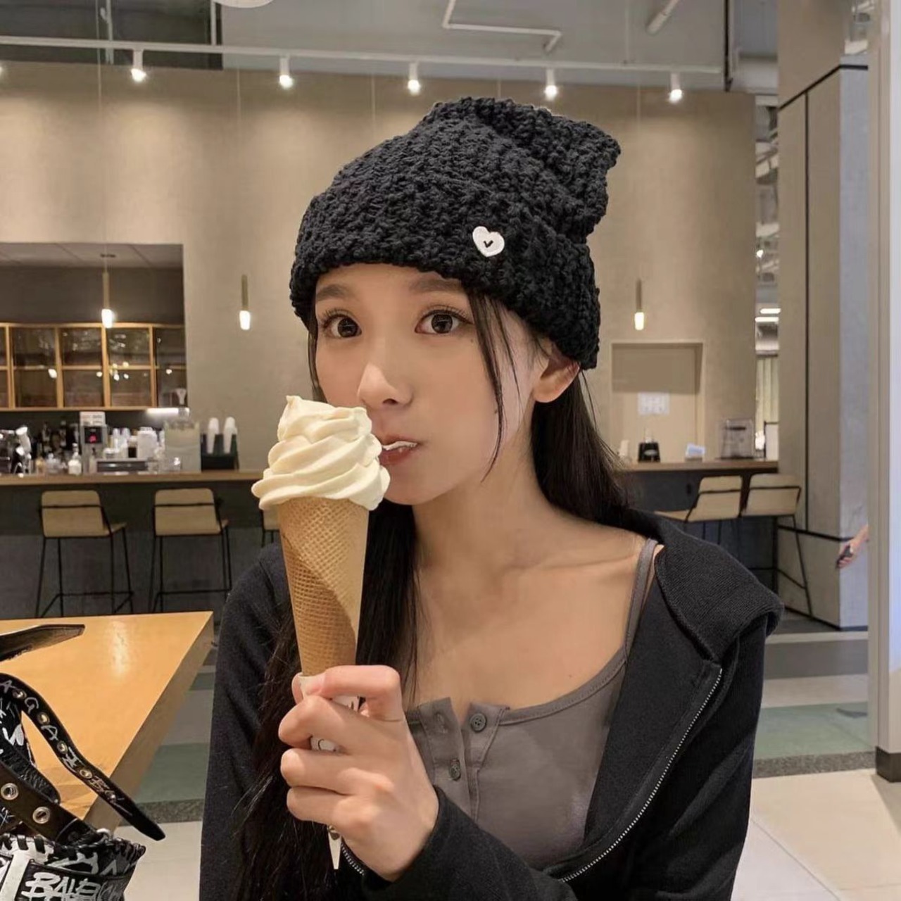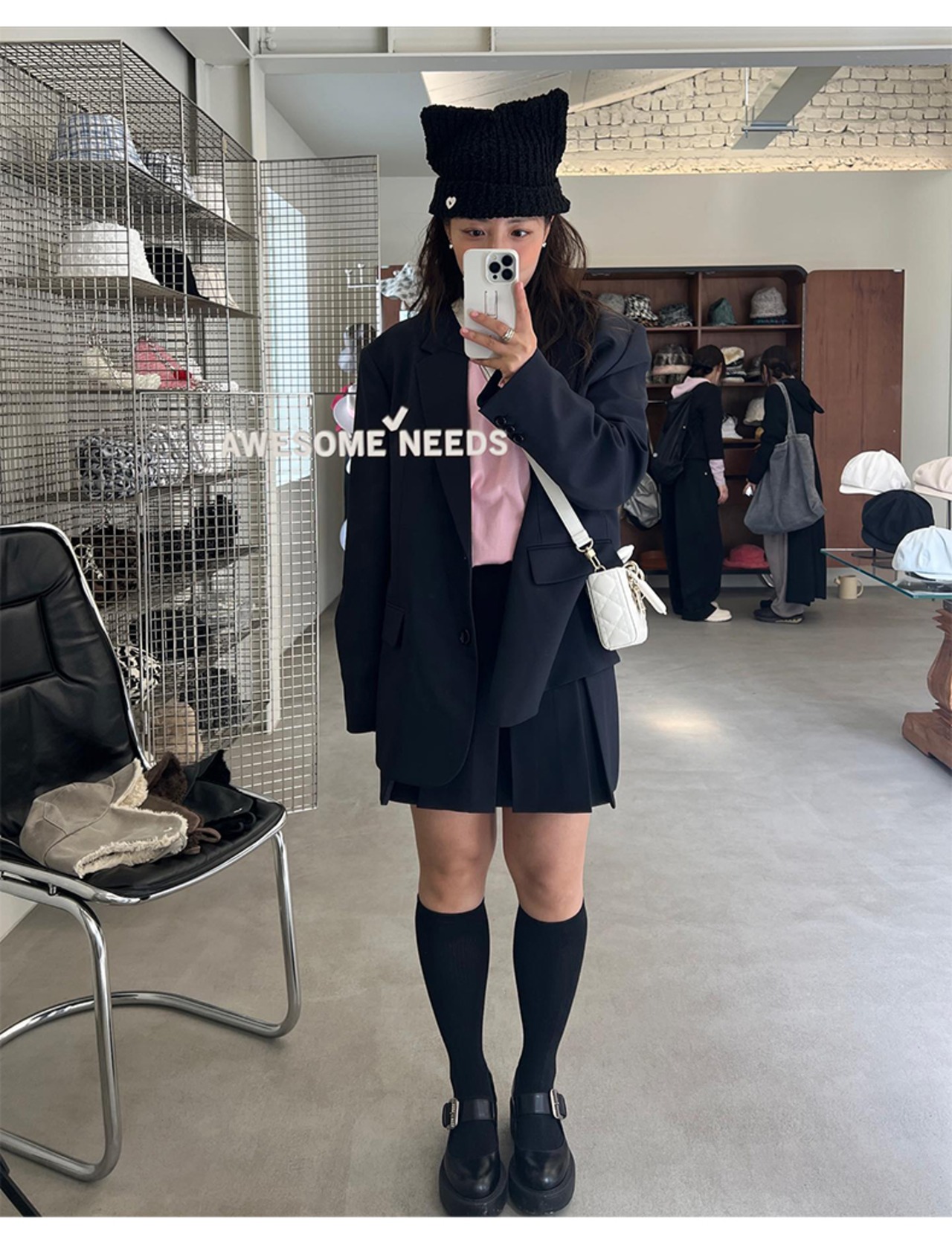 韓国 AWESOME NEEDS レディース ファッション aespa ウィンター 着用 ネコ耳 ニット帽 かわいい 猫耳帽子 ニットキャップ ビーニー SS CAT KNIT HAT BLACK