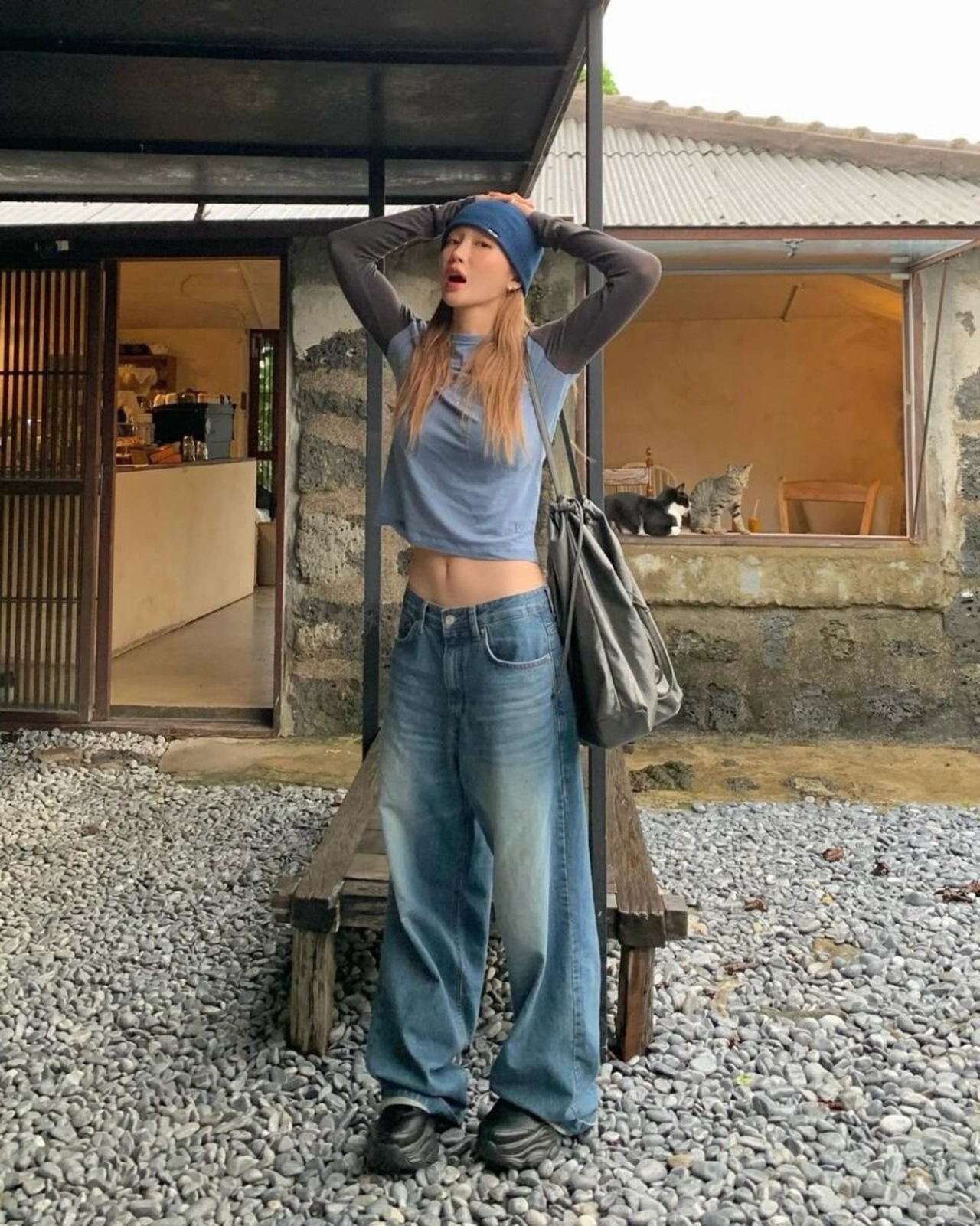 大人気 韓国 ファッション LOW CLASSIC ロウ クラシック 長袖 トップス TシャツCONTRAST WOOL TENCEL T-SHIRT