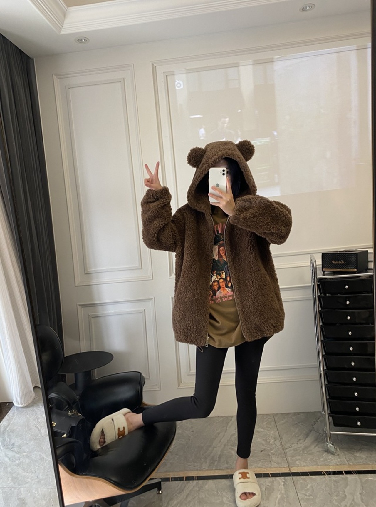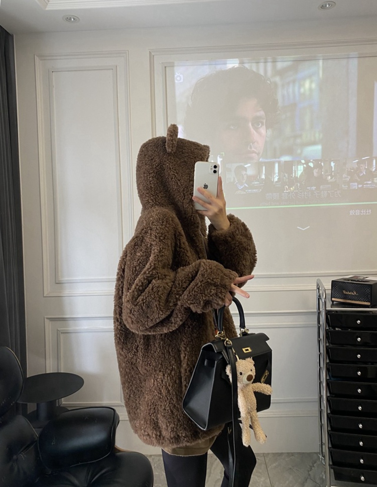 大人気 ウール100% くまちゃん耳が付いたフード もこもこ アウター レディース 可愛い 防寒コート 厚手 冬 もこもこアウター パーカー ふわふわ アウター ブラウン