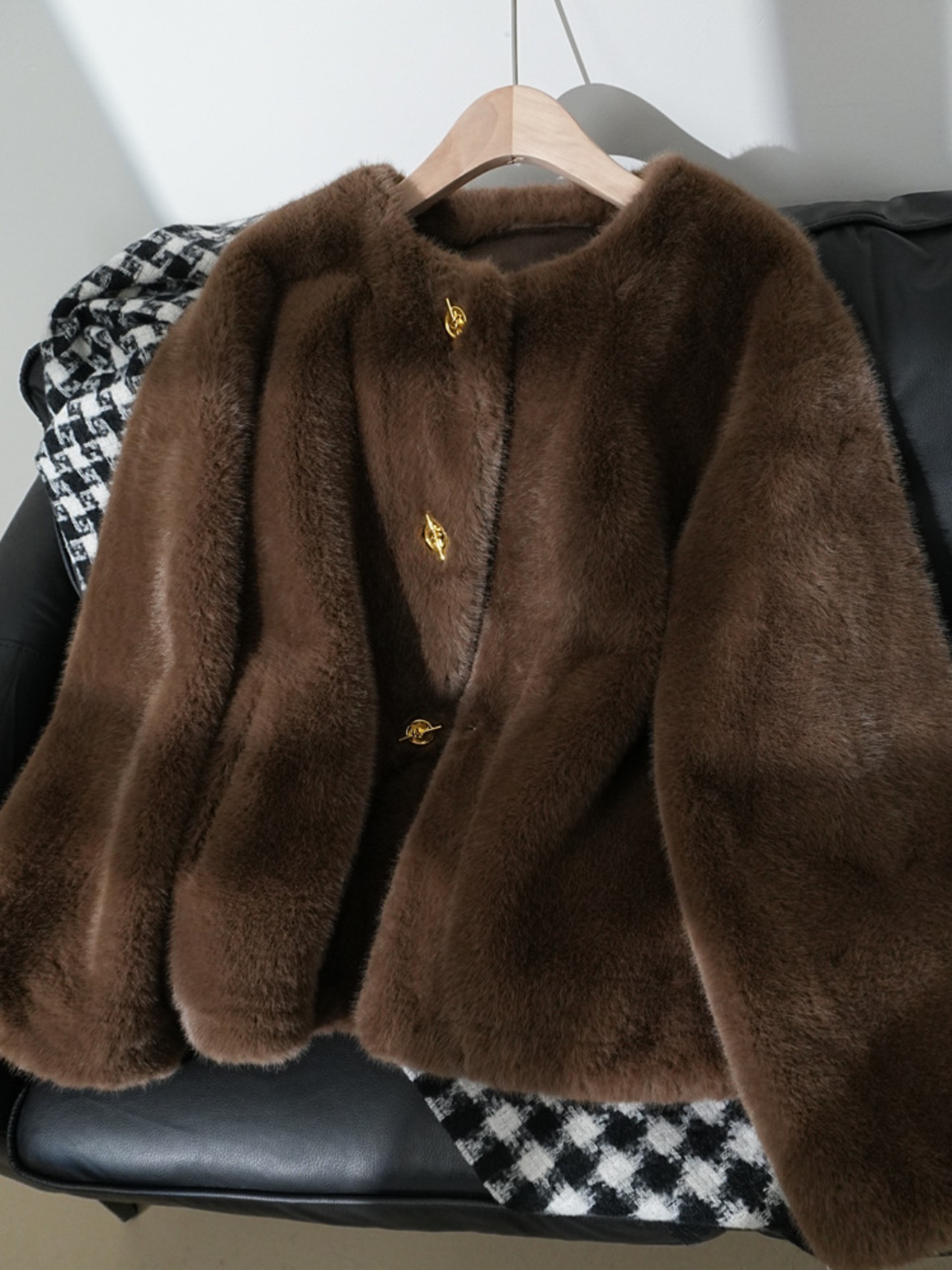 大人気 ジャケット レディース ファー ジャケット 暖かい 柔らかい アウター ノーカラー もこもこ ふわふわ 秋 冬 コート ムートンコート ブラウン