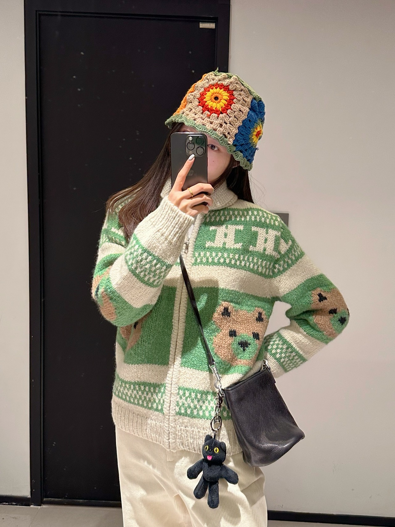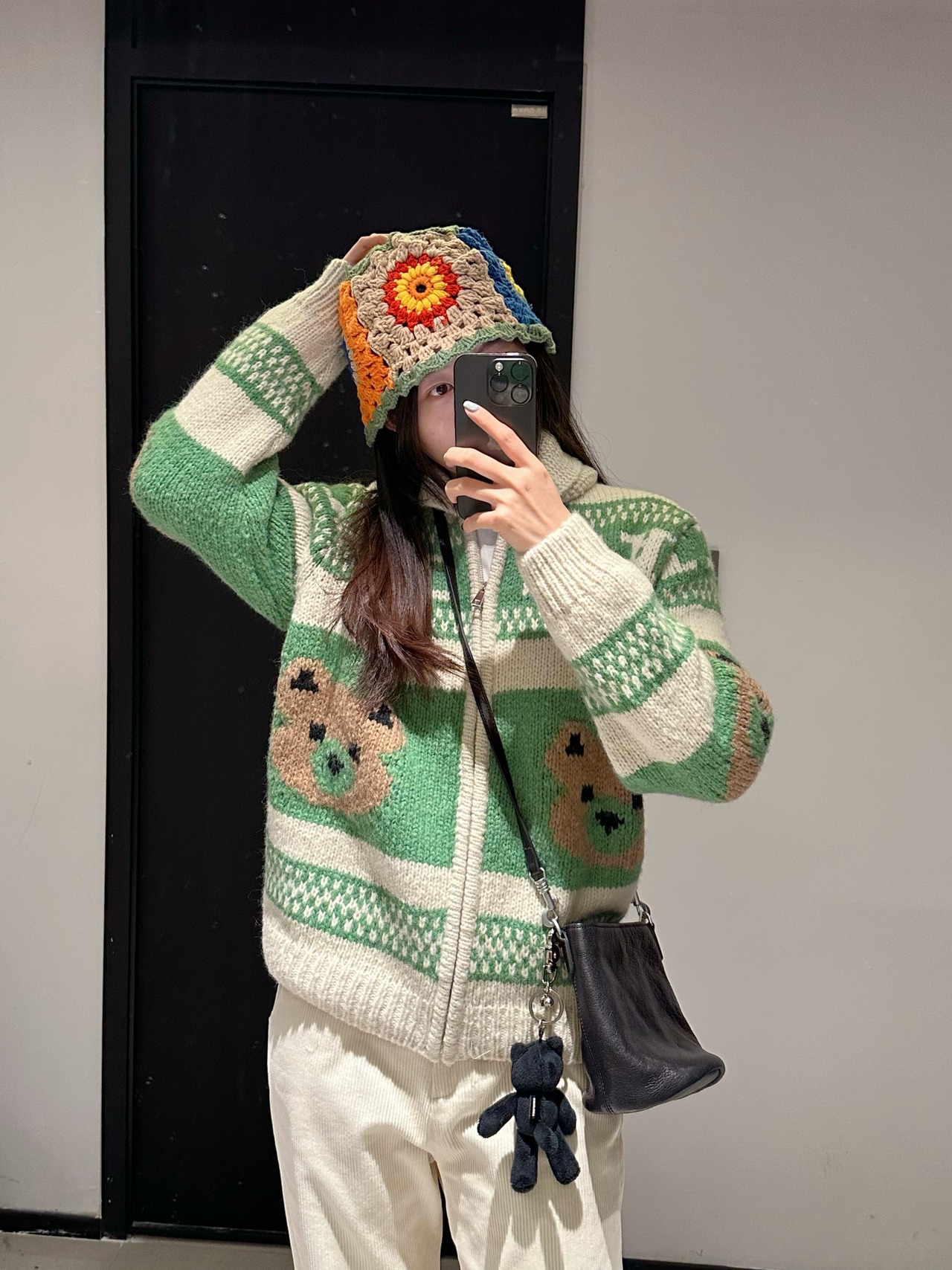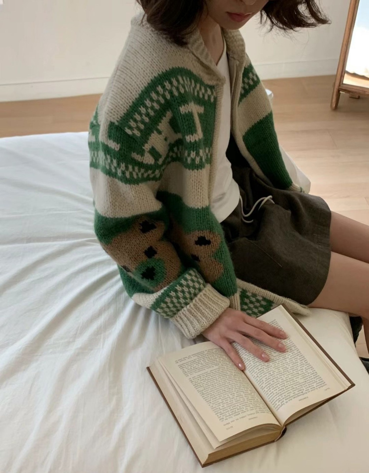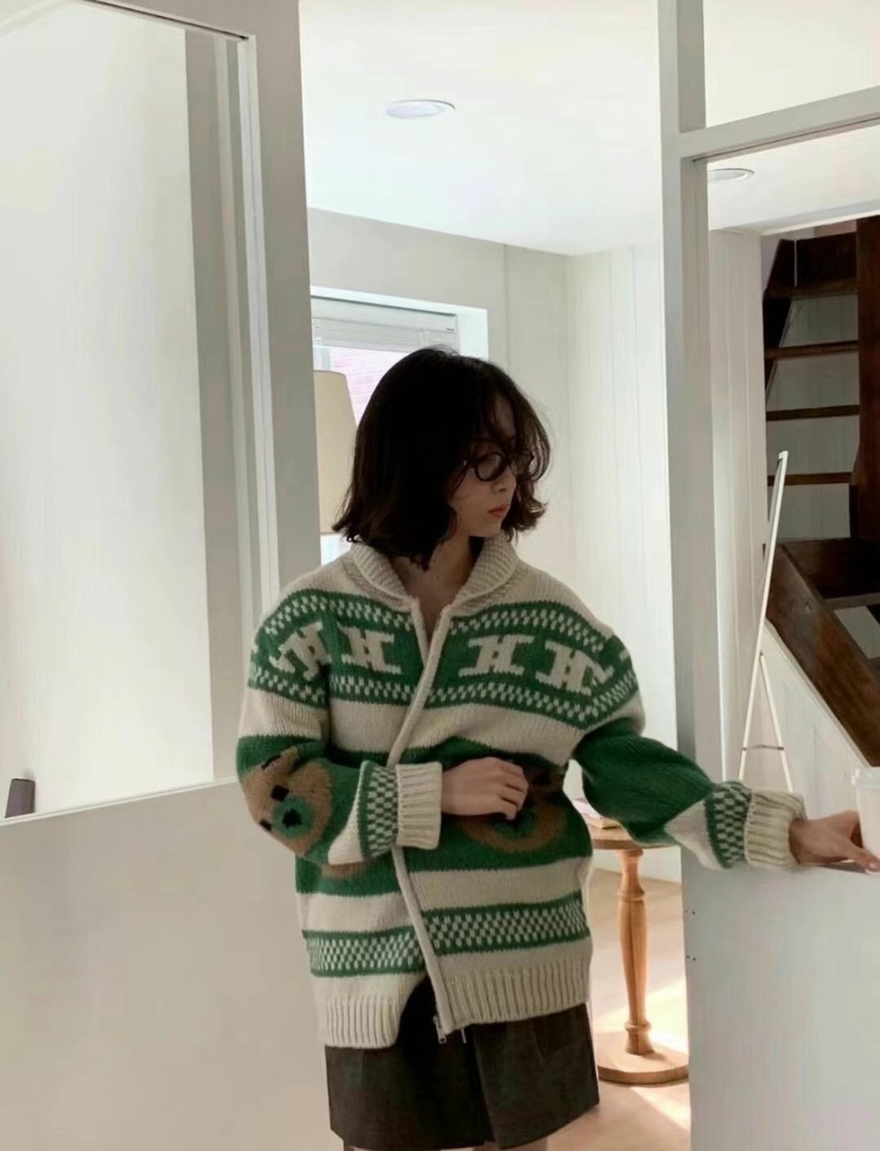 大人気 韓国ファッション A some ニット カーディガン レディース セーター トップス 長袖ニットセーター グリーン