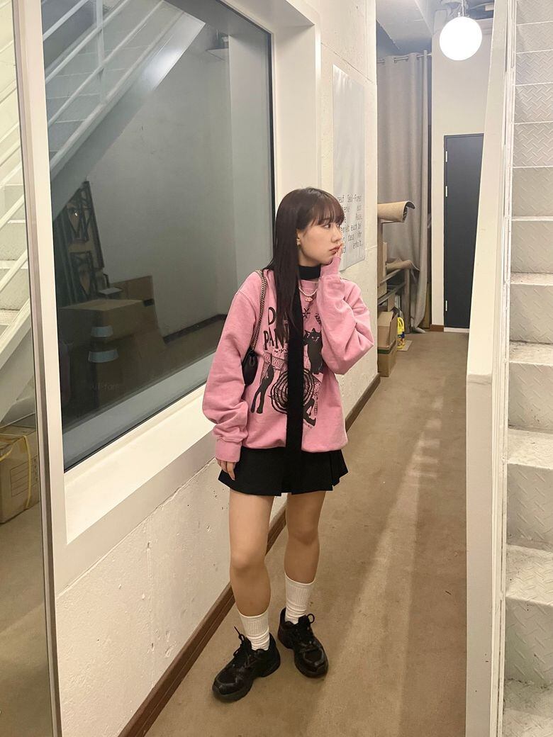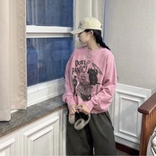 韓国ファッション mahagrid マハグリッド プルオーバー トップス スウェット 男女兼用 DON’T PANIC PIGMENT SWEATSHIRT PINK
