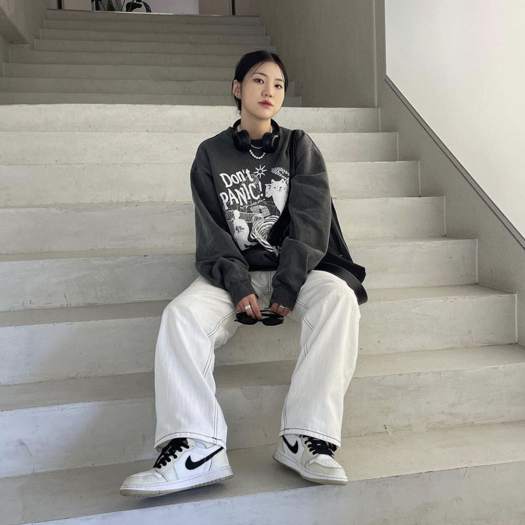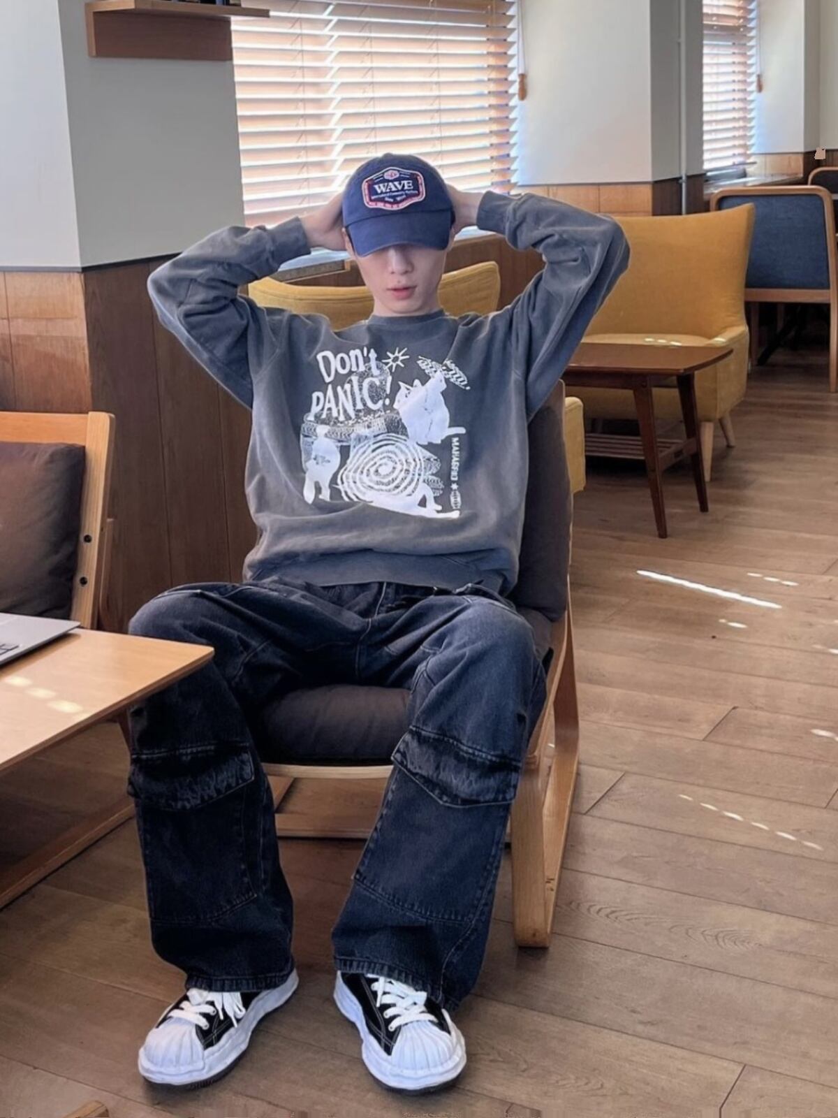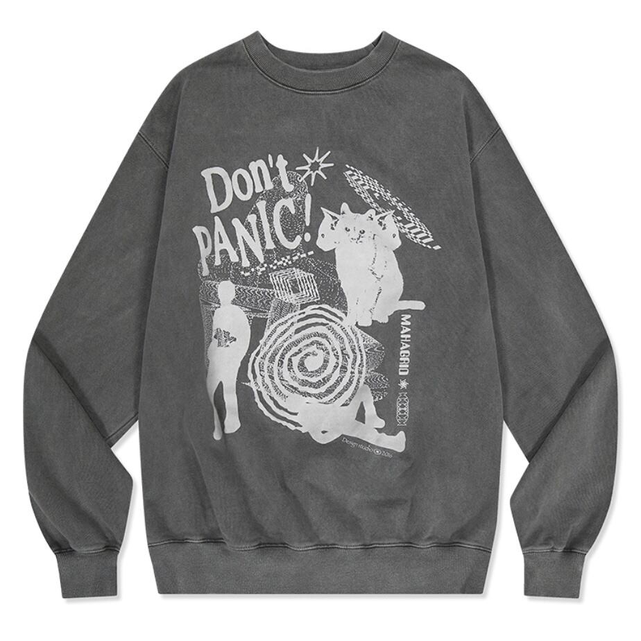 大人気 韓国ファッション mahagrid マハグリッド プルオーバー トップス スウェット 男女兼用 DON’T PANIC PIGMENT SWEATSHIRT CHARCOAL