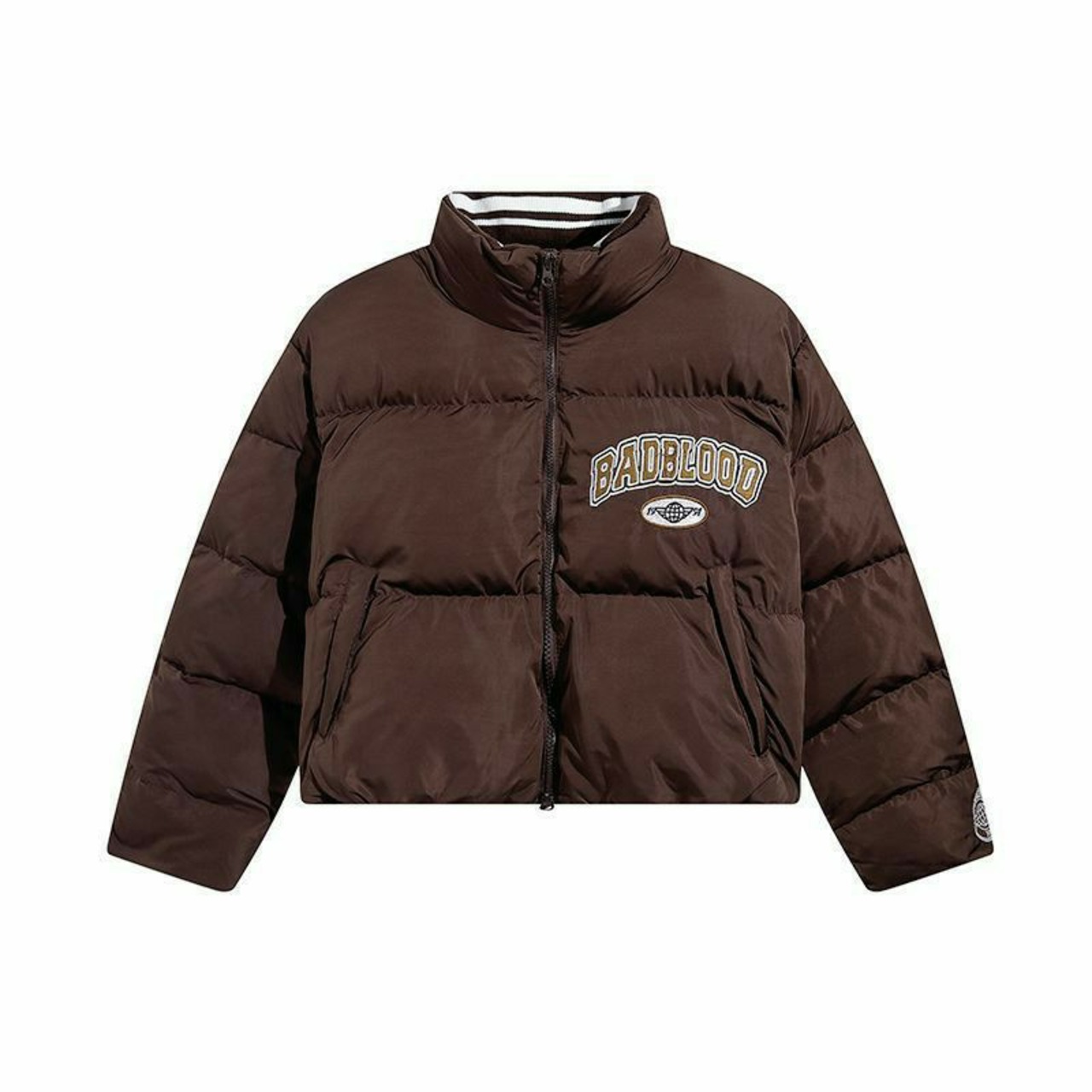 韓国 BADBLOOD レディース 刺繍 ダウンコート レディース ジッパーアップコート ダウンジャケット 冬 ドローコード ファー 中綿コート ショット ジャケット お洒落