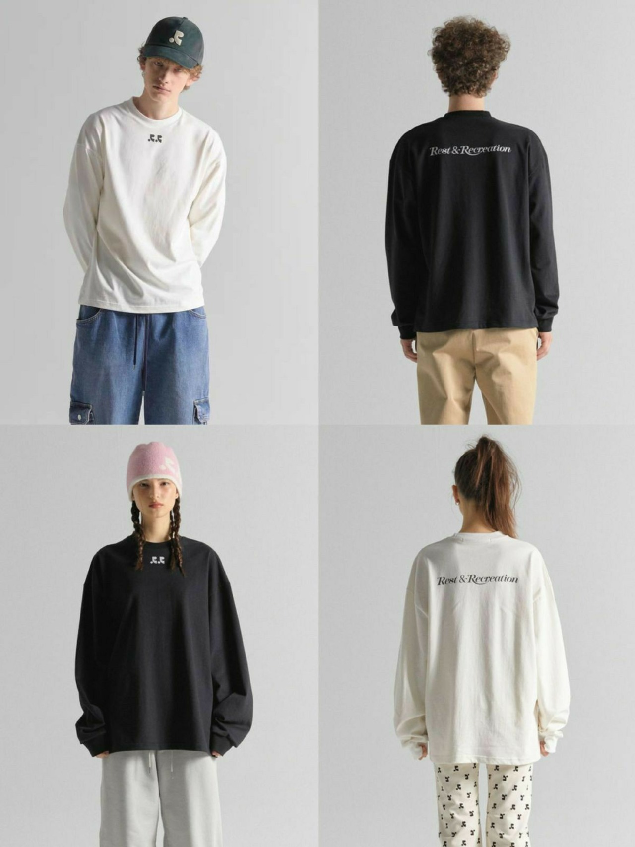 韓国 rest&recreation Tシャツカットソー 長袖 スウェット 韓国風 レディース ロゴプリント トップス