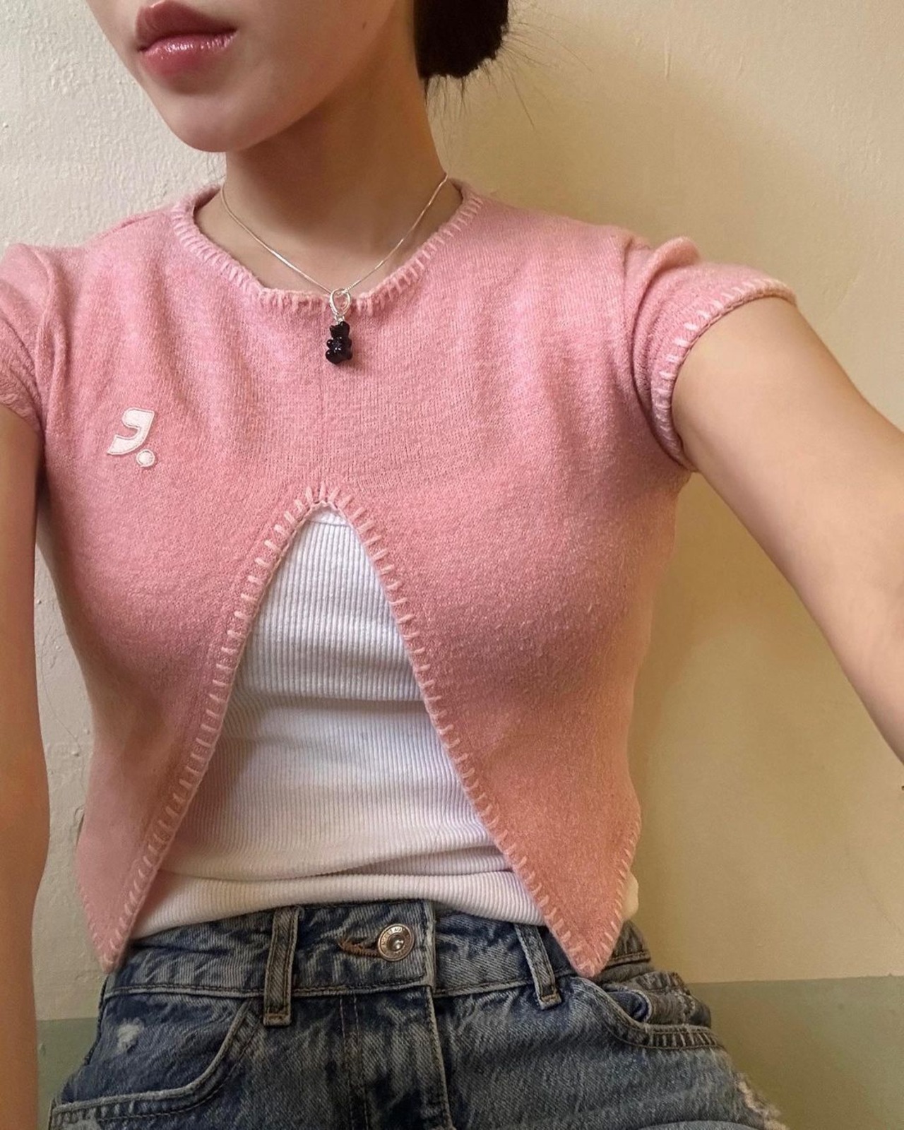韓国 人気 休息とレクリエーション Tシャツ Rest CUT OUT TERRY TOP