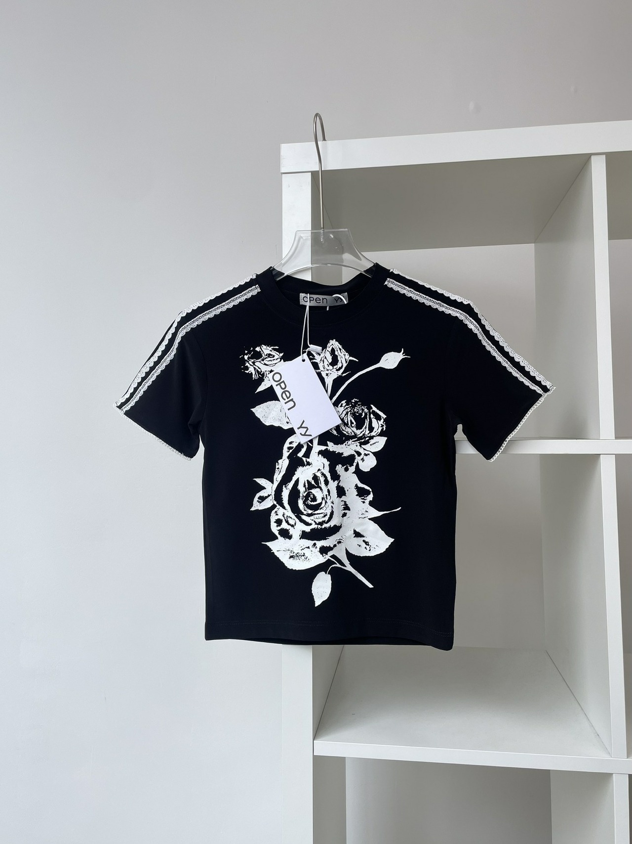 人気 オープンワイワイ 韓国ファッション レディース 夏 カジュアル 半袖の人気Tシャツ 大人 可愛い 黑