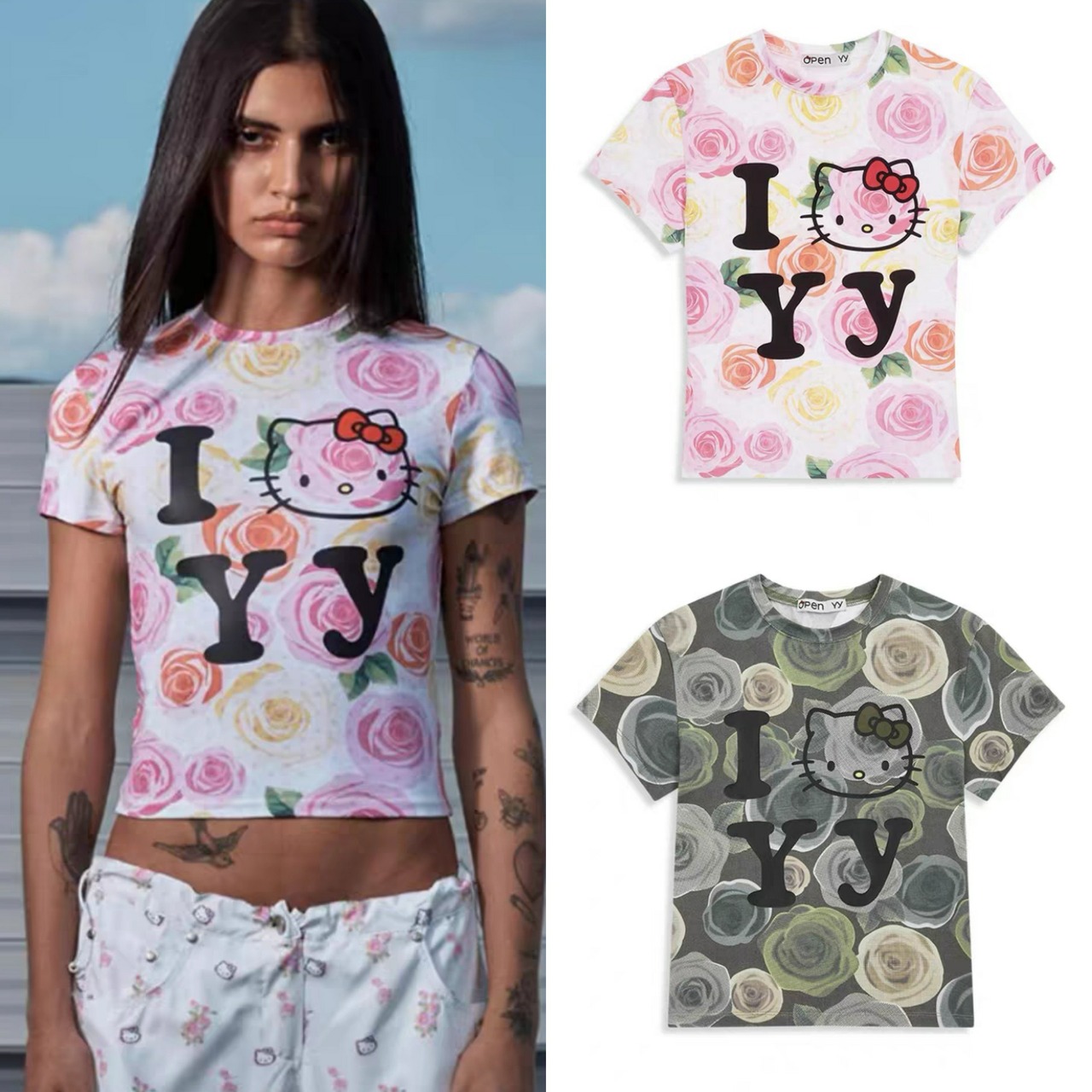 人気 韓国ファッション HelloKitty オープンワイワイ I LOVE YY レディース 大人 可愛い 女の子 カジュアル 半袖の人気Tシャツ