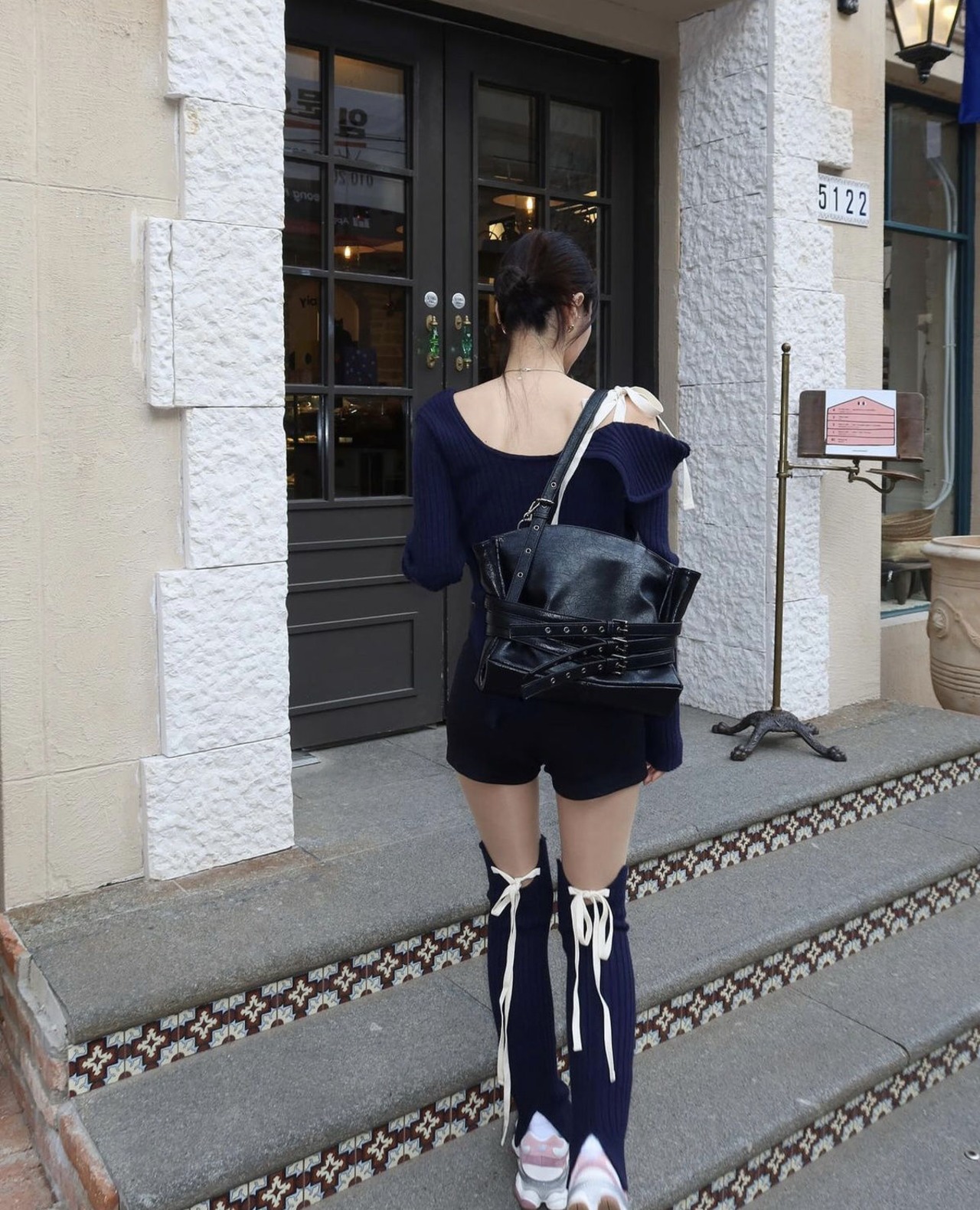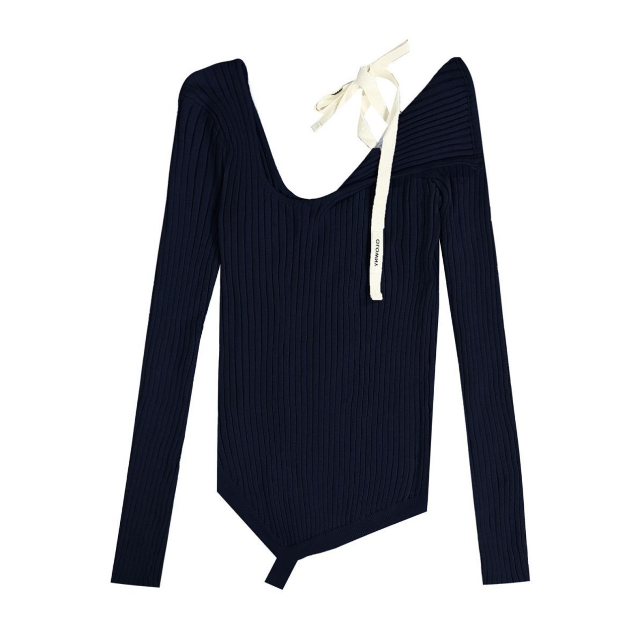 韓国 GLOWNY グロウニー アシンメトリーニット トップス 長袖 ISA ASYMMETRICAL KNIT TOP ネイビー