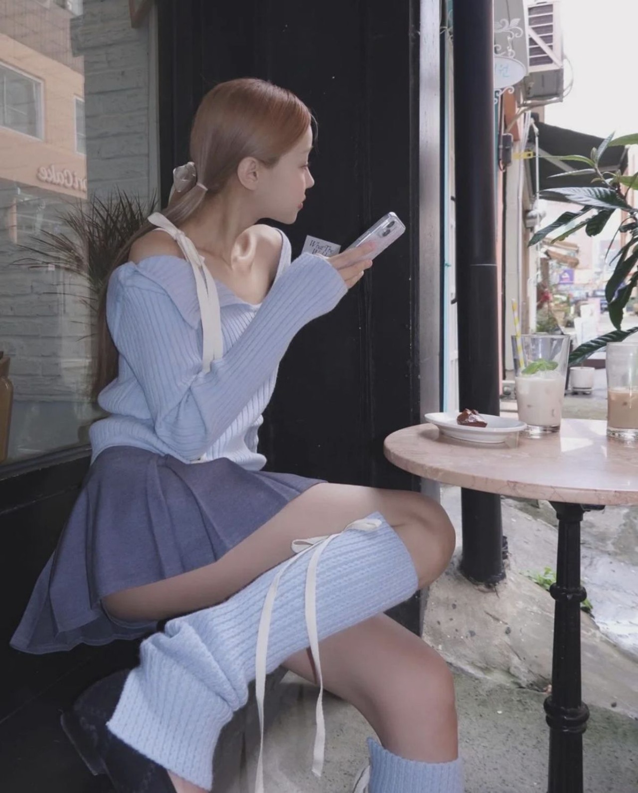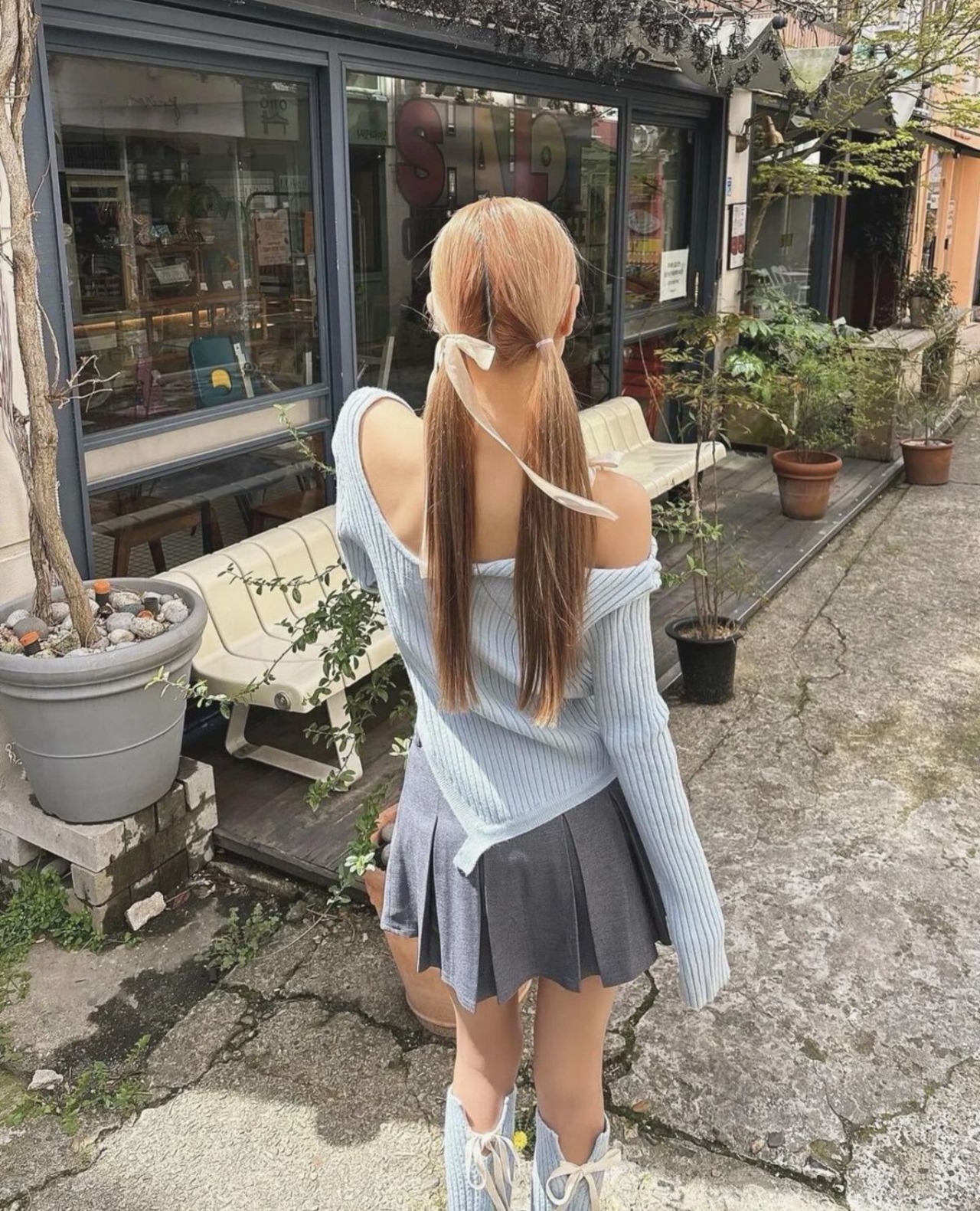 GLOWNY グロウニー アシンメトリーニット トップス 長袖 韓国 ファッション ISA ASYMMETRICAL KNIT TOP ライトブルー