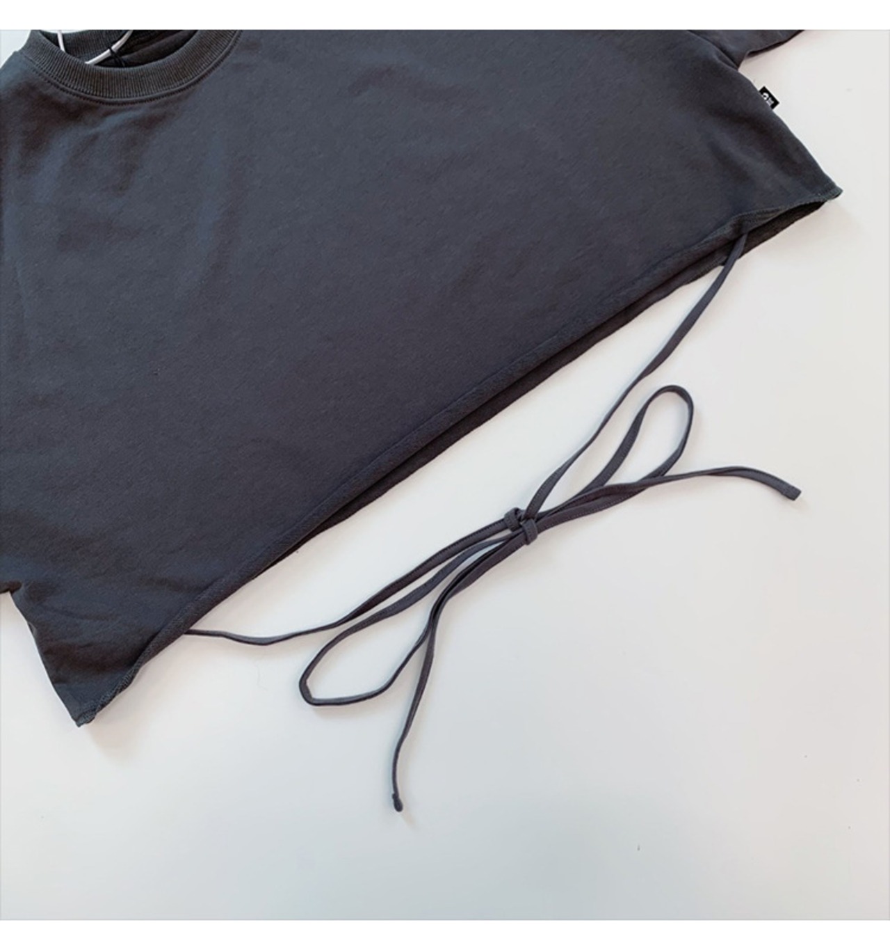 韓国 YOUHEE ユヒ レディース ファッション 長袖 トップス スウェット トレーナー LACEUP CROP SWEATSHIRT CHARCOAL
