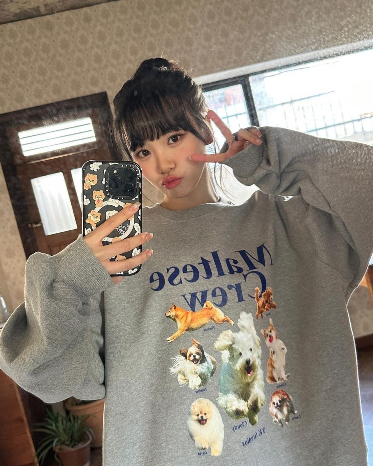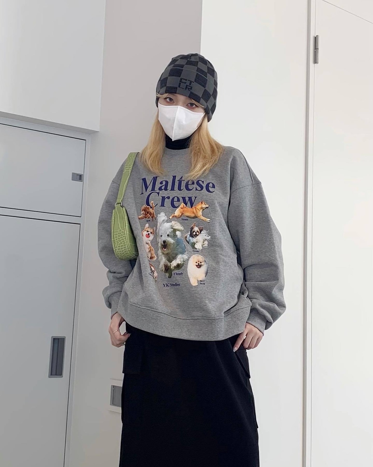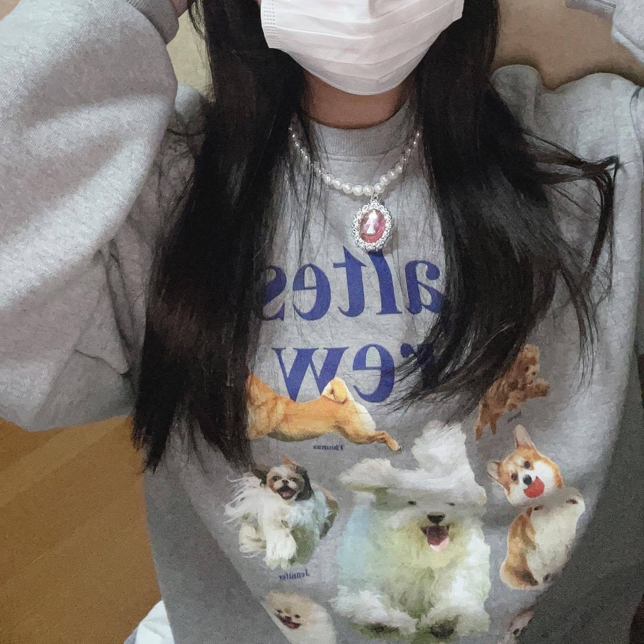 Wai Kei ワイケイ 韓国 ファッション トップス スウェット トレーナー 長袖 ラウンドネック カジュアル 男女兼用 Maltese crew sweatshirt.s GREY
