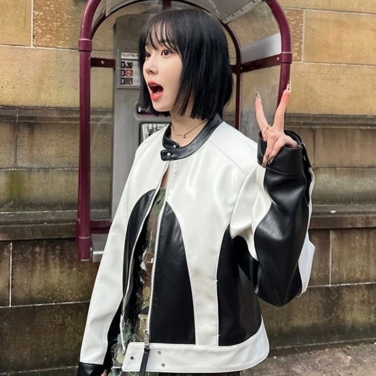 人気 DEBBY UPPER AESPA ウィンター BLACKPINK リサ ジェニー 着用 ファッション ジャケット アウター KIANA FAUX LEATHER BIKER JACKET