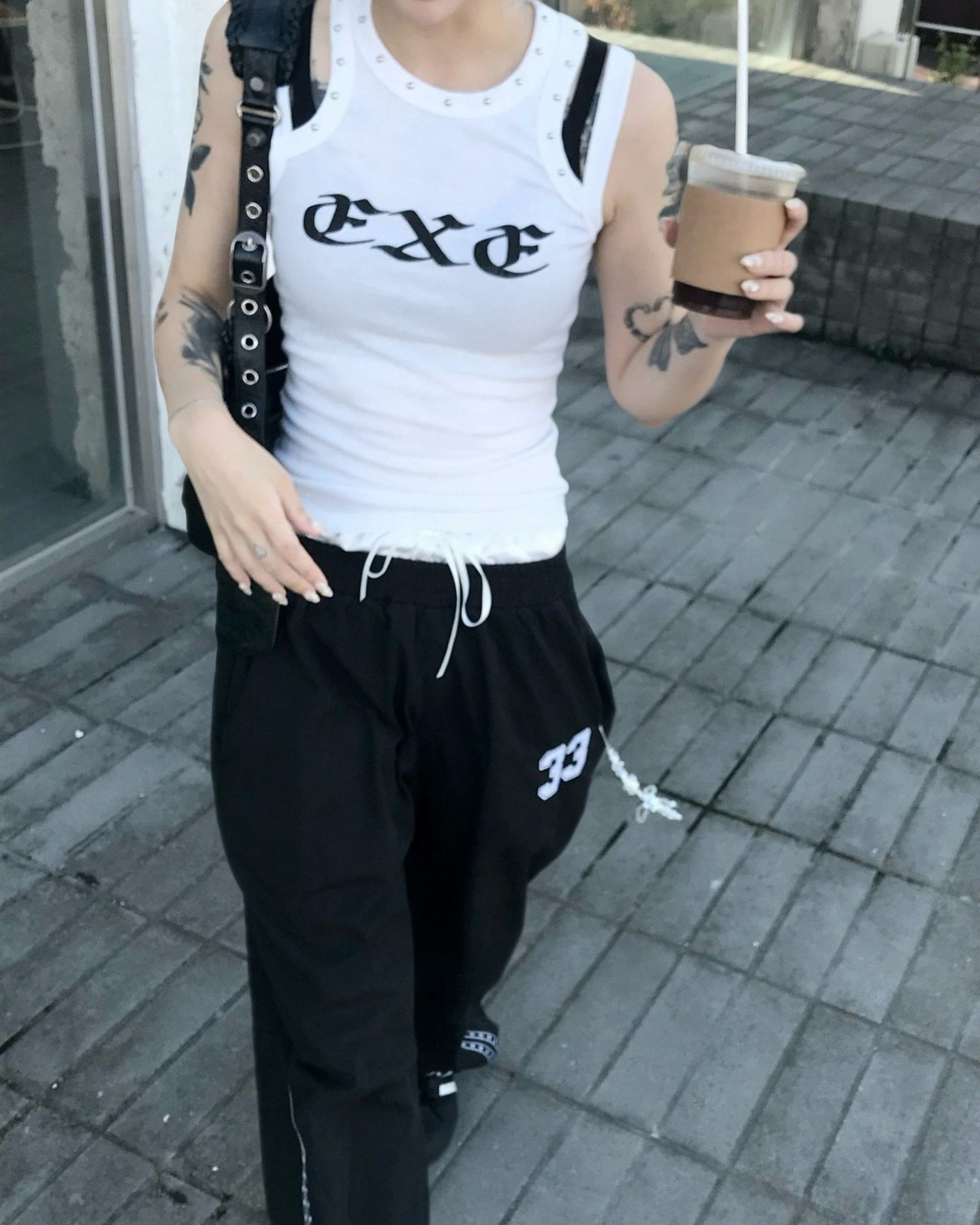人気 韓国 SETUP-EXE セットアップ レディース ファッション スターラインパンツ カーゴパンツ 33 STAR LINE PANTS ブラック