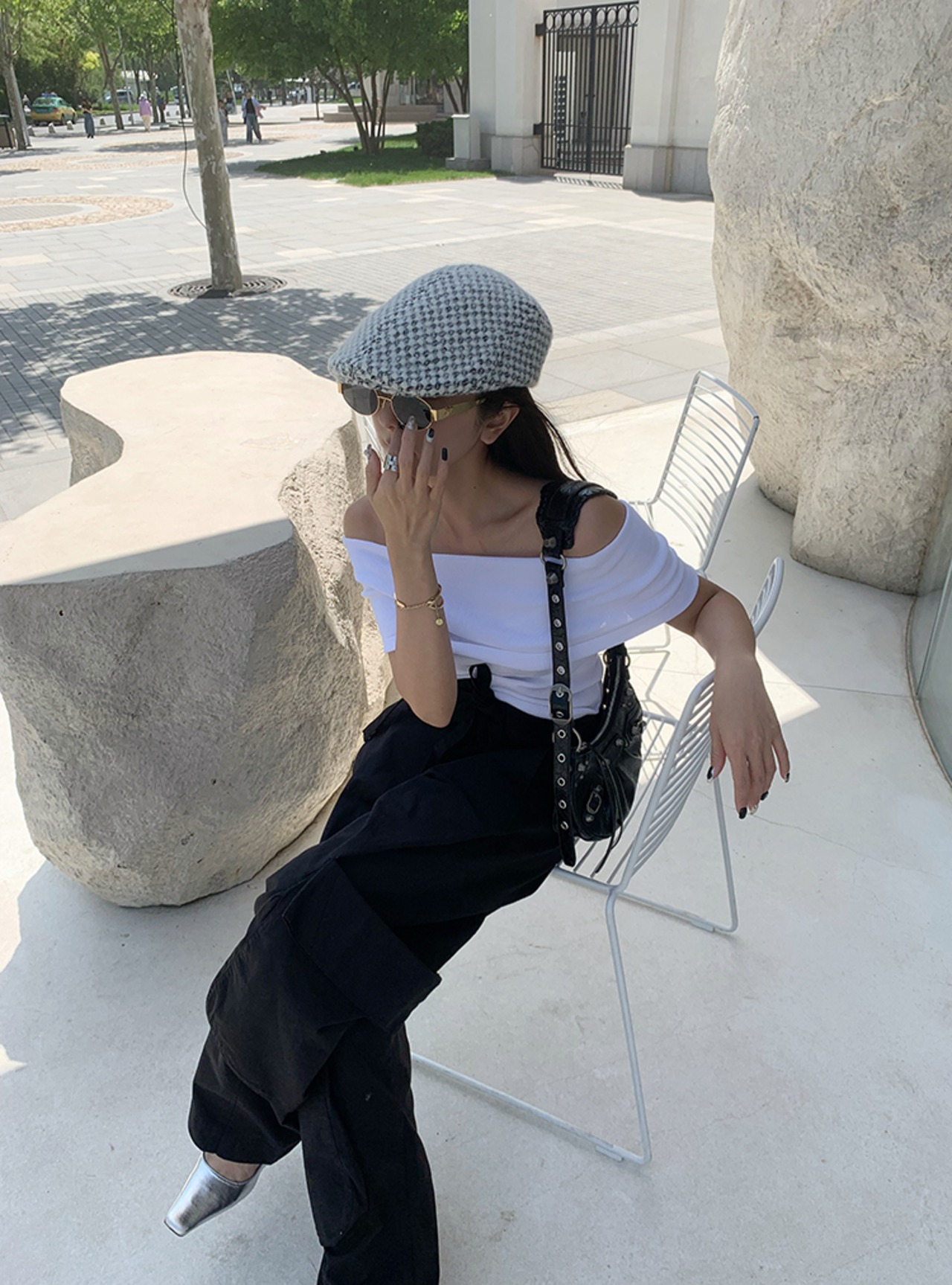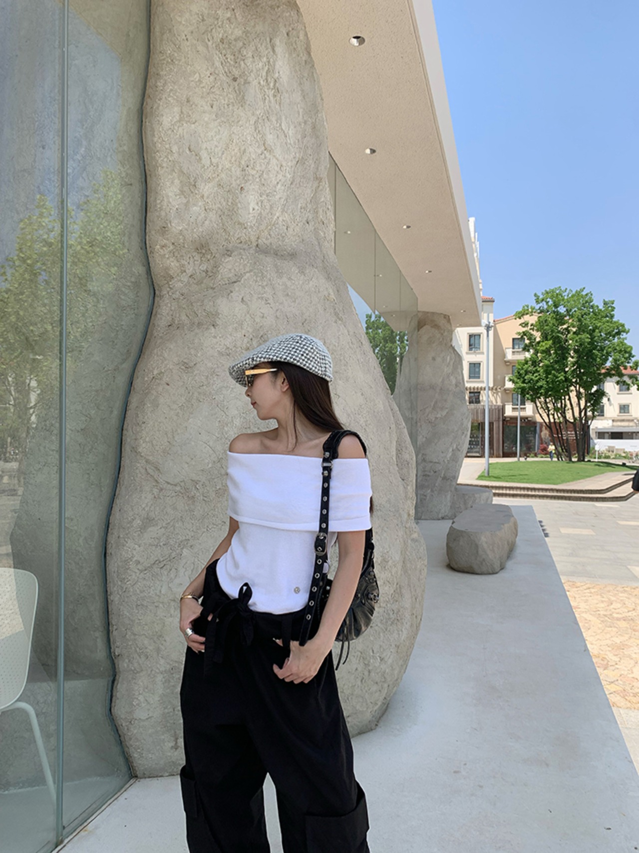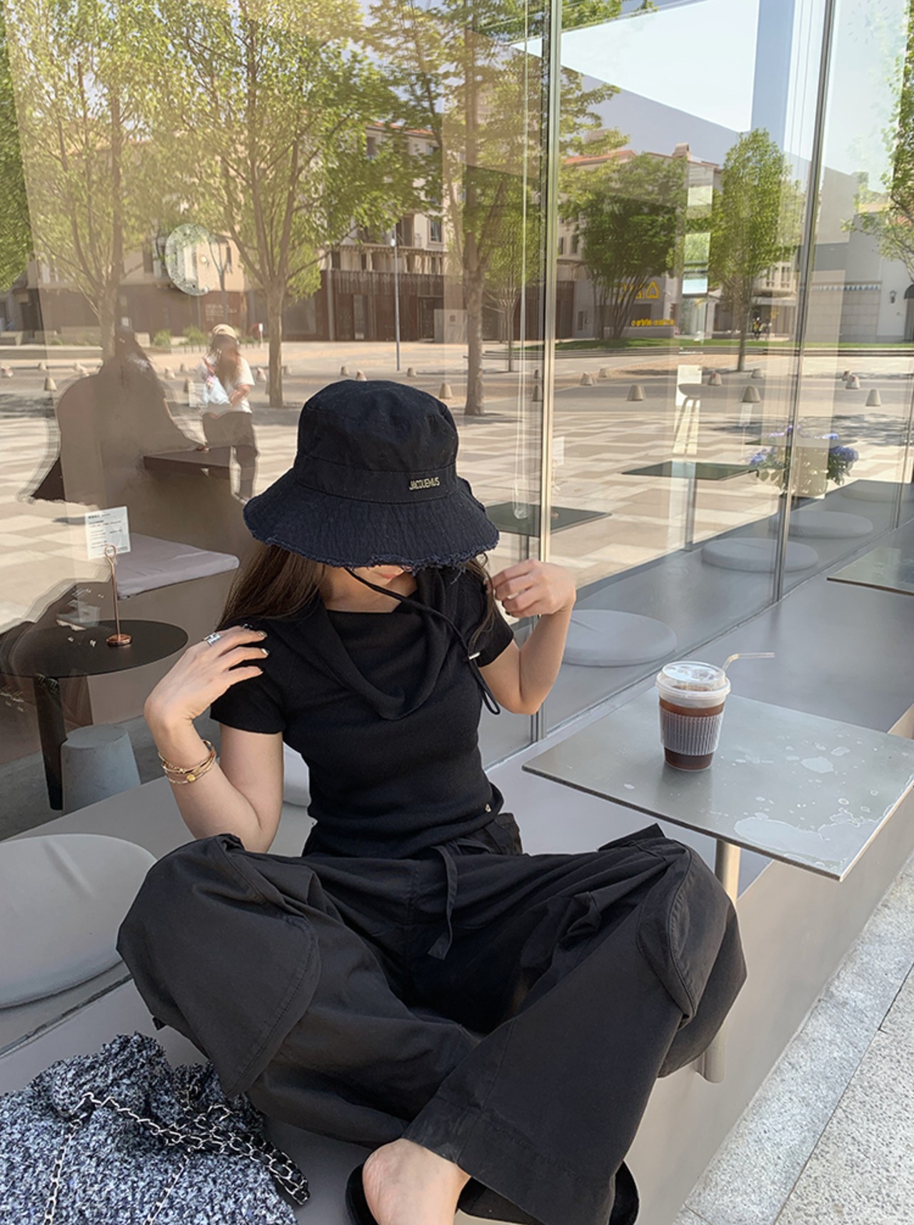 韓国ファッション OPEN YY オープンワイワイ レディース トレーニングパンツ パンツ カーゴパンツ ROLLED WAIST CARGO PANT.S BLACK
