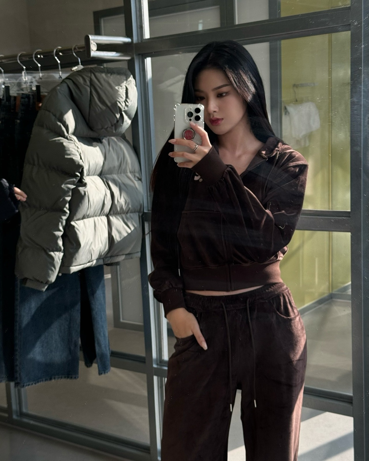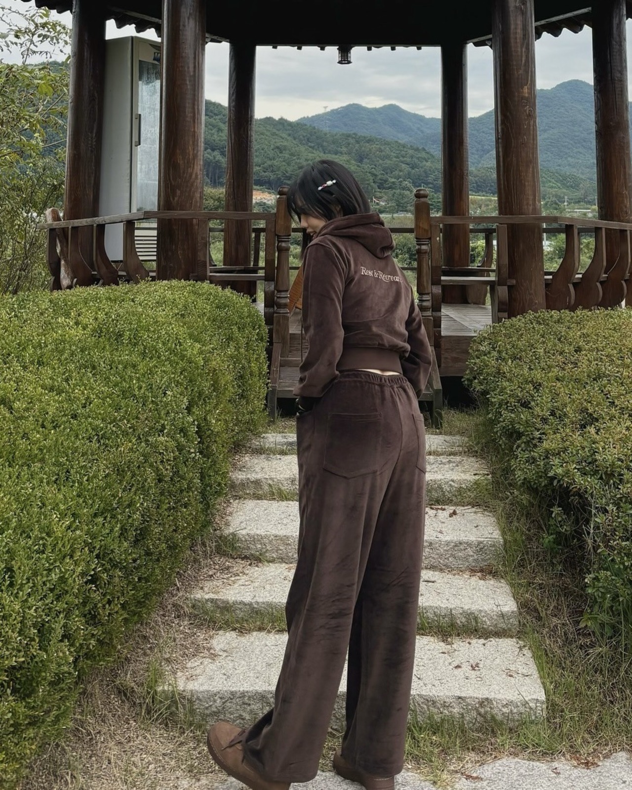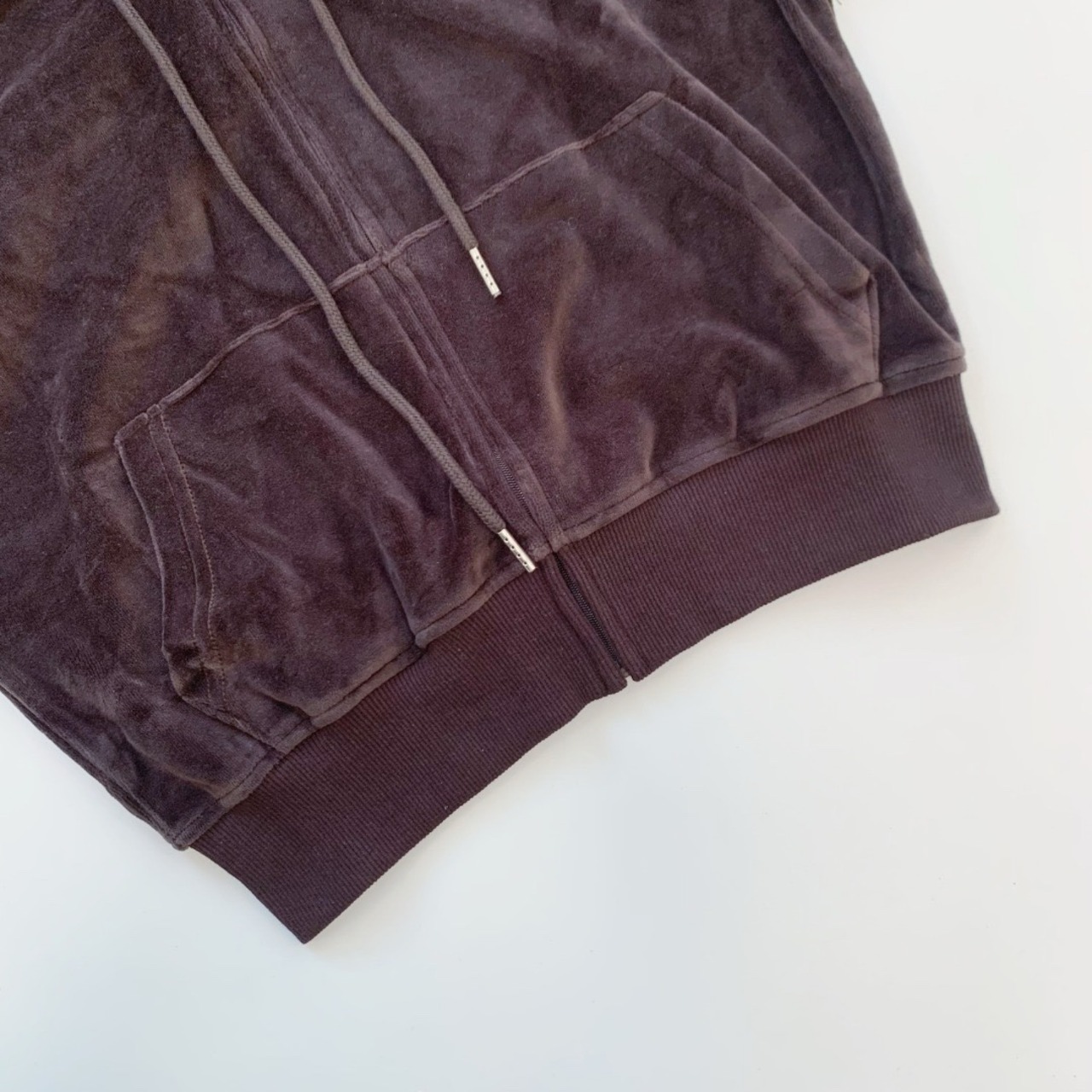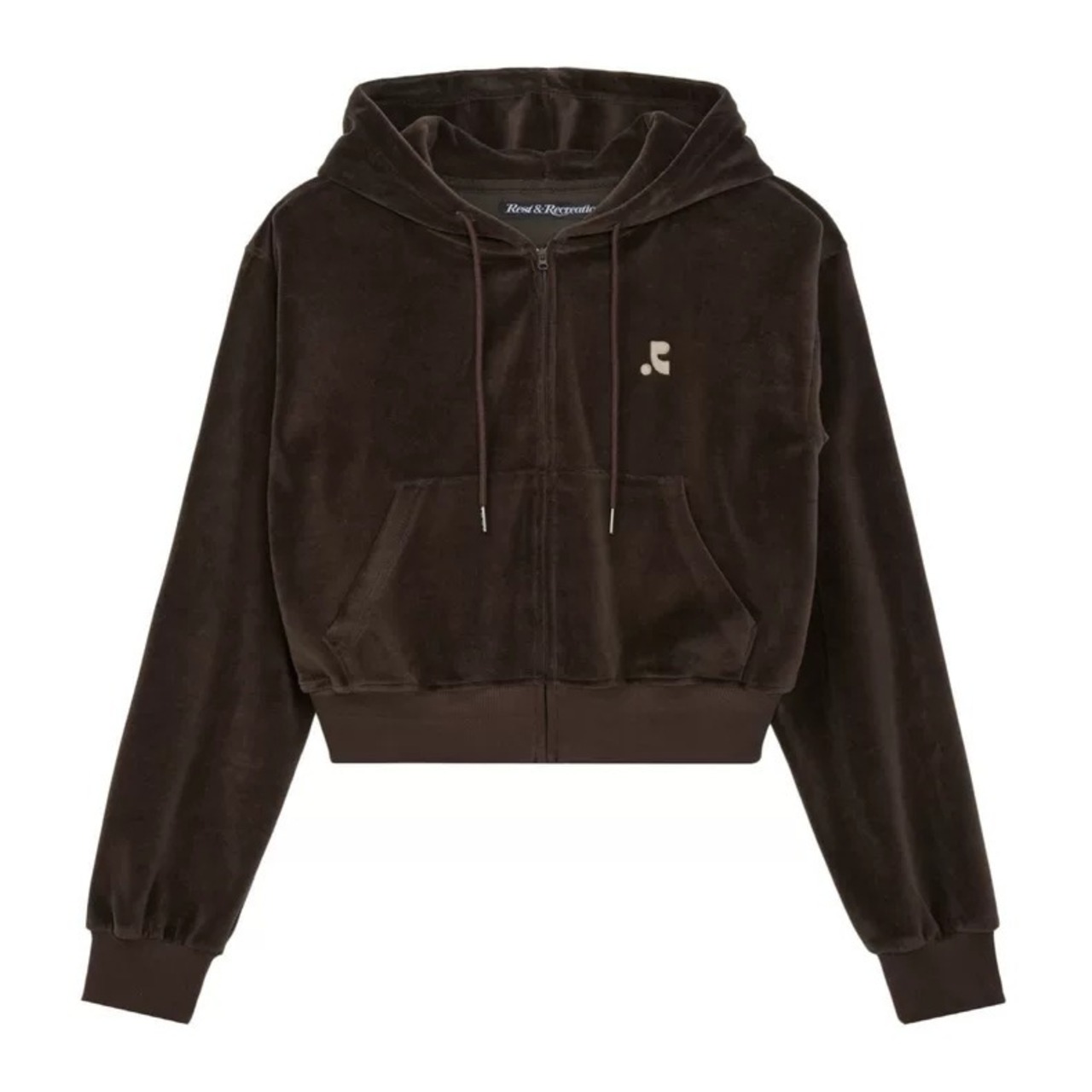 韓国ファッション Rest & Recreation レストアンドレクリエーション トップス パーカー 長袖 男女兼用 RR VELVET CROPPED HOODIE BROWN