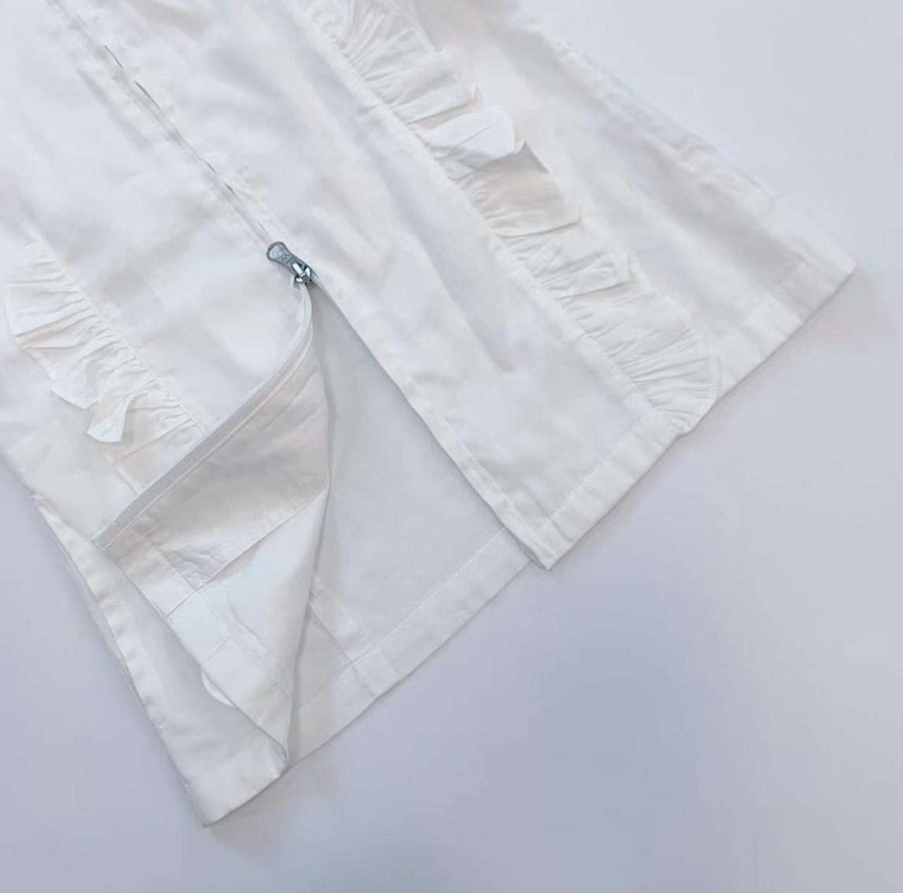 韓国 OPEN YY オープンワイワイ レディースファッション トップス ブラウス シャツ COTTON FRILL ZIP SHIRT