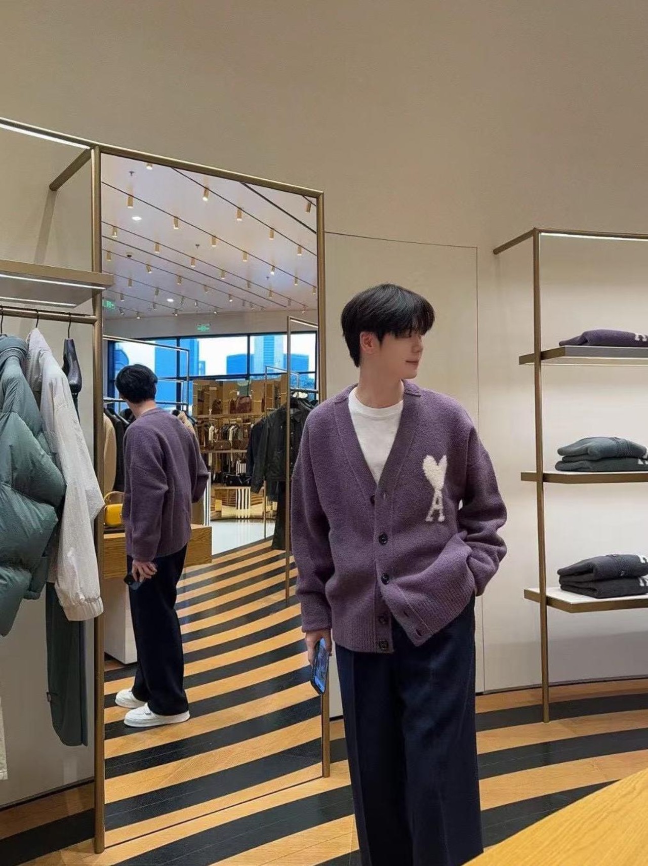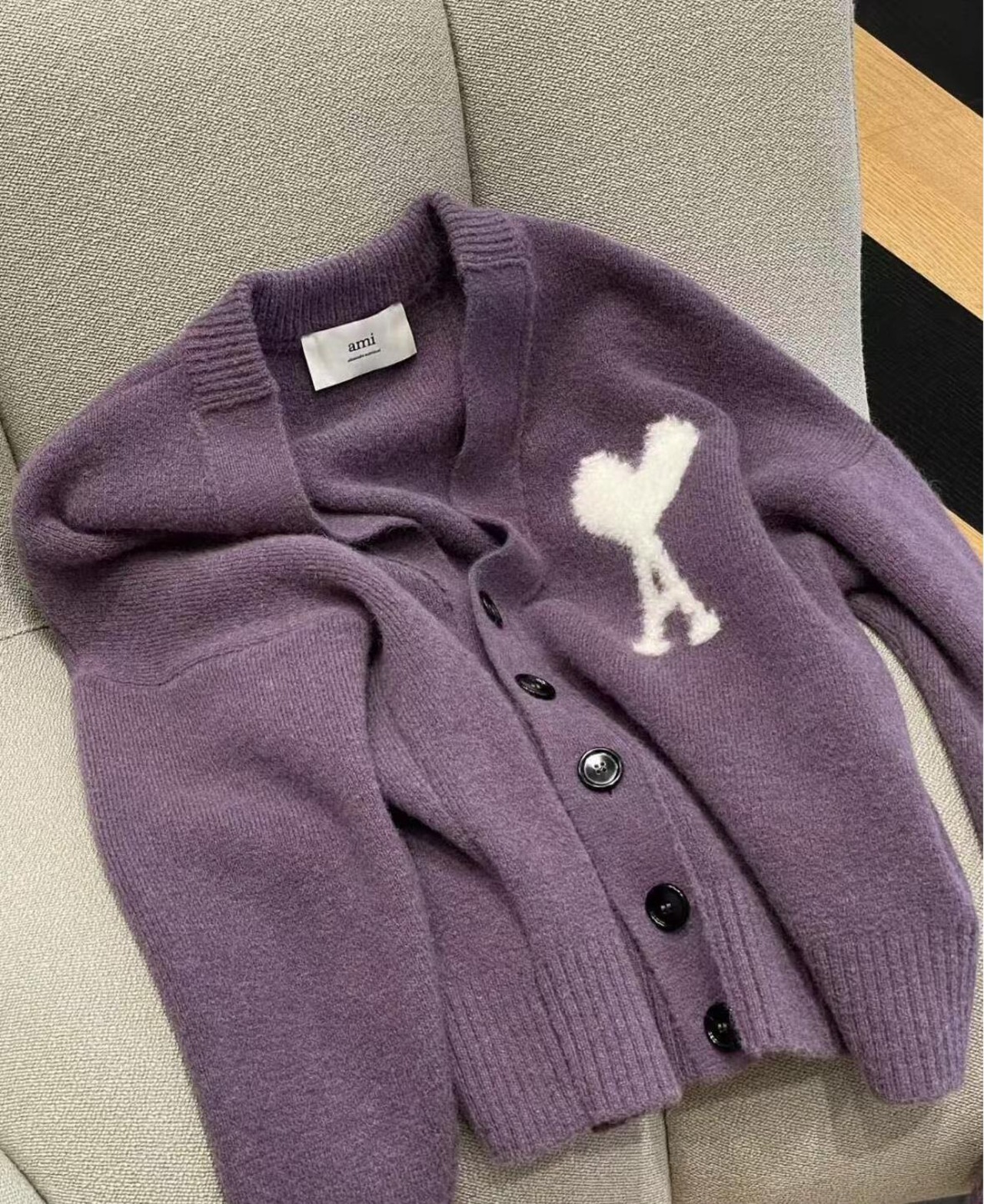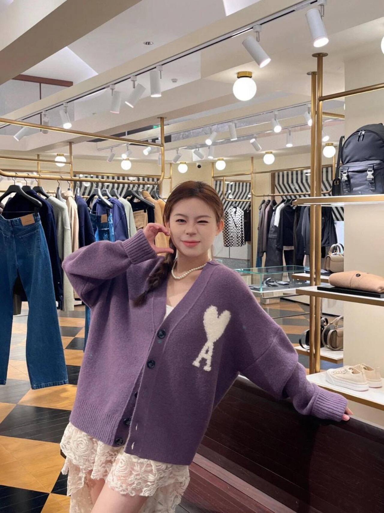 人気 AMI PARIS アミ パリス ホワイト ビッグハート ロゴ カーディガン トップス 男女兼用