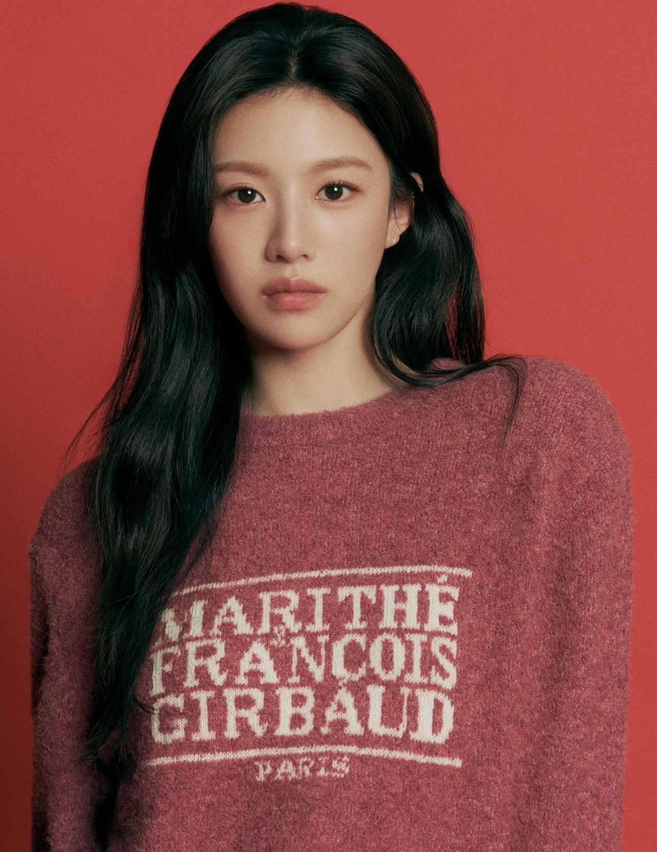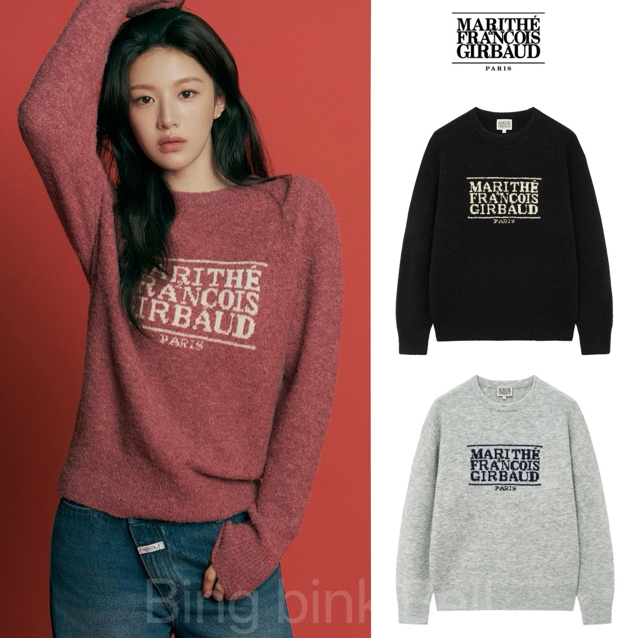 韓国 ファッション Marithe + Francois Girbaud マリテフランソワジルボー メンズ レディース トップス ニット セーター 男女兼用 BOUCLE CLASSIC LOGO SWEATER DARK PINK
