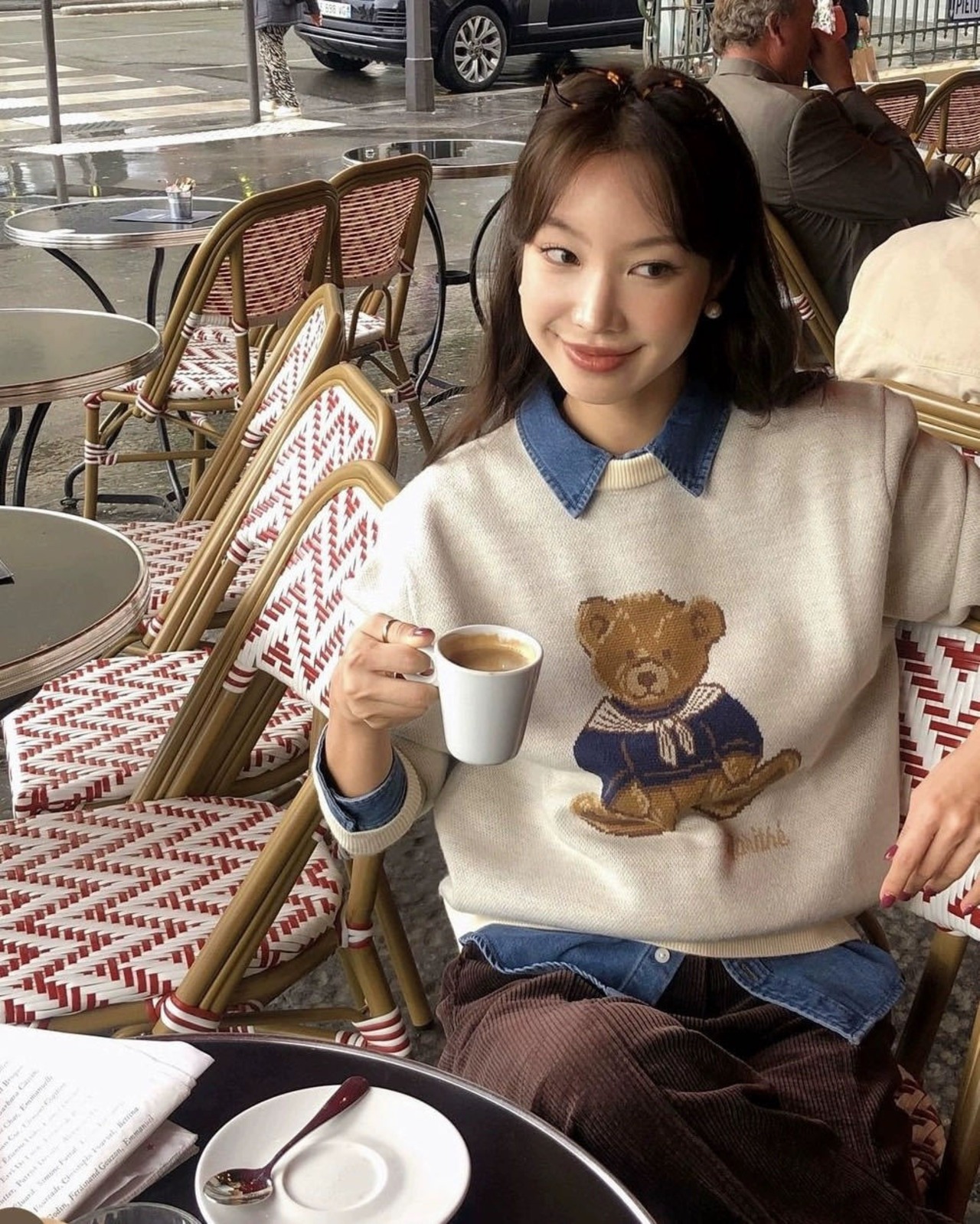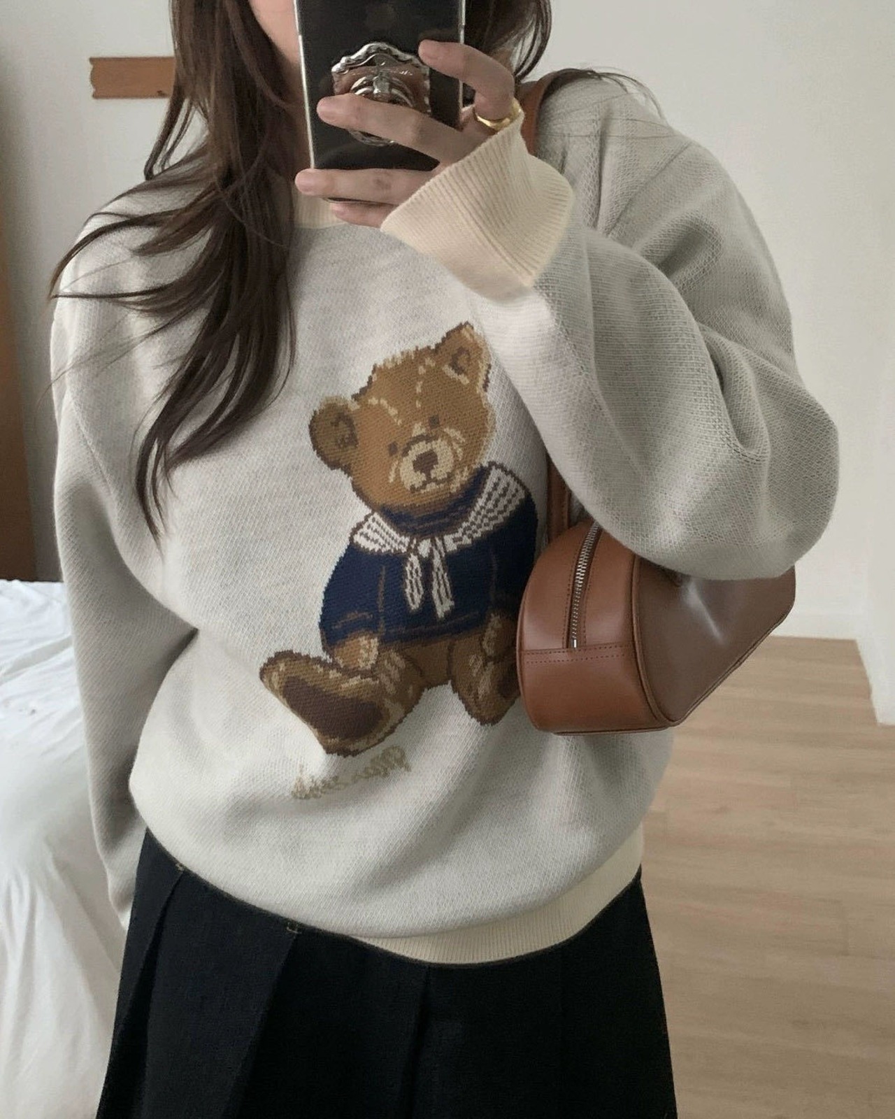人気 韓国 Marithe + Francois Girbaud マリテフランソワジルボー レディースファッション トップス ニット セーター DOODLE BEAR SWEATER IVORY