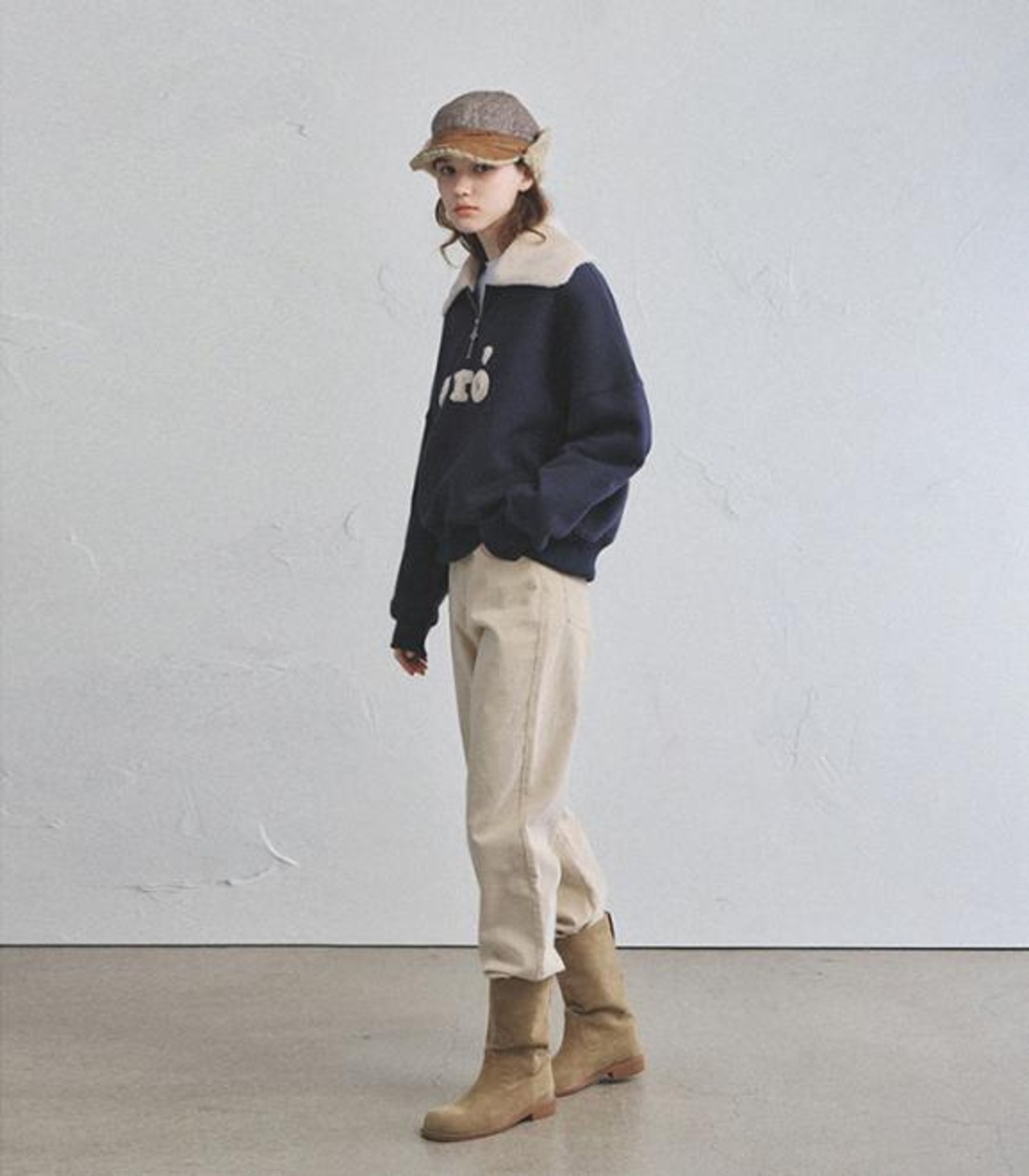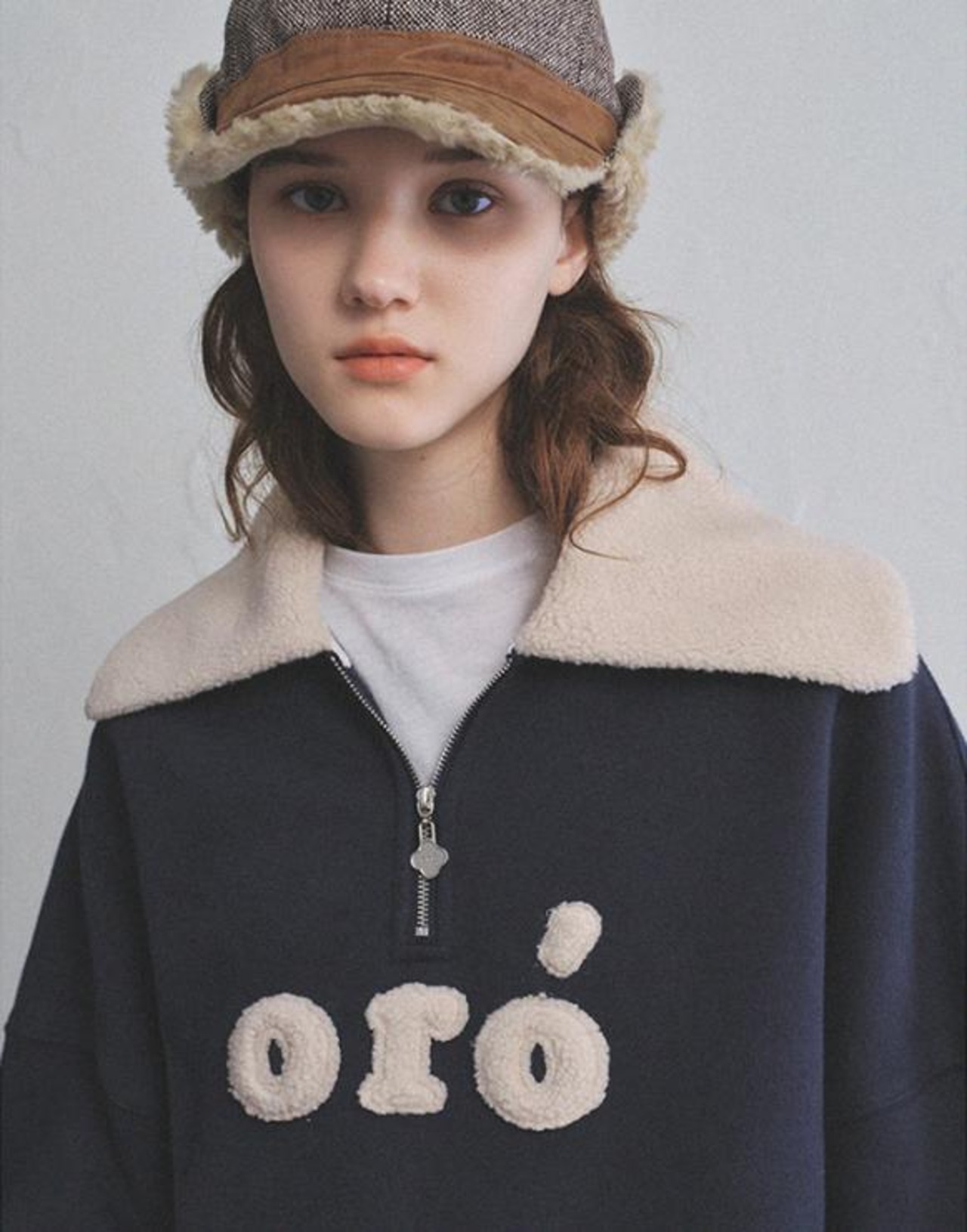 人気 韓国 ORO レディースファッション トップス スウェット トレーナー APEER SHEARING FLEECE ANORAK ネイビー